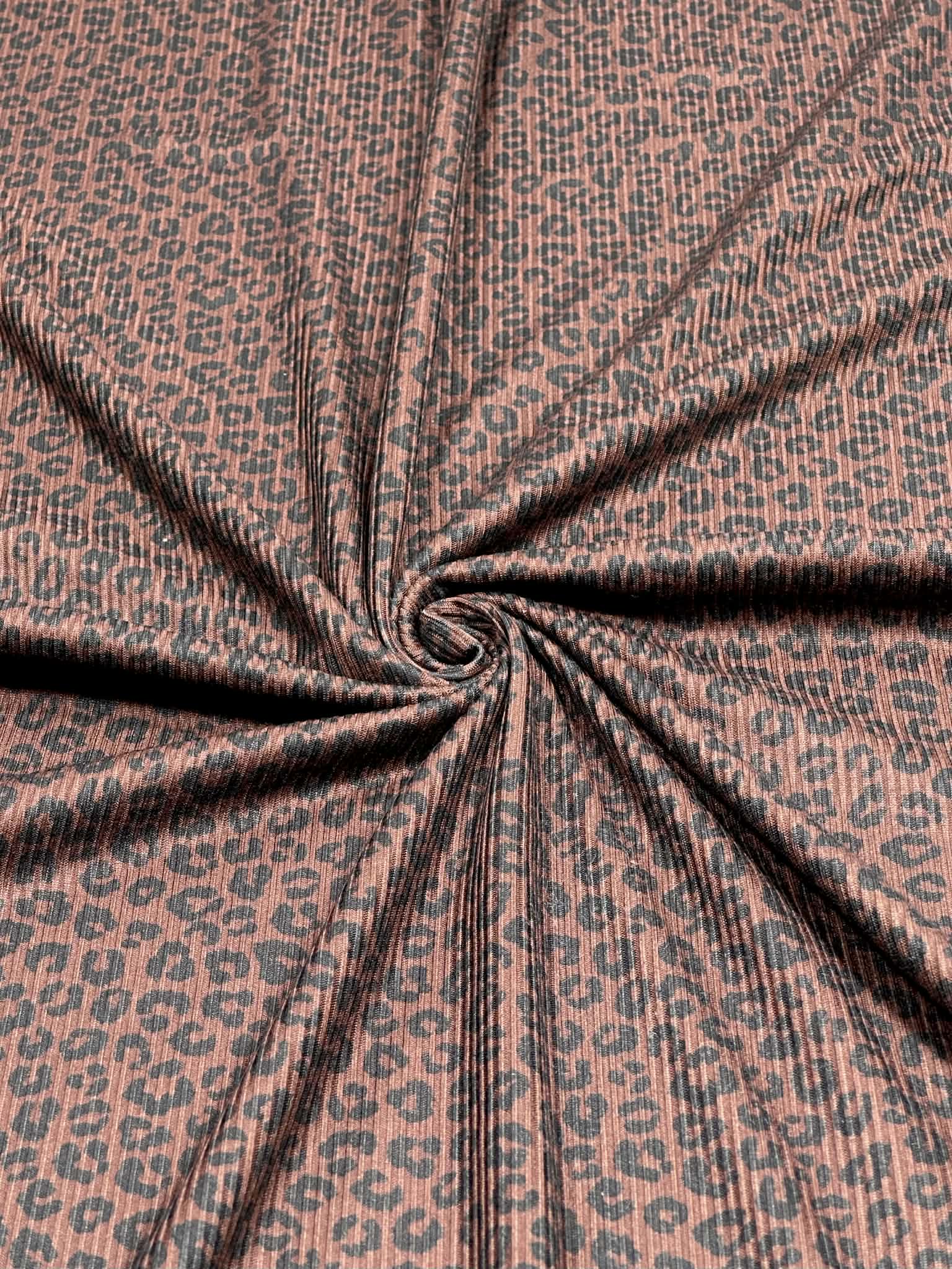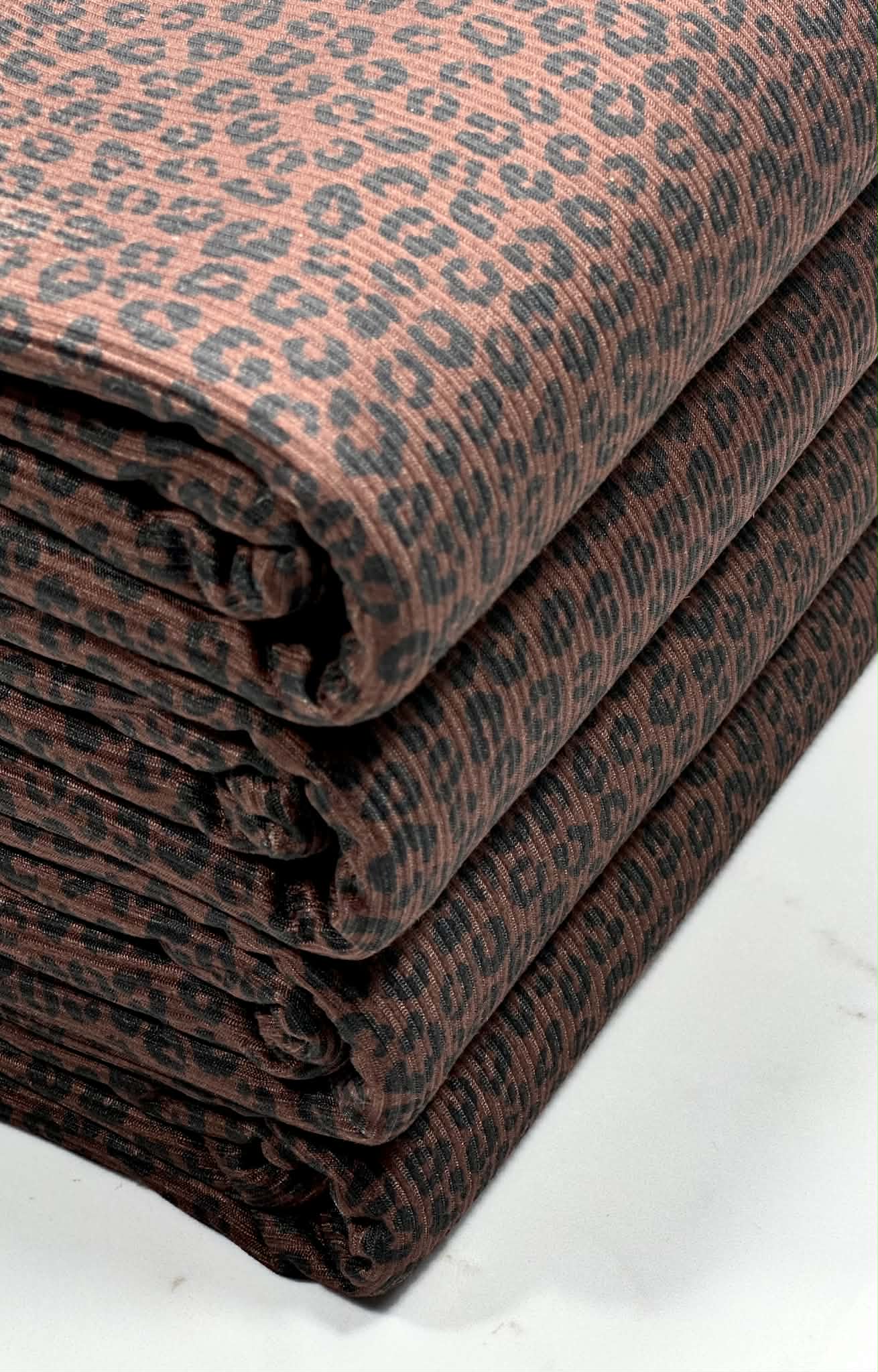 (2X2 BRUSHED RIB) BLACK CHEETAH ON DARK BROWN