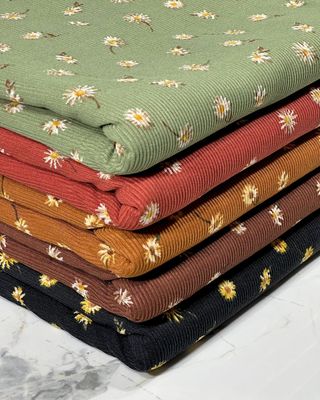 (2X2 RIB) BLUE AND YELLOW FLOWERS, POLKA DOTS AND STRIPES PATTERN