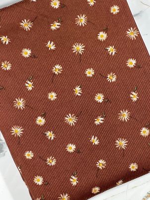 (2X1 RIB) TINY VINTAGE SUNFLOWERS ON VINTAGE BROWN (1)