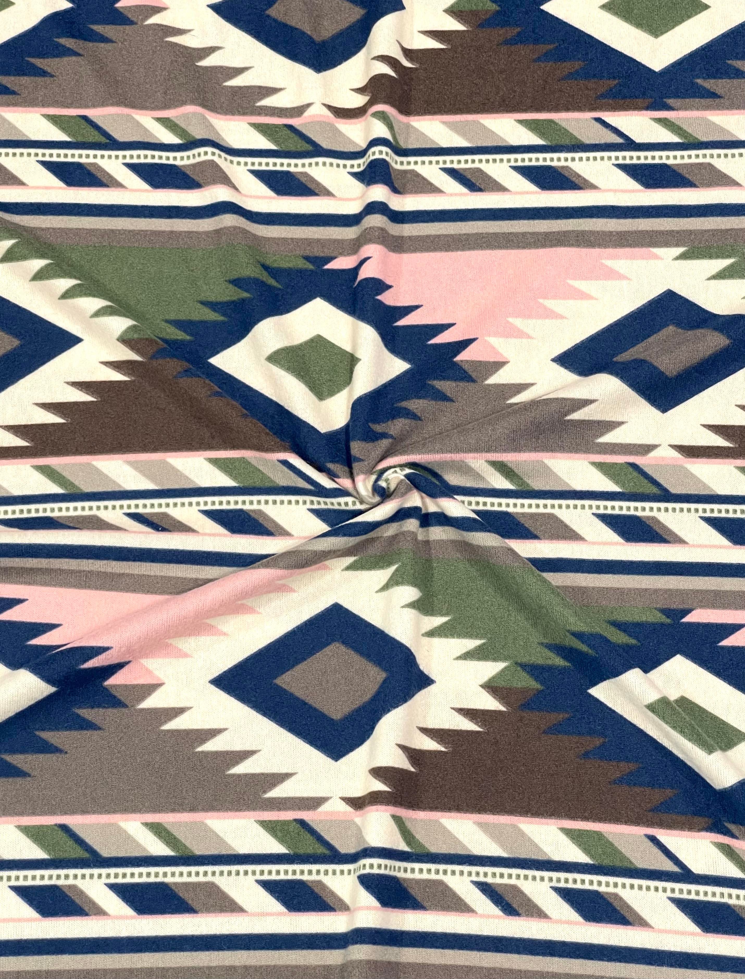 (SWEATER KNIT) NAVY AND OFFWHITE WESTERN PATTERN ON SALMON