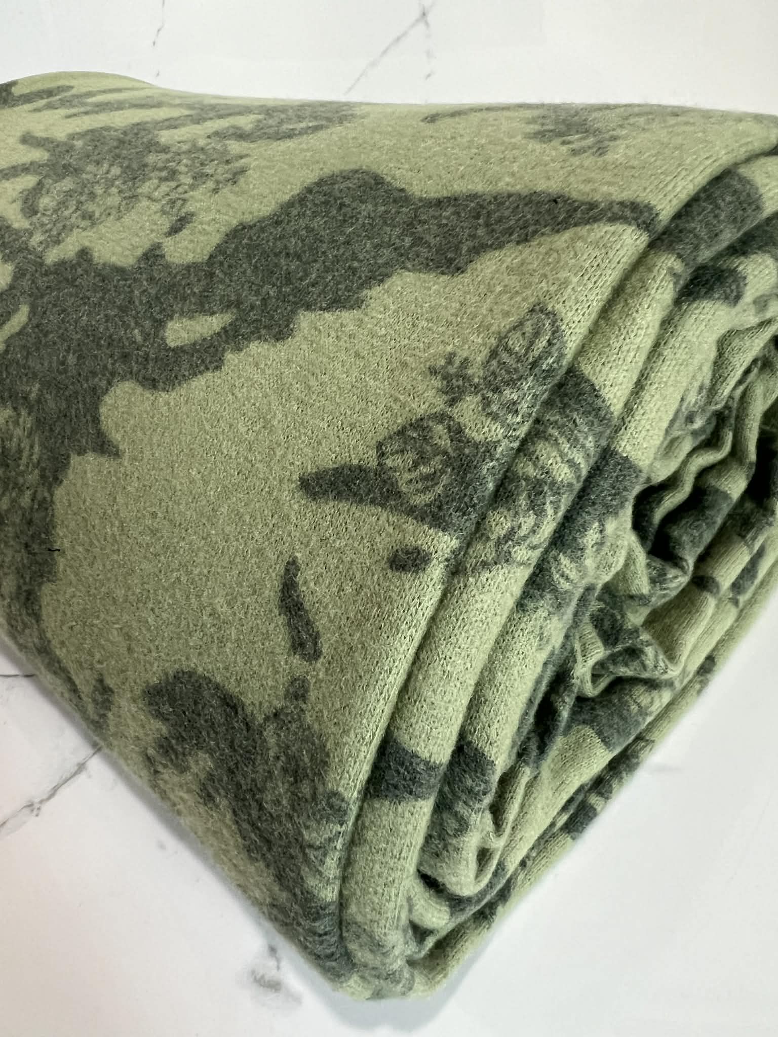(SWEATER BRUSHED)GREEN CAMO WITH ROSES (7 CONTINUOUS YARDS)