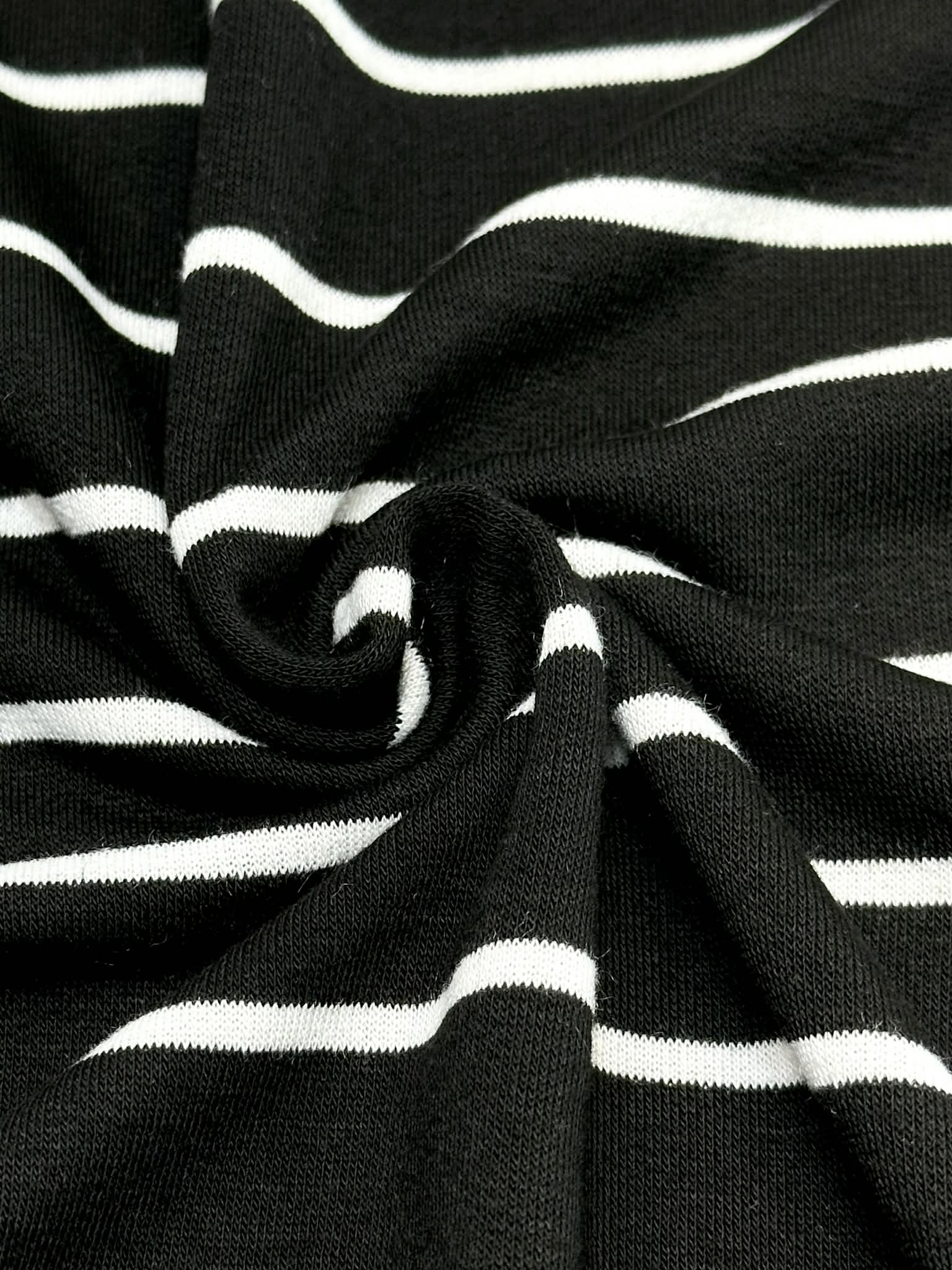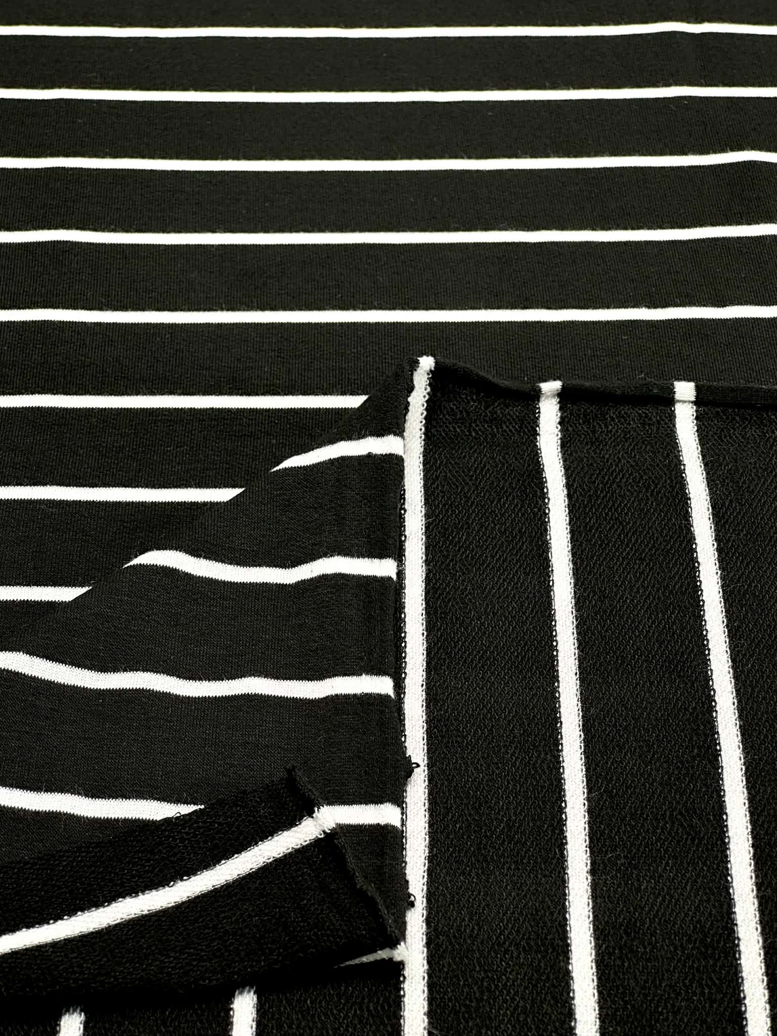 (THIN FRENCH TERRY) OFF WHITE STRIPES ON BLACK