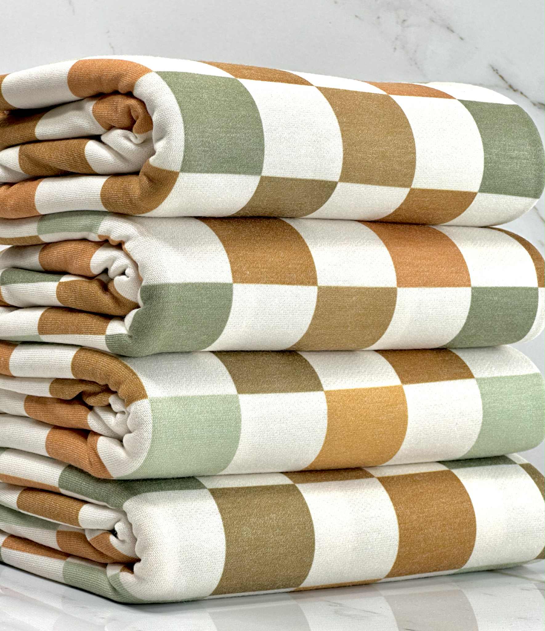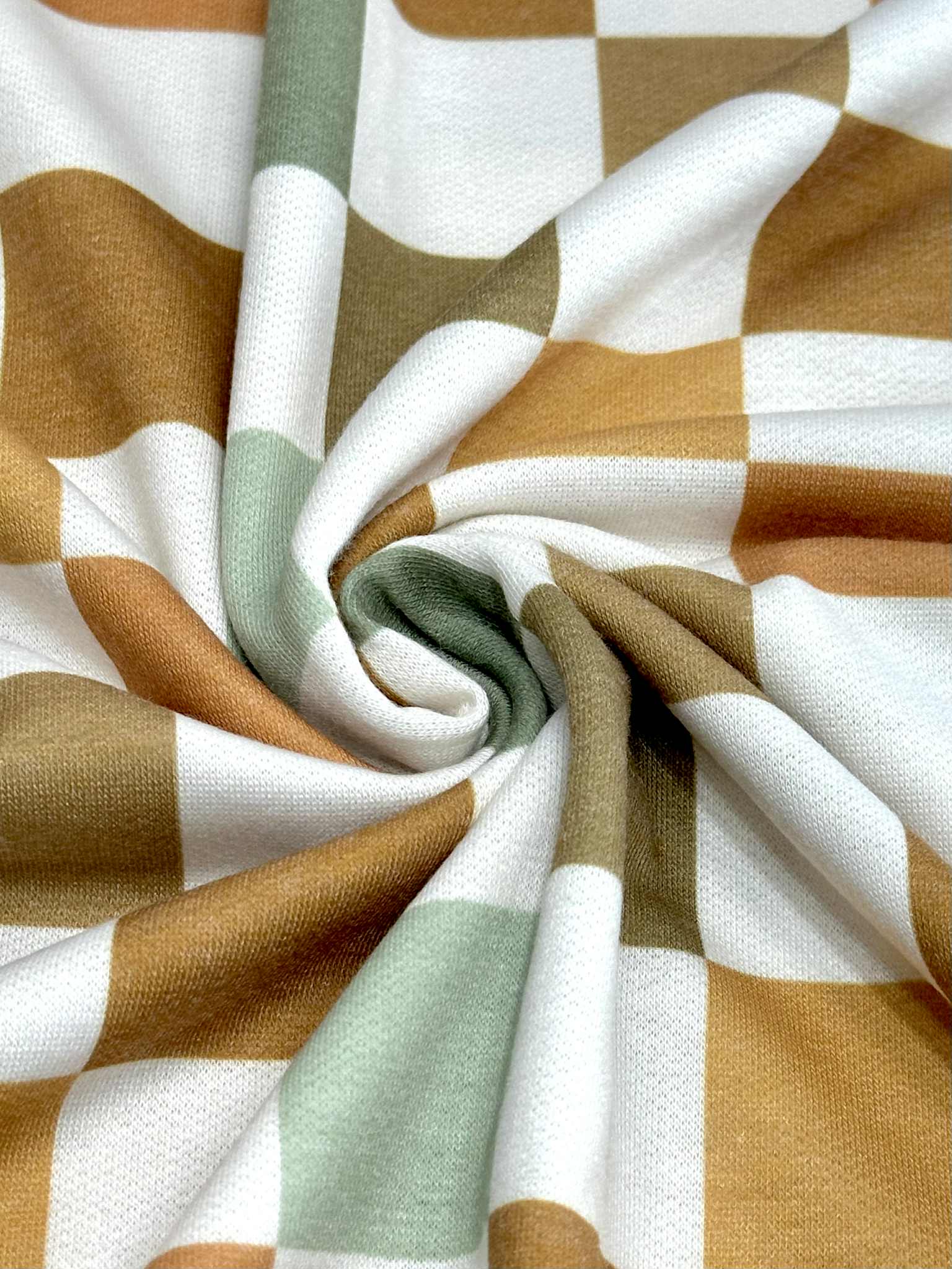 (FRENCH TERRY) BROWN, RUST, SAGE AND OFF WHITE MEDIUM CHECKERED