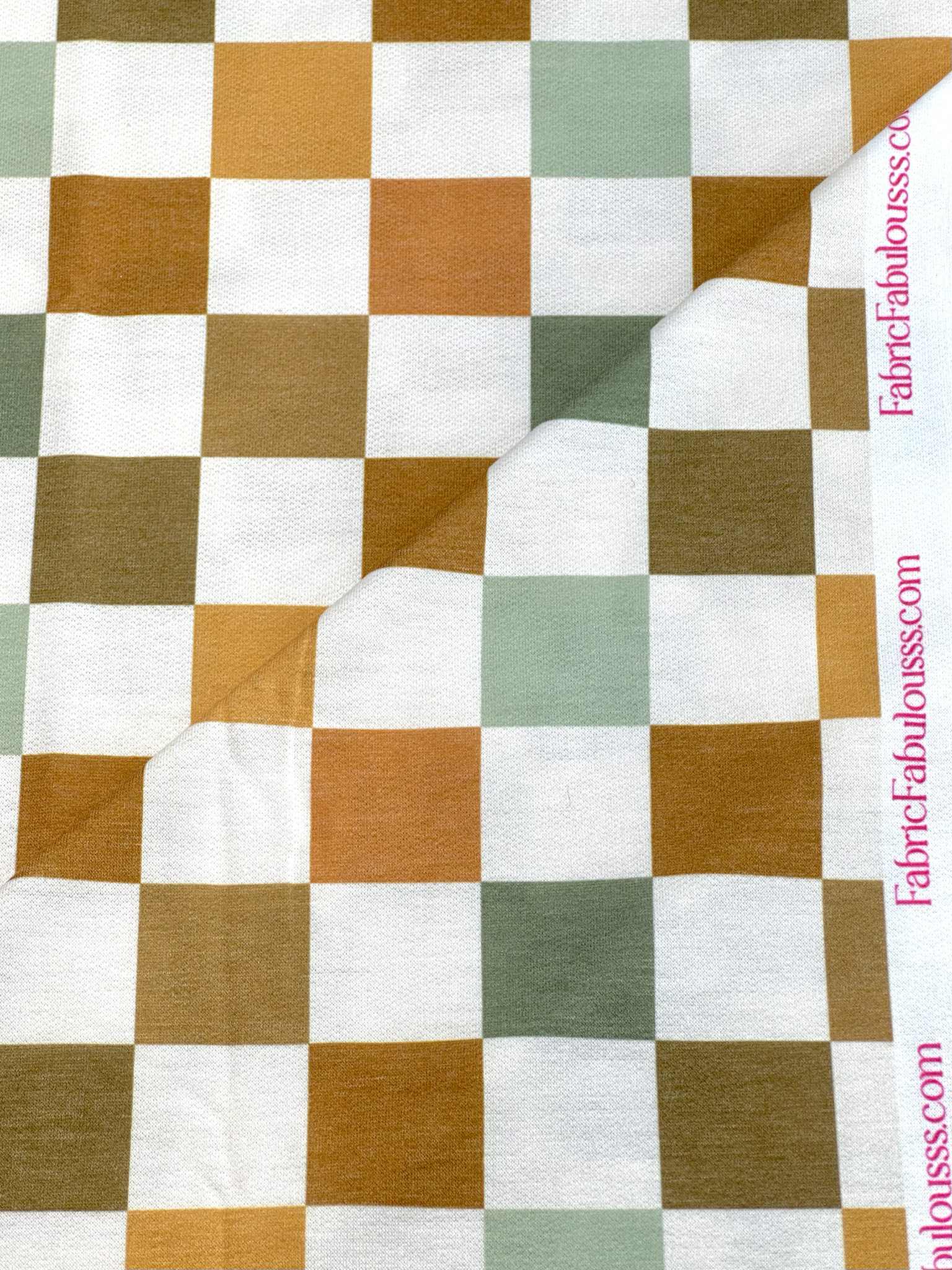 (FRENCH TERRY) BROWN AND OFF WHITE MEDIUM CHECKERED