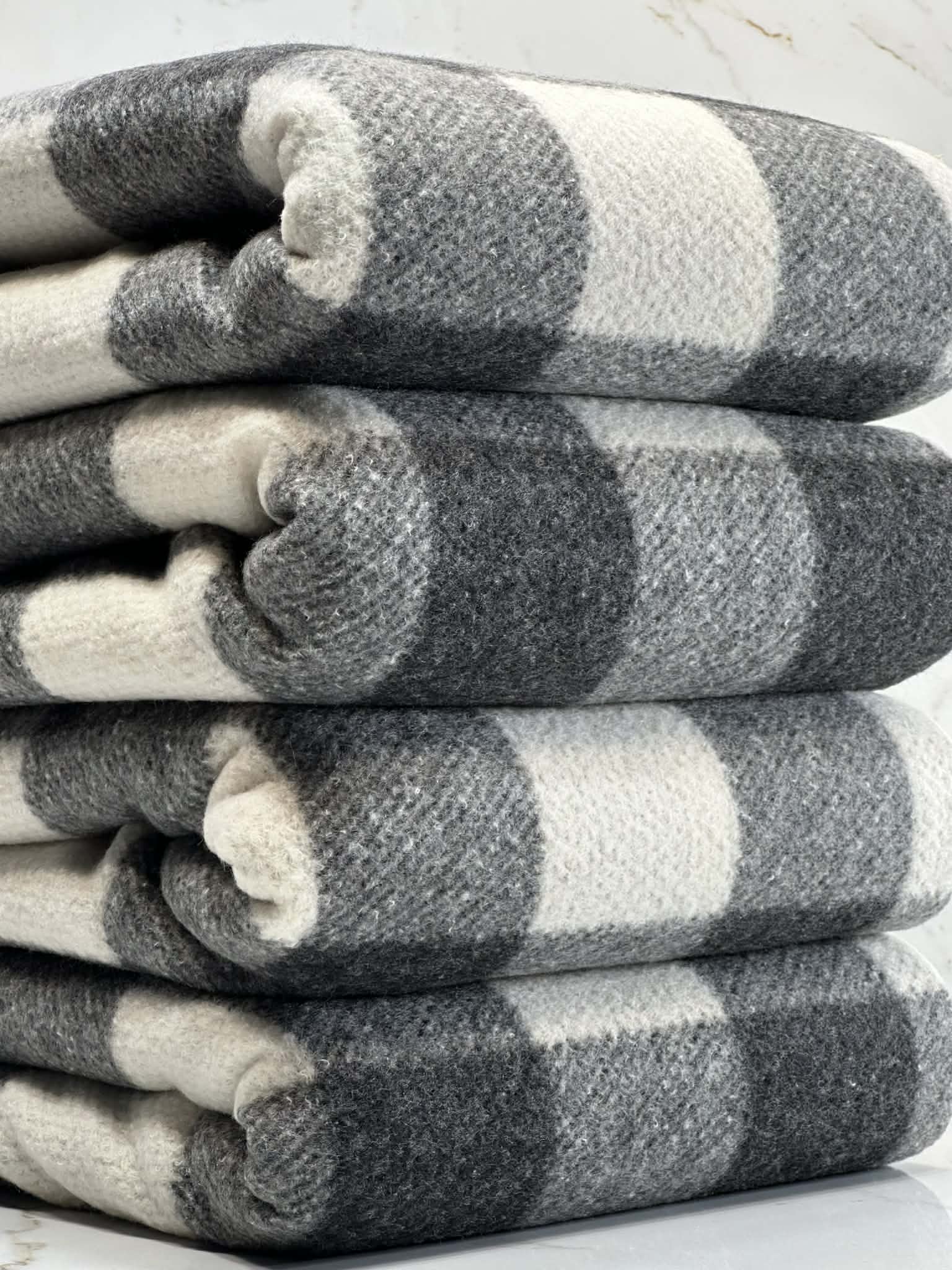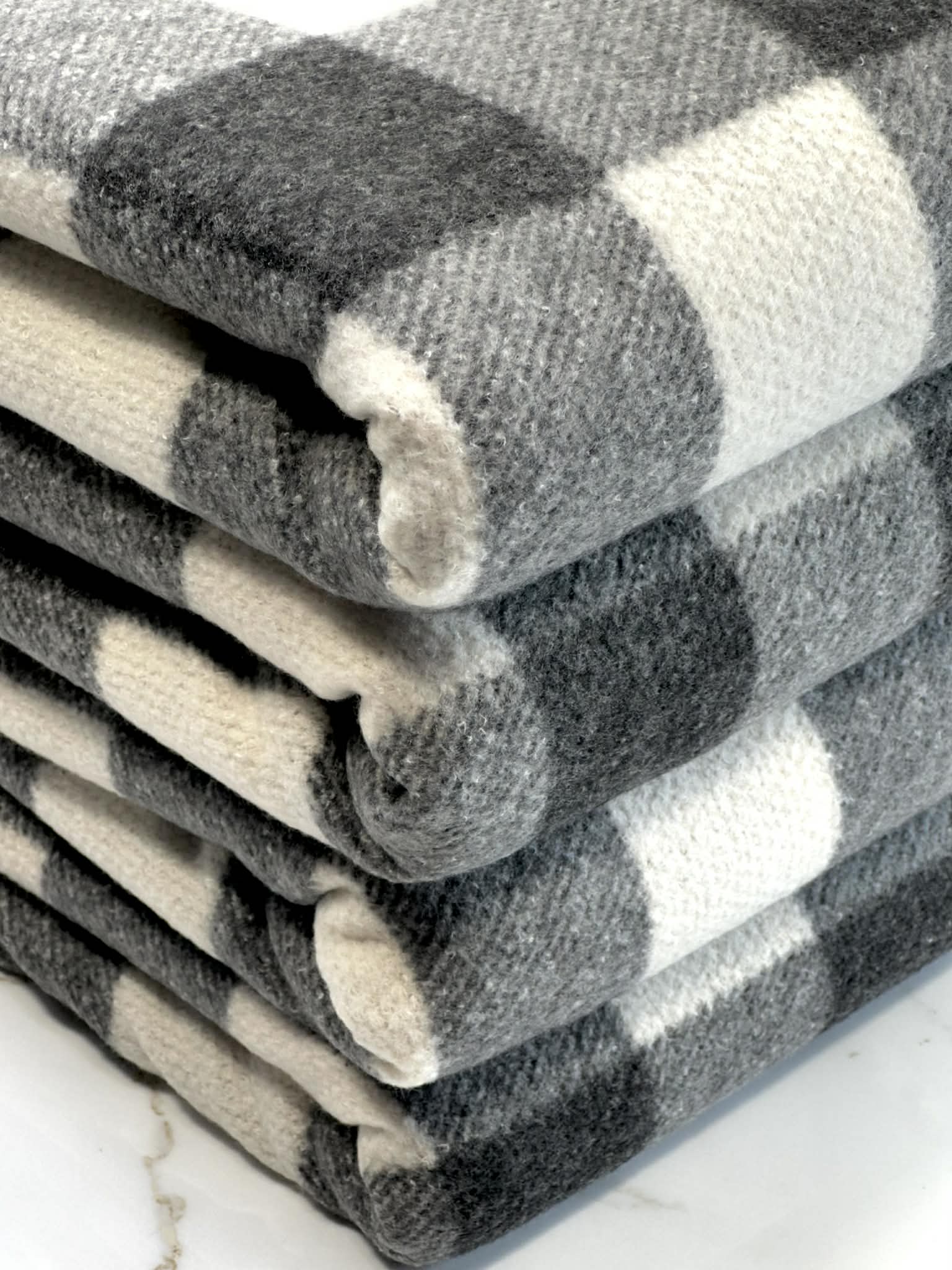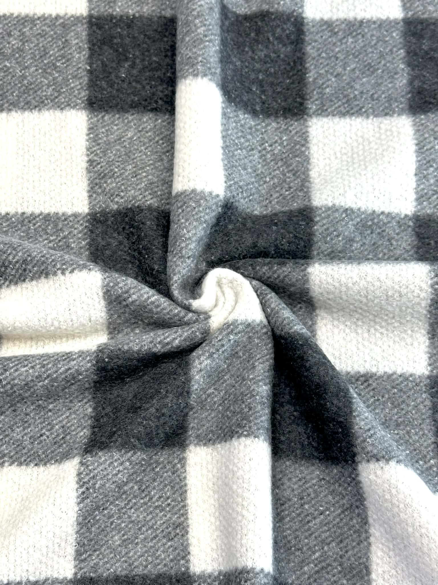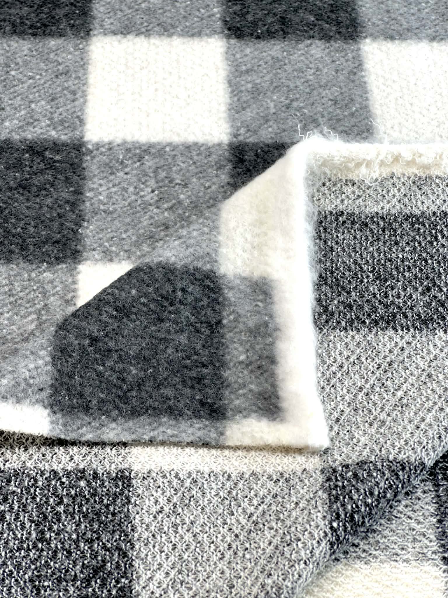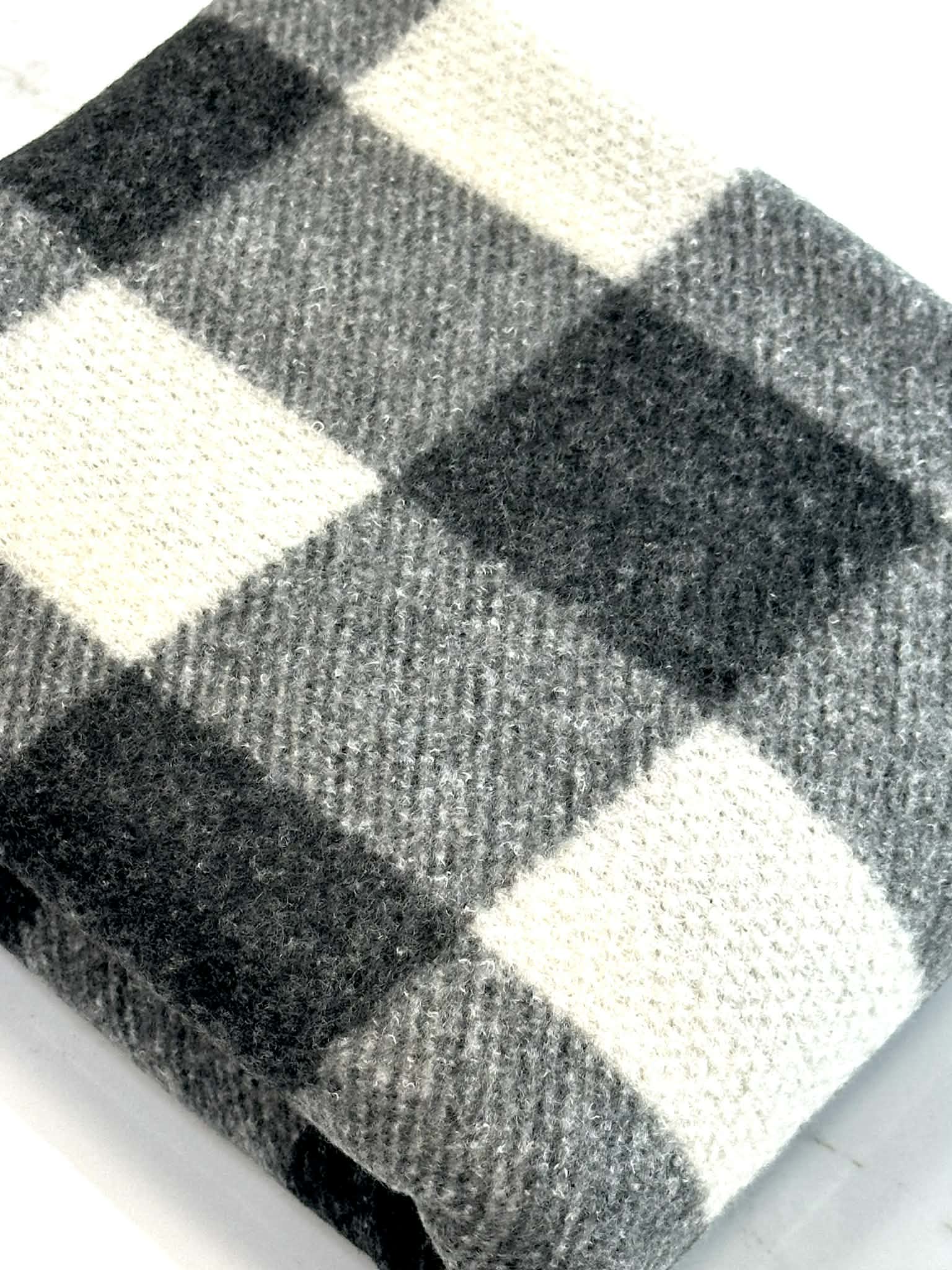 (BRUSHED HACCI) BLACK, GRAY, AND OFF WHITE PLAID