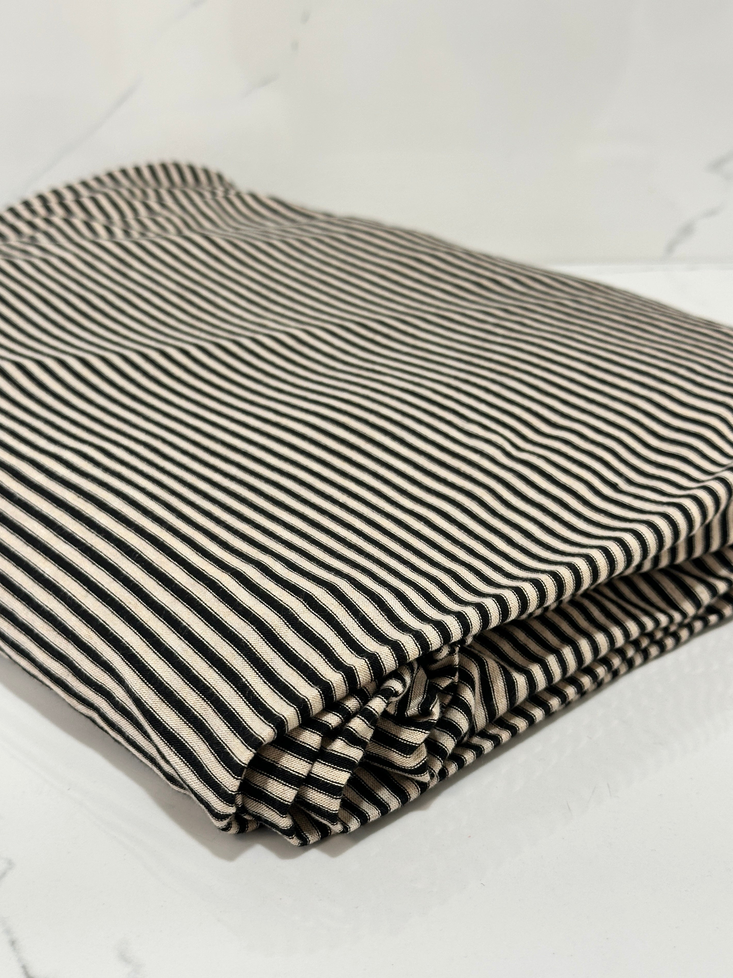 (JERSEY) BLACK STRIPES ON OFF WHITE (2 CONTIUOUS YARDS)