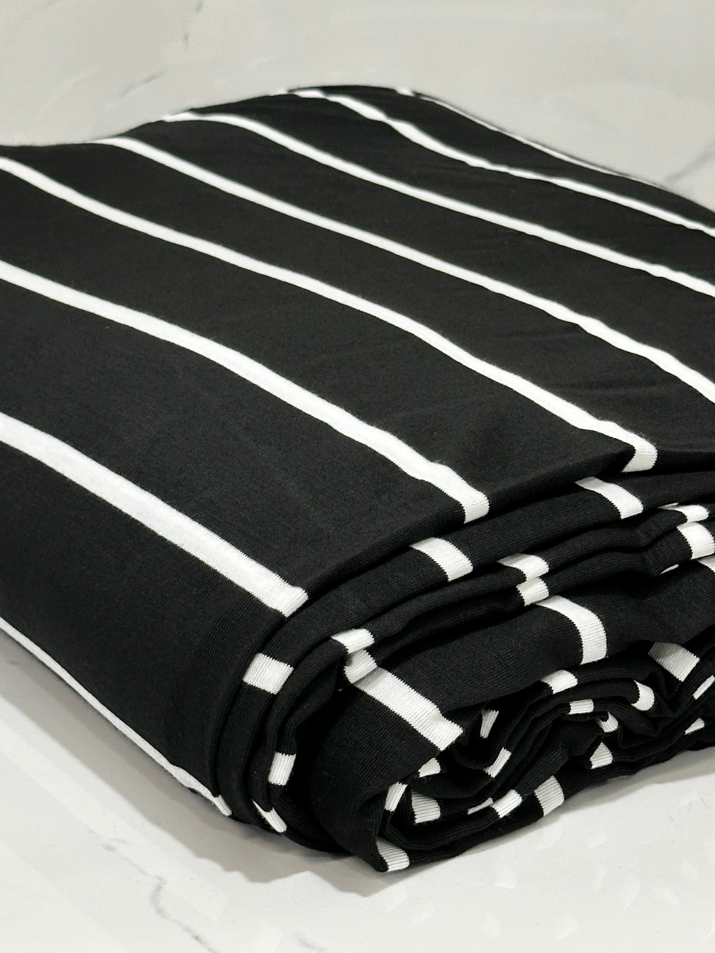 (JERSEY) BLACK STRIPES ON OFF WHITE (3 CONTINUOUS YARDS)