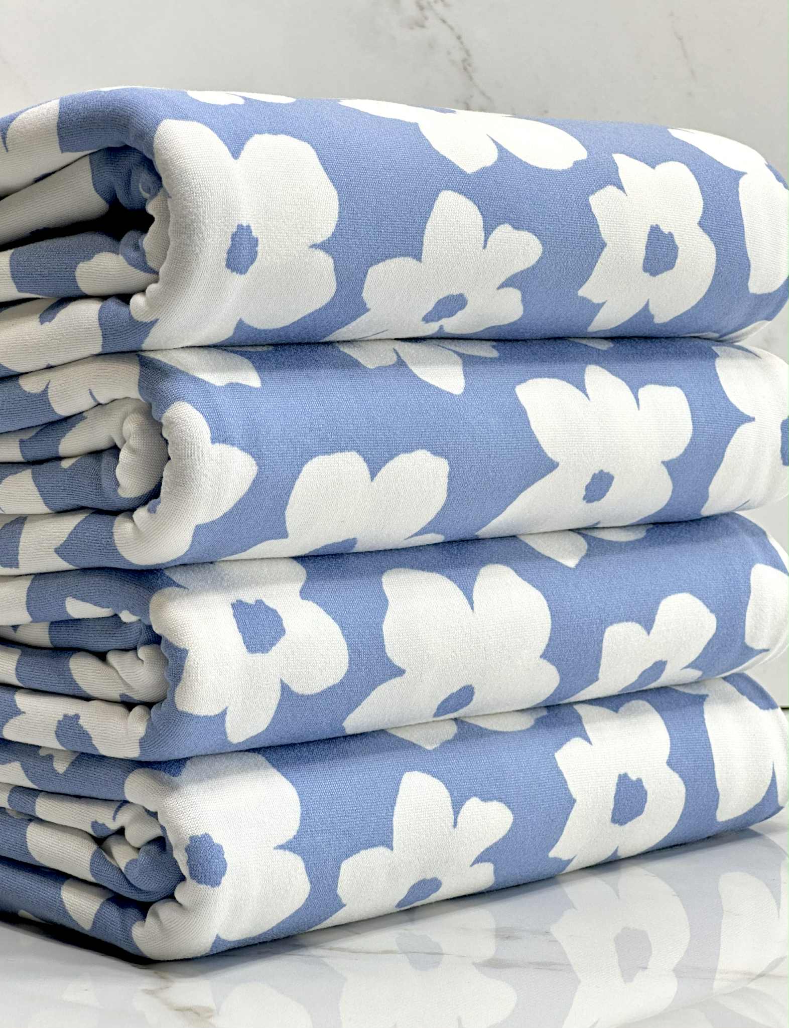 (DBP) WHITE BIG FLOWERS ON BLUE