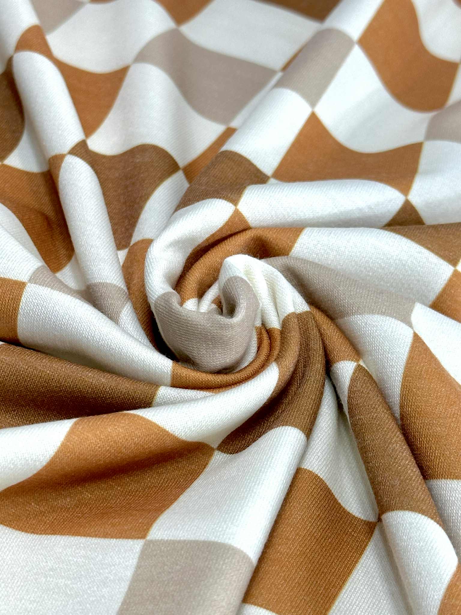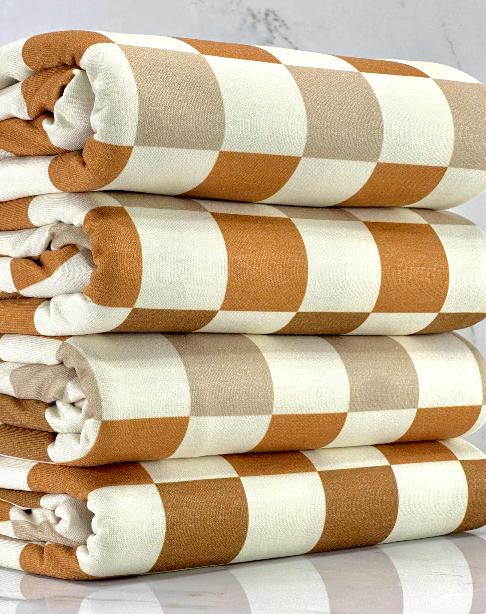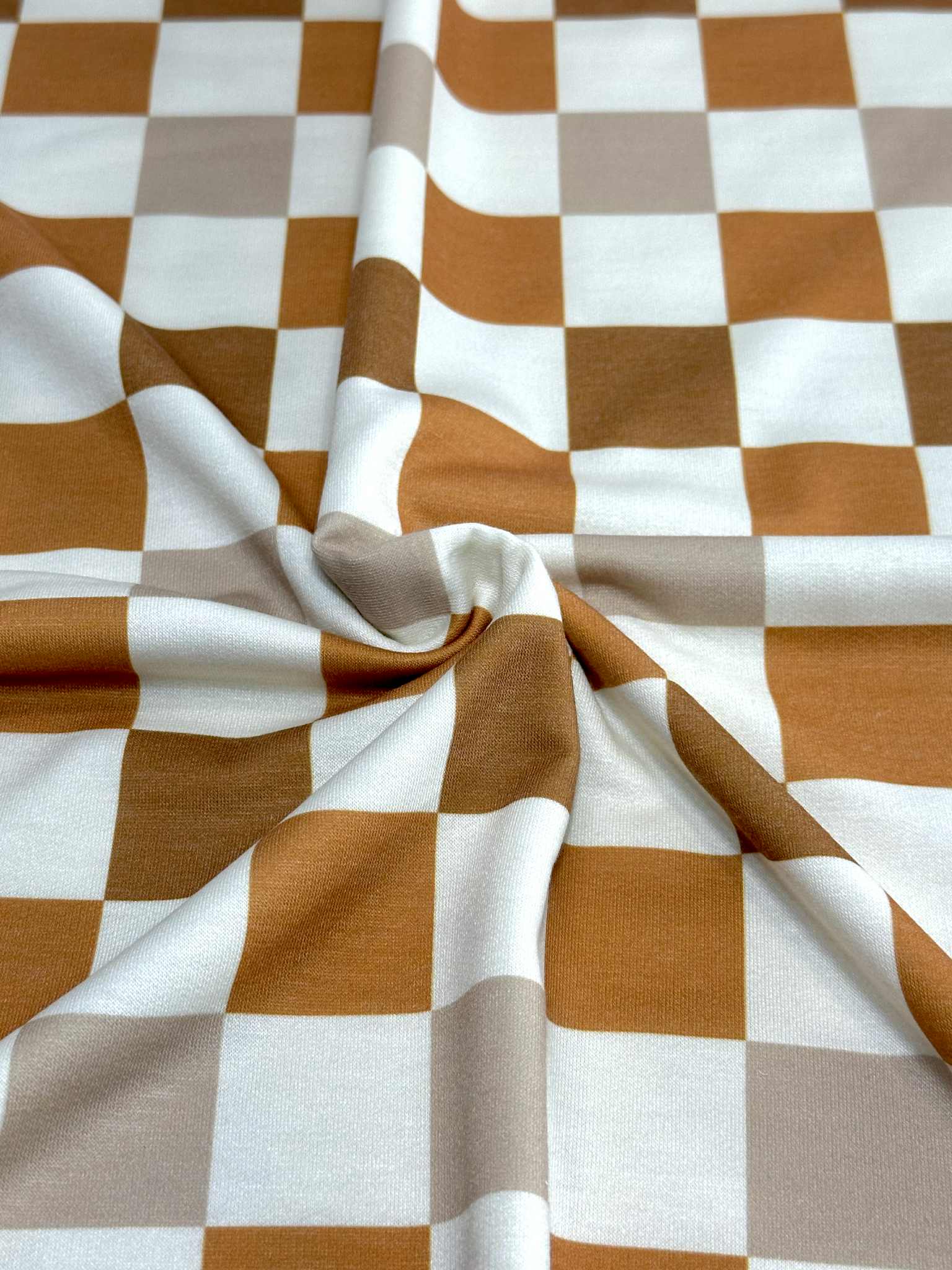 (FRENCH TERRY) BROWN AND OFF WHITE MEDIUM CHECKERED