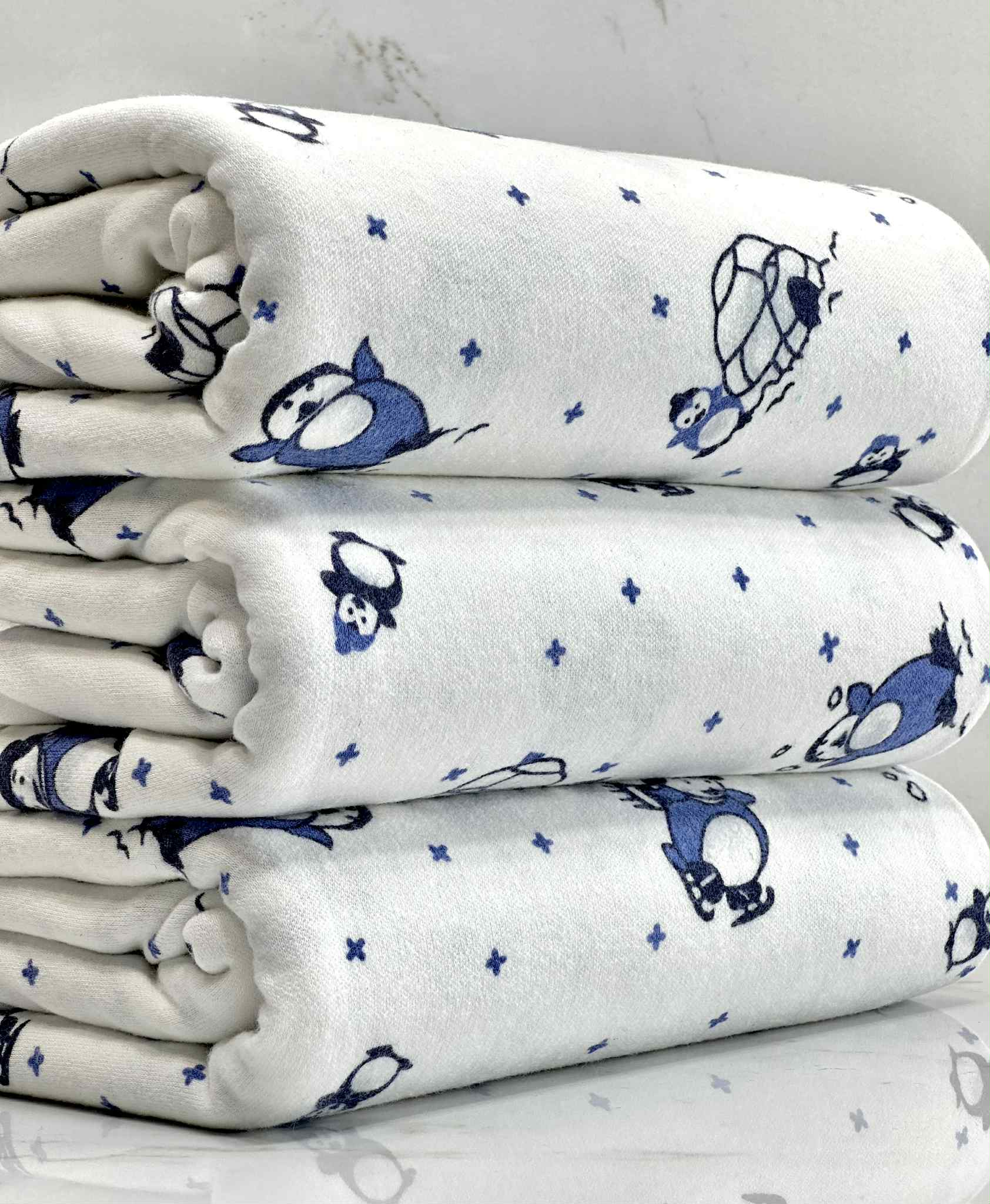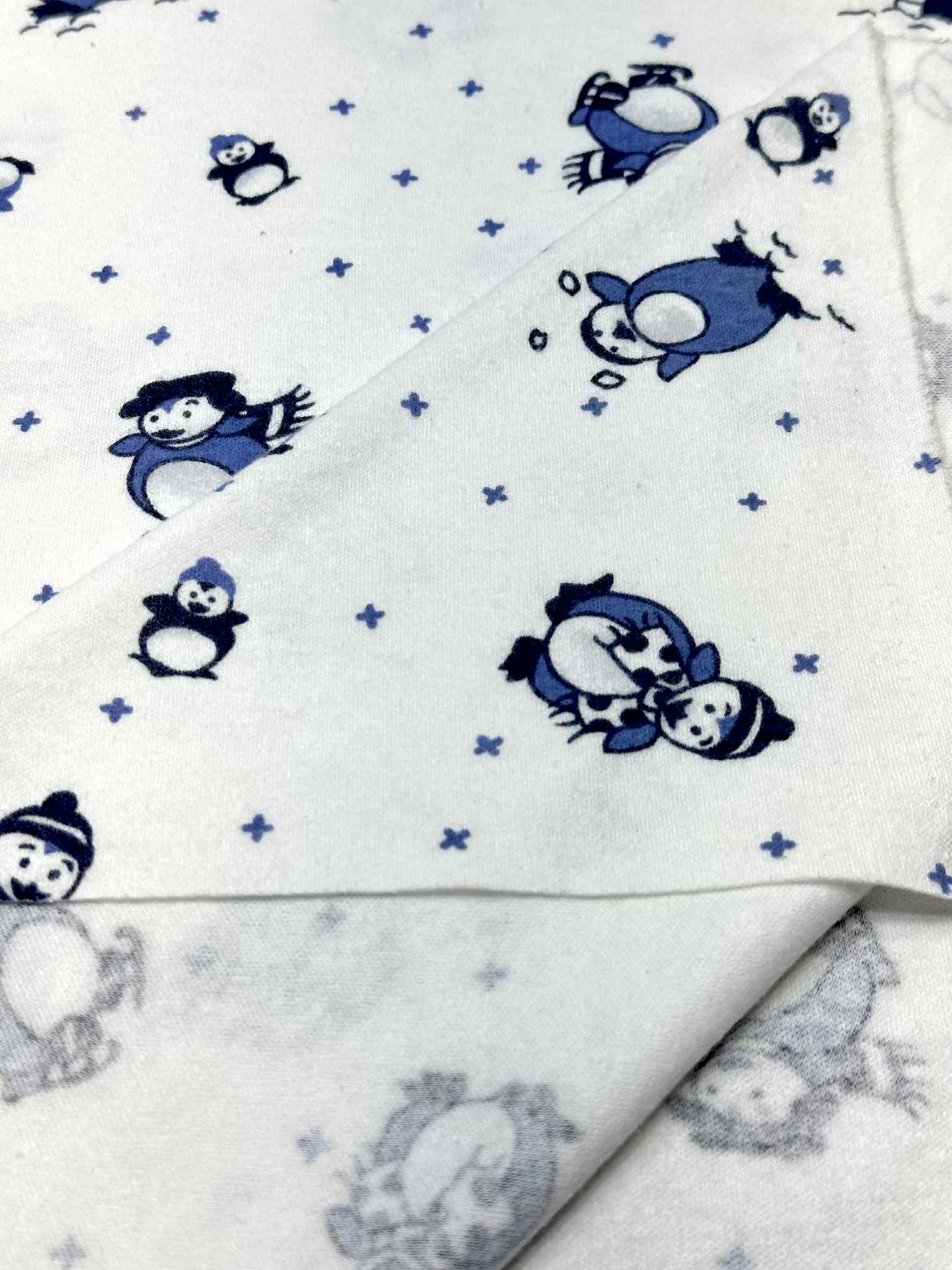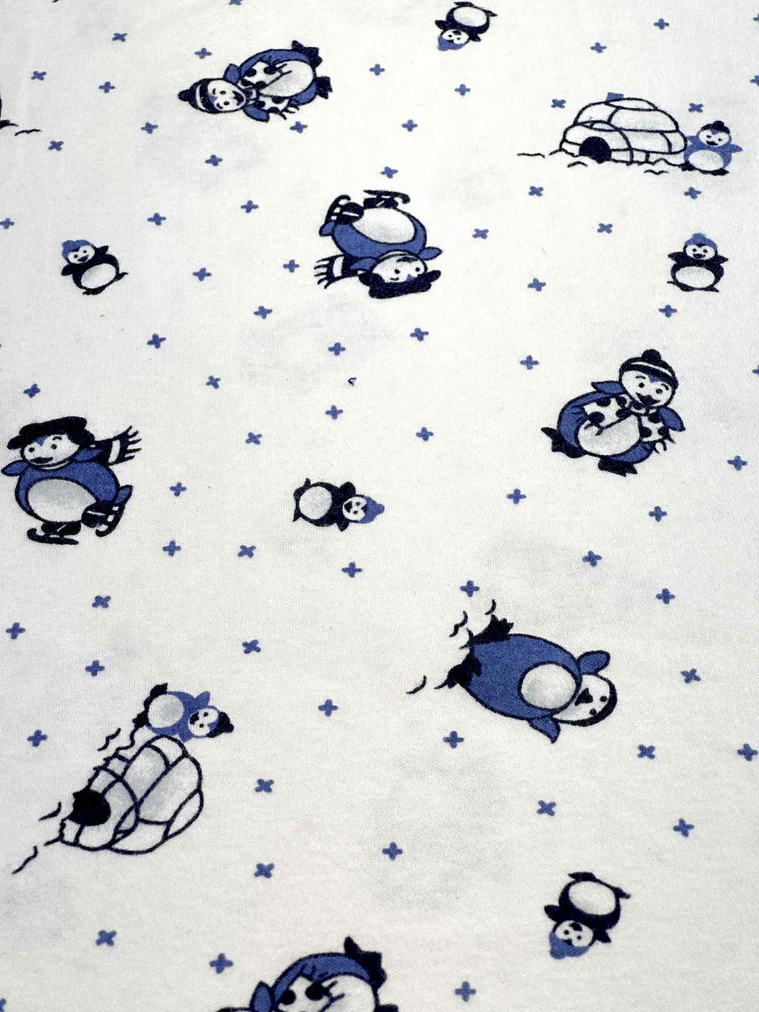 (COTTON KNIT) BLUE PENGUINS ON OFF WHITE