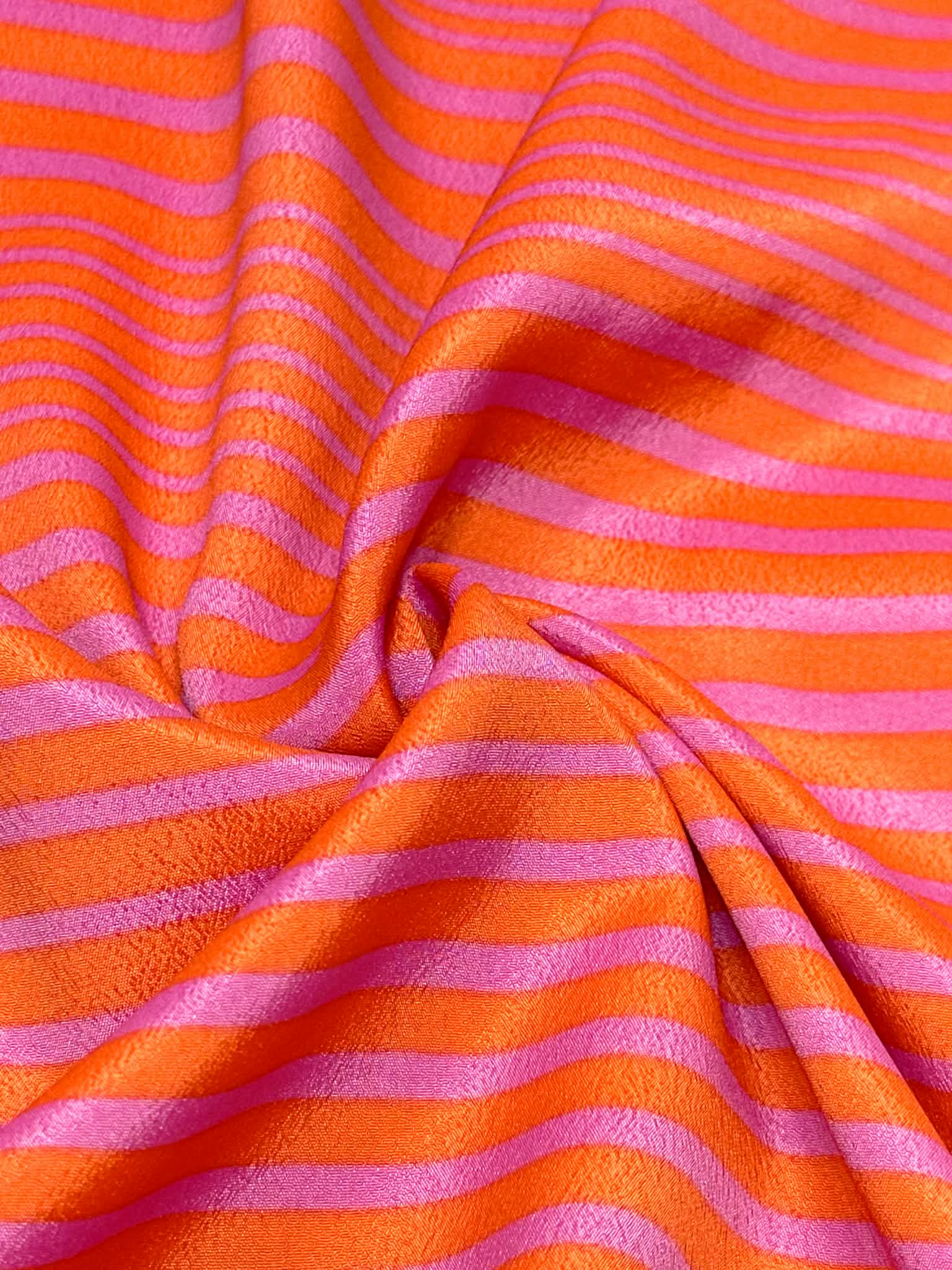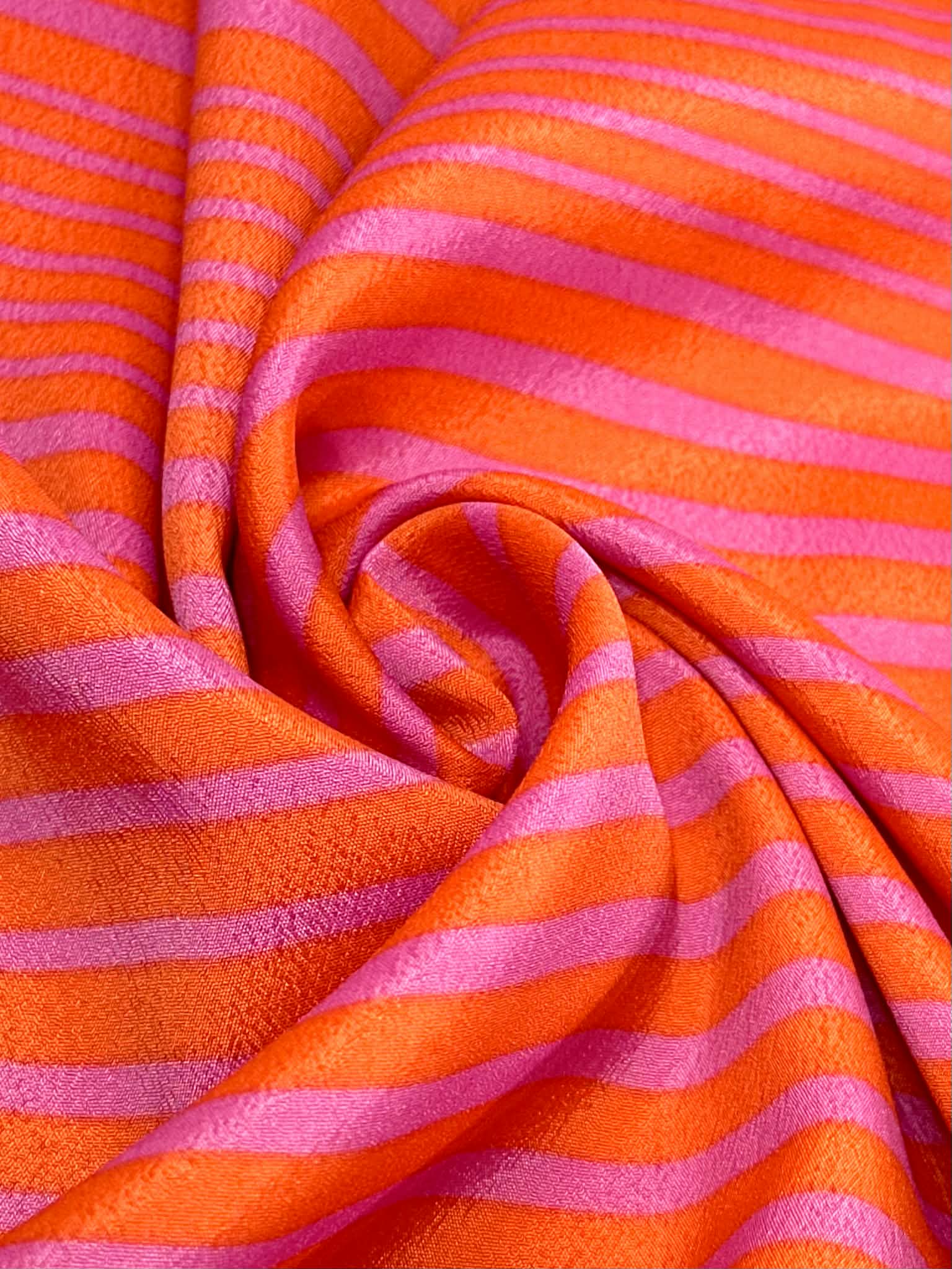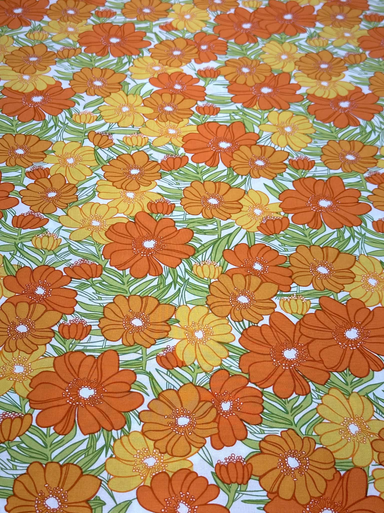(WOVEN) ORANGE AND TANGERINE FLOWERS ON OFF WHITE