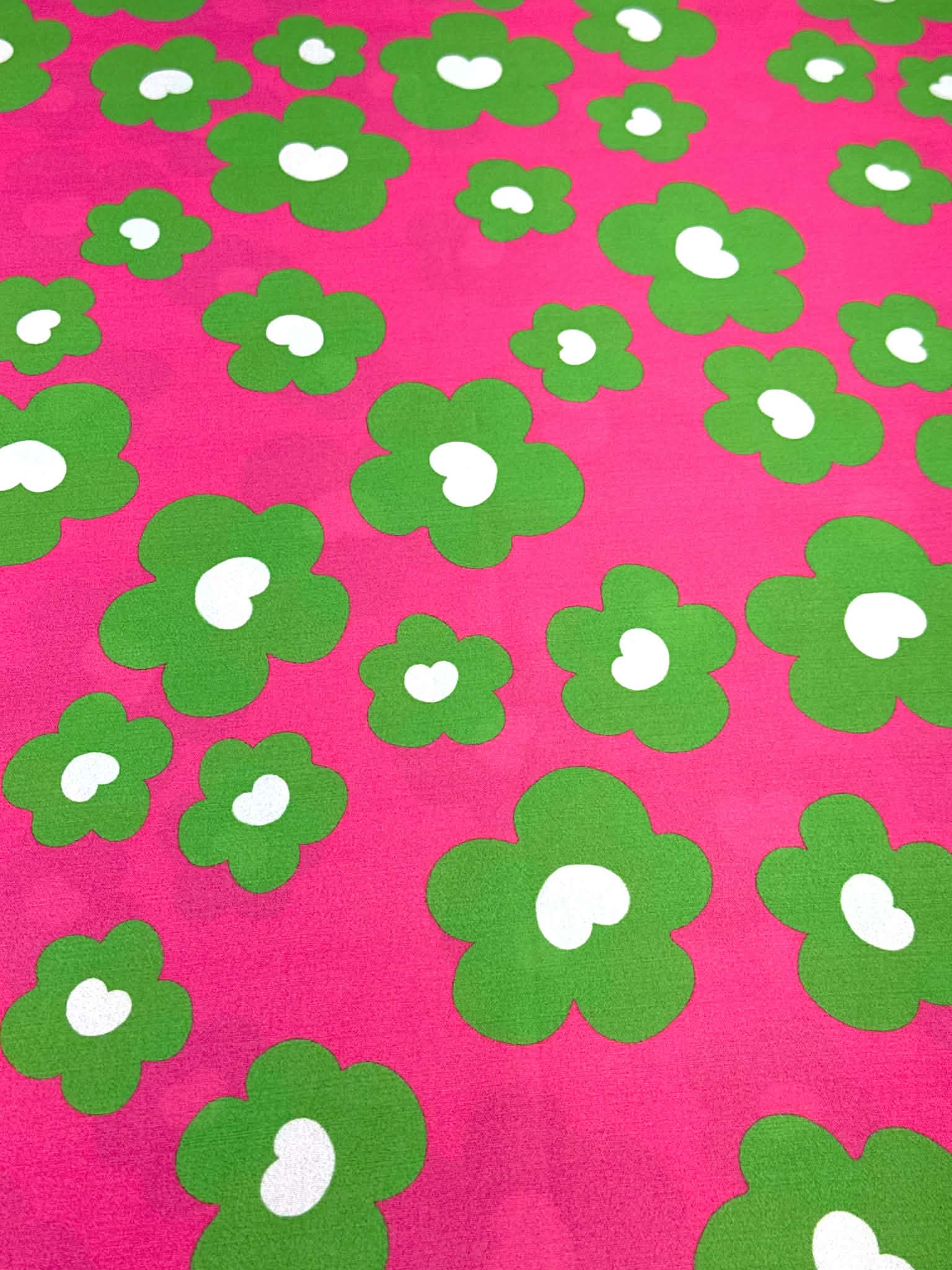 (WOVEN) GREEN FLOWERS ON FUCHSIA