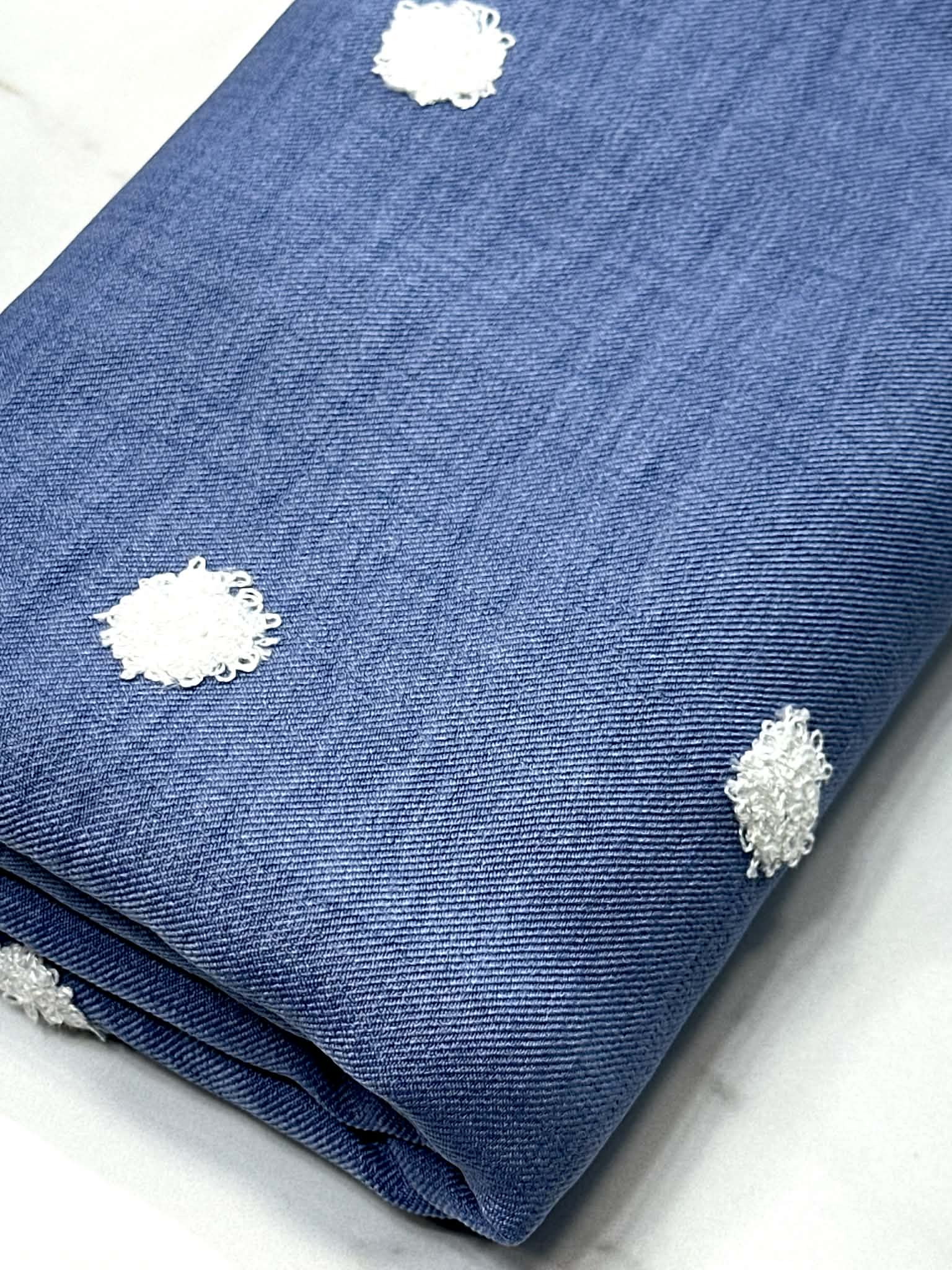 (WOVEN) 3D WHITE DOTS ON LIGHT INDIGO