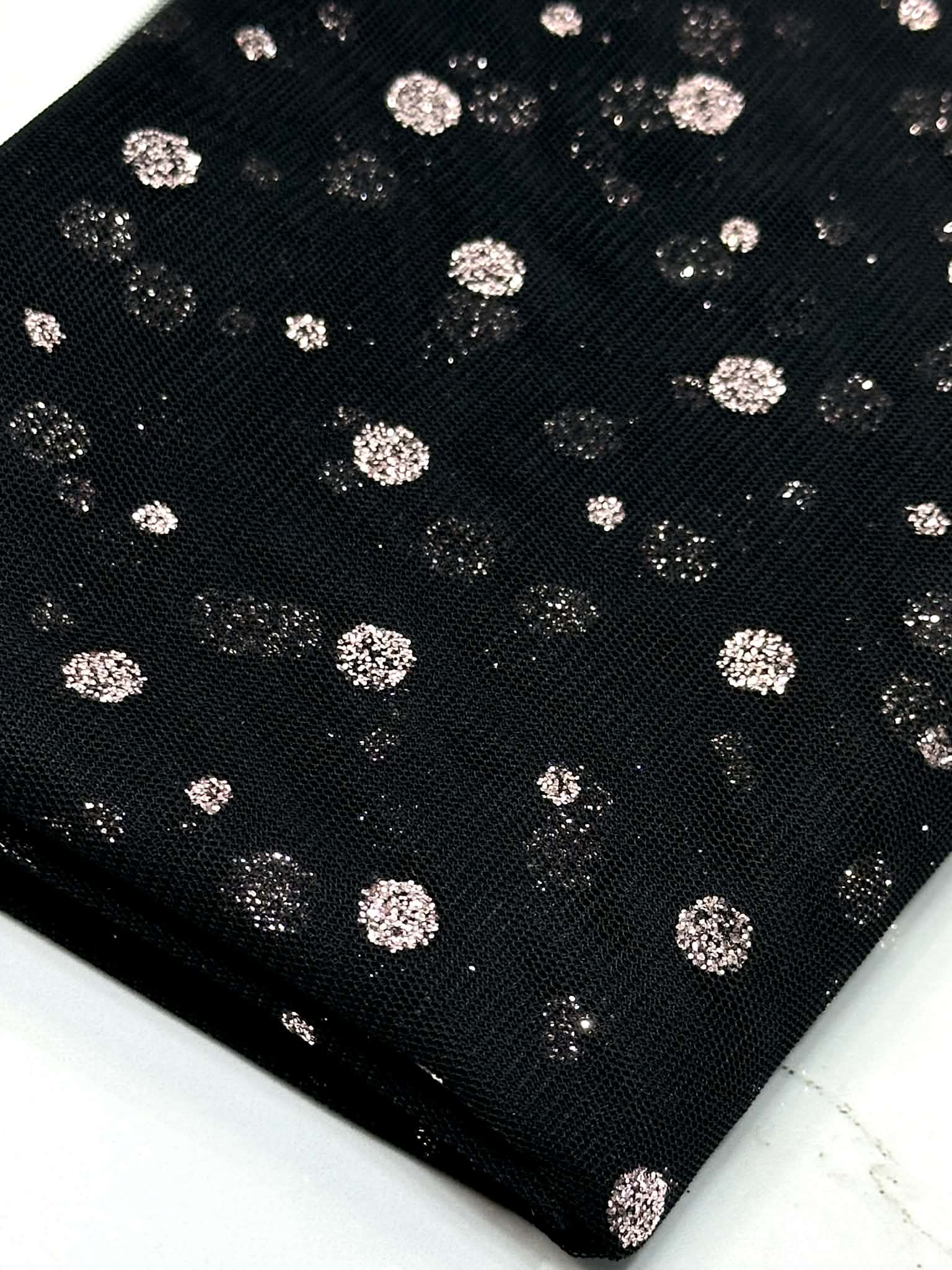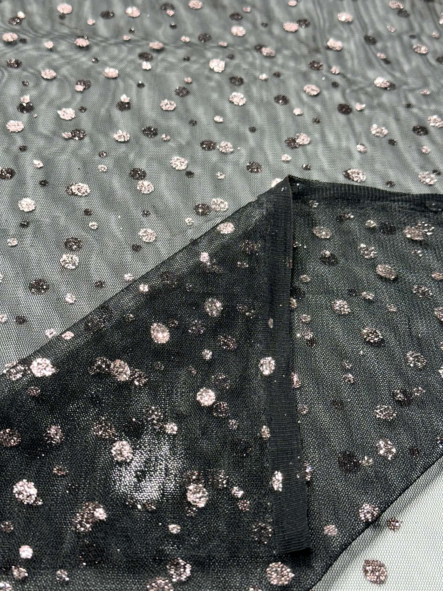 (MESH) PINK GLITTER POLKA DOTS ON BLACK