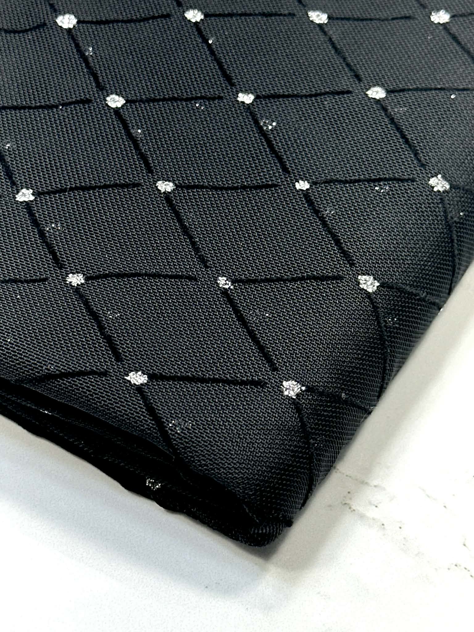 (MESH) SILVER GLITTER AND DIAMOND PATTERN ON BLACK