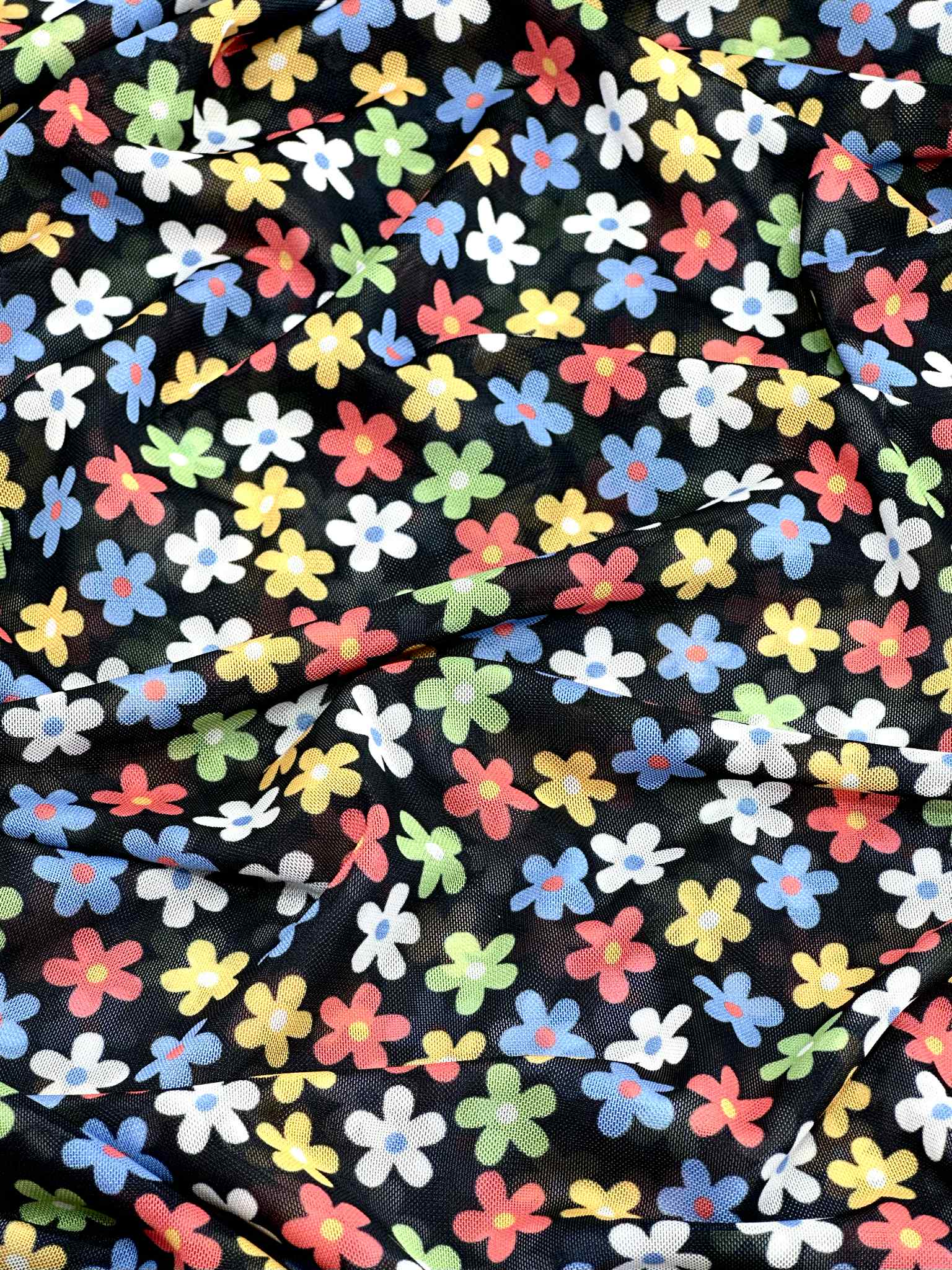 (MESH) TINY COLORFUL FLOWERS ON BLACK