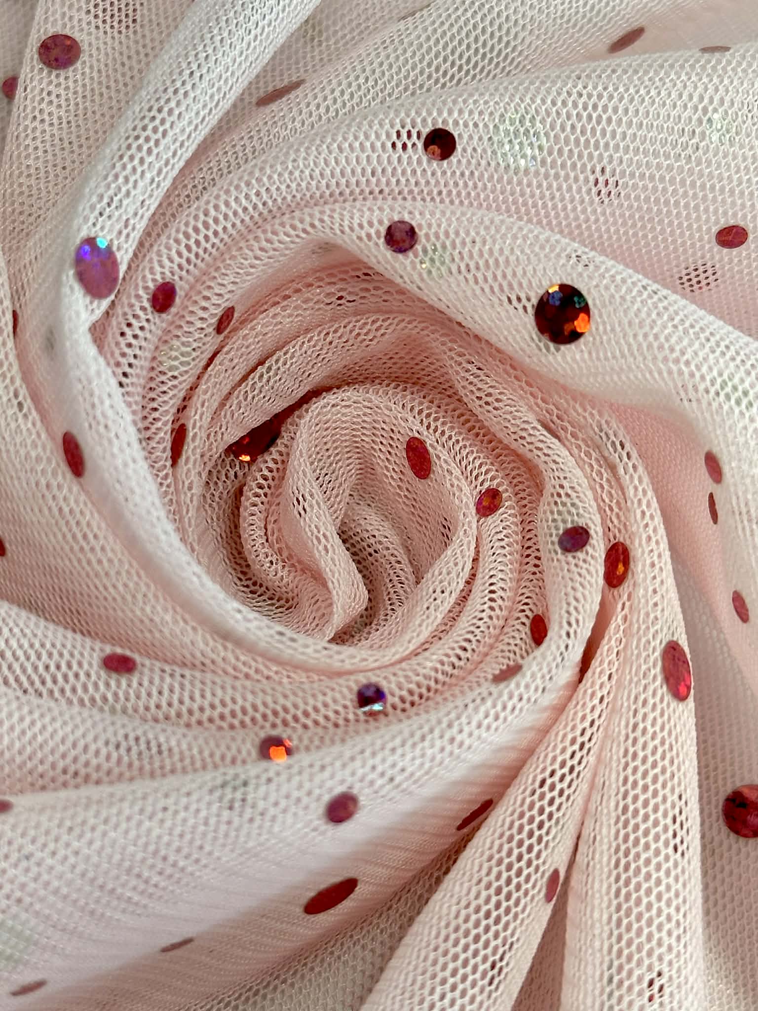 (MESH) SHIMMERY POLKA DOTS ON LIGHT PINK