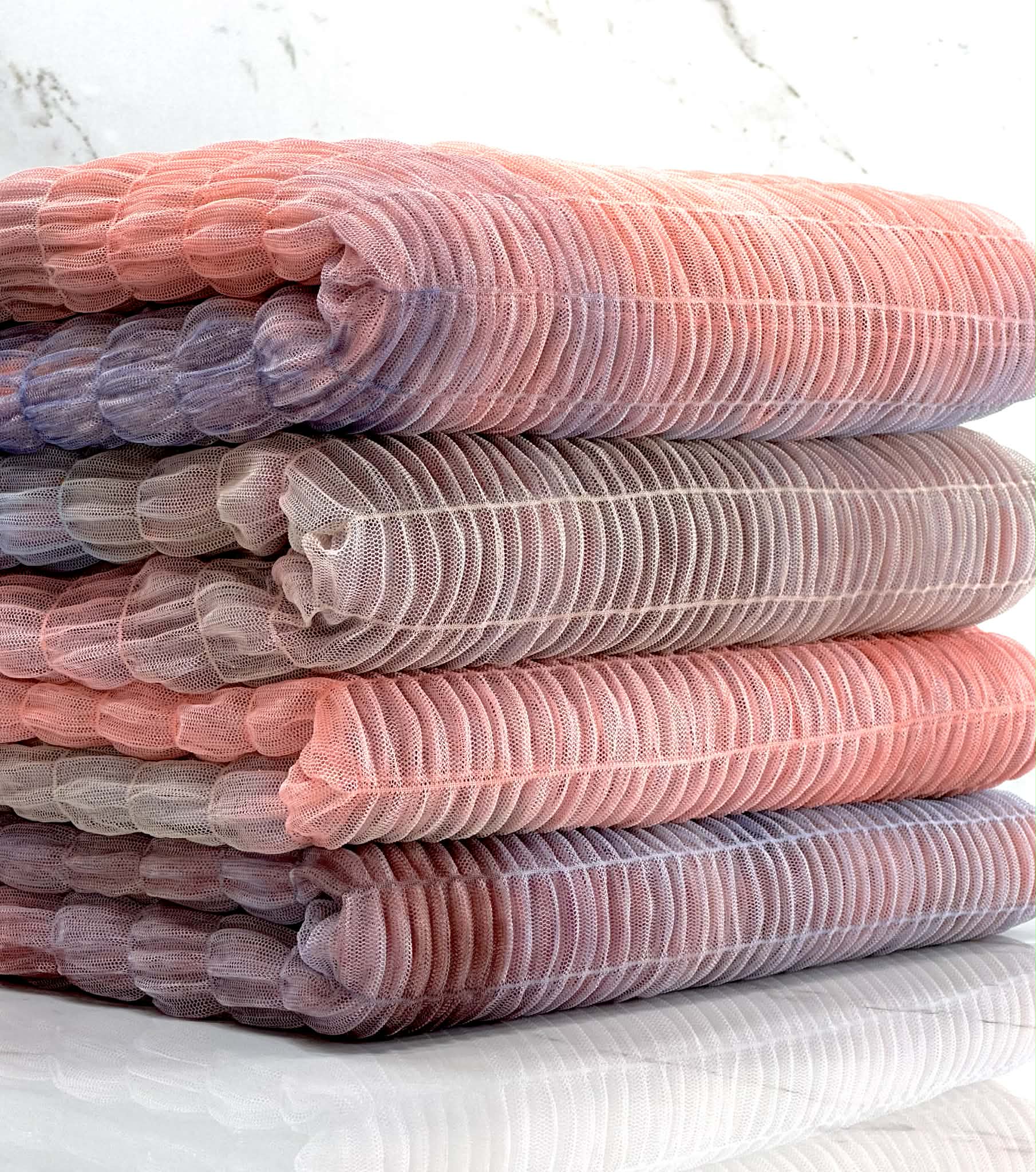 (PLEATED MESH) BLUE AND CORAL TIE DYE
