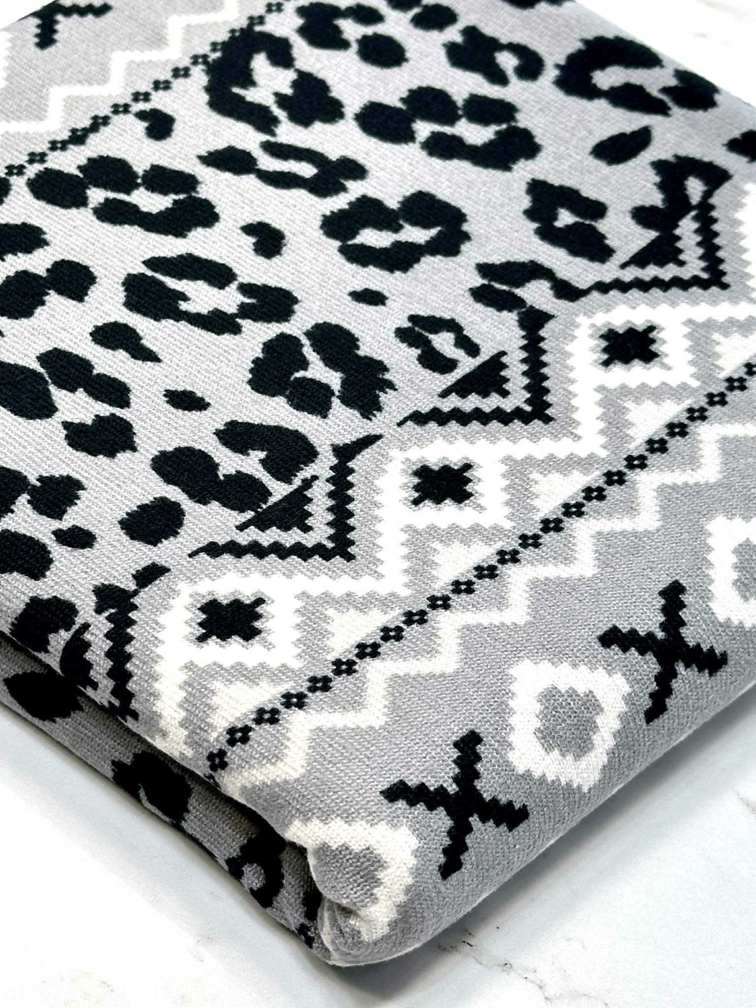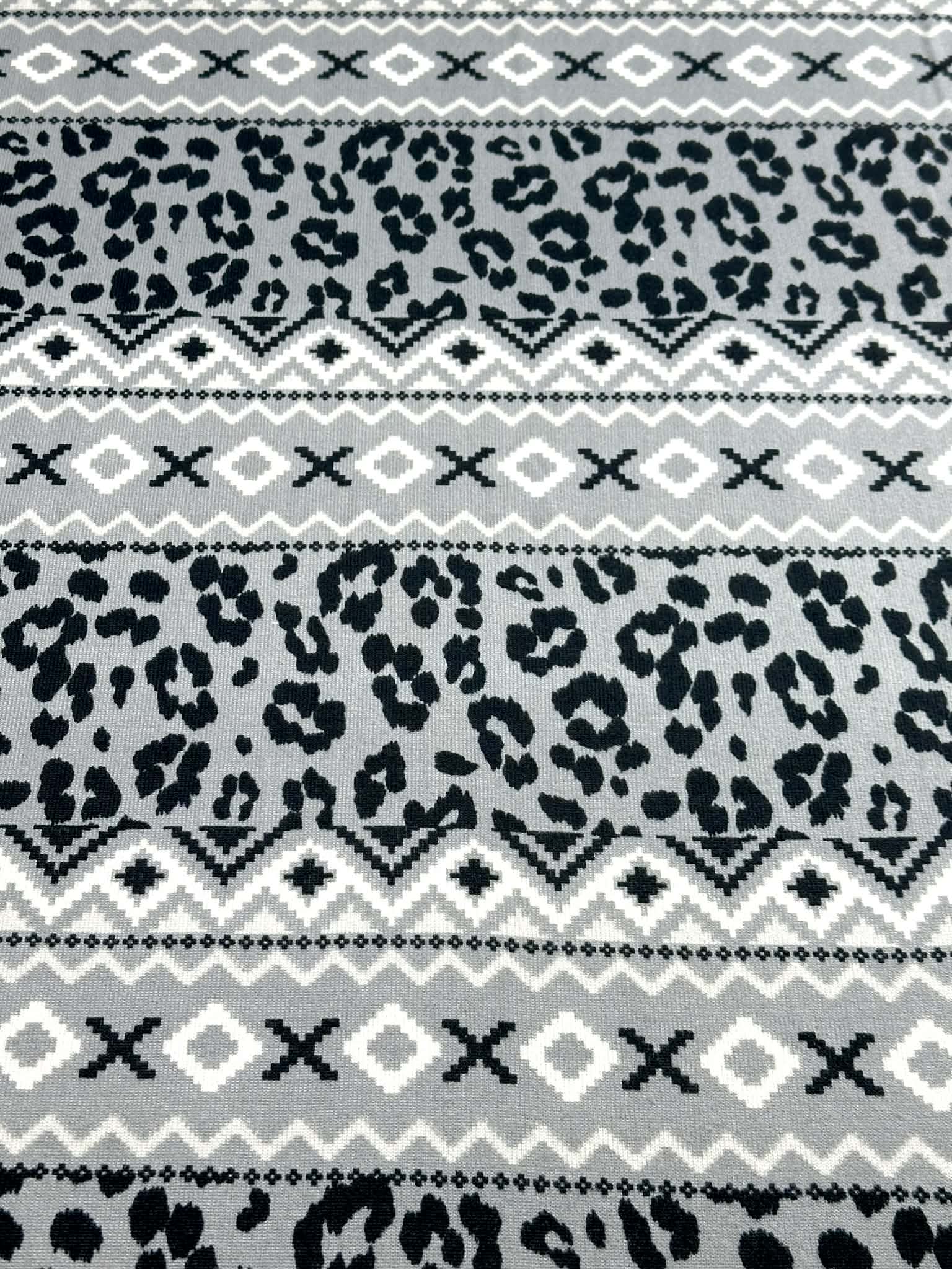 (SWEATER KNIT/ OAKLEY) LEOPARD AND AZTEC PATTERN ON GRAY