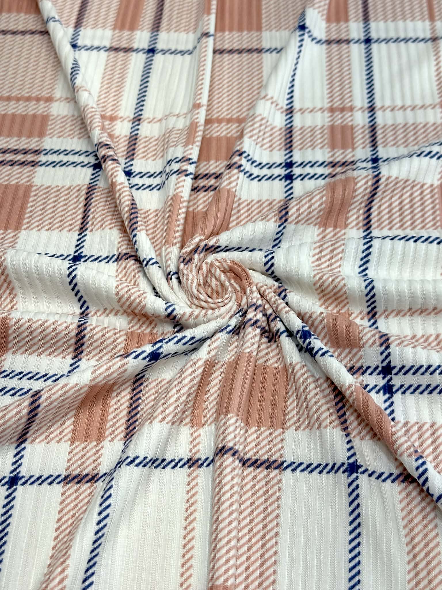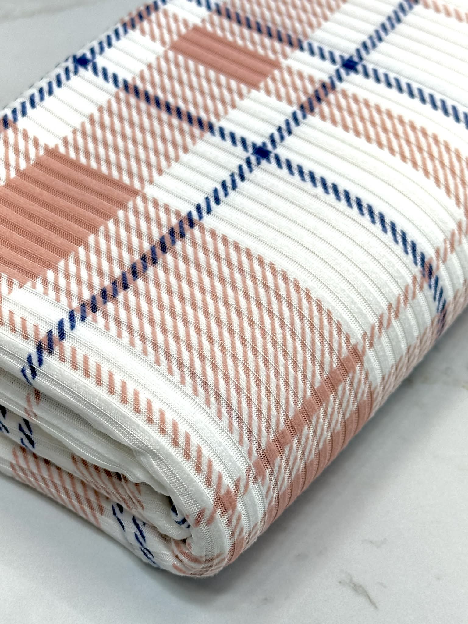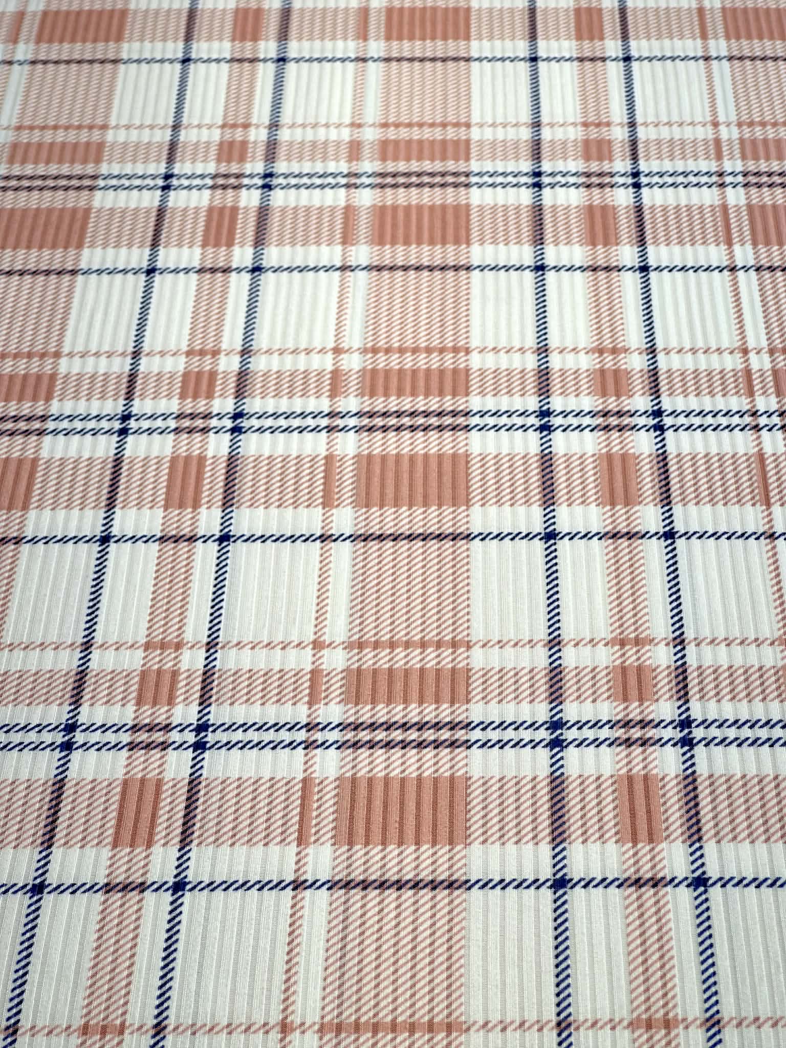 (4X2 YUMMY RIB) DUSTY PINK AND NAVY BLUE PLAID ON OFF WHITE