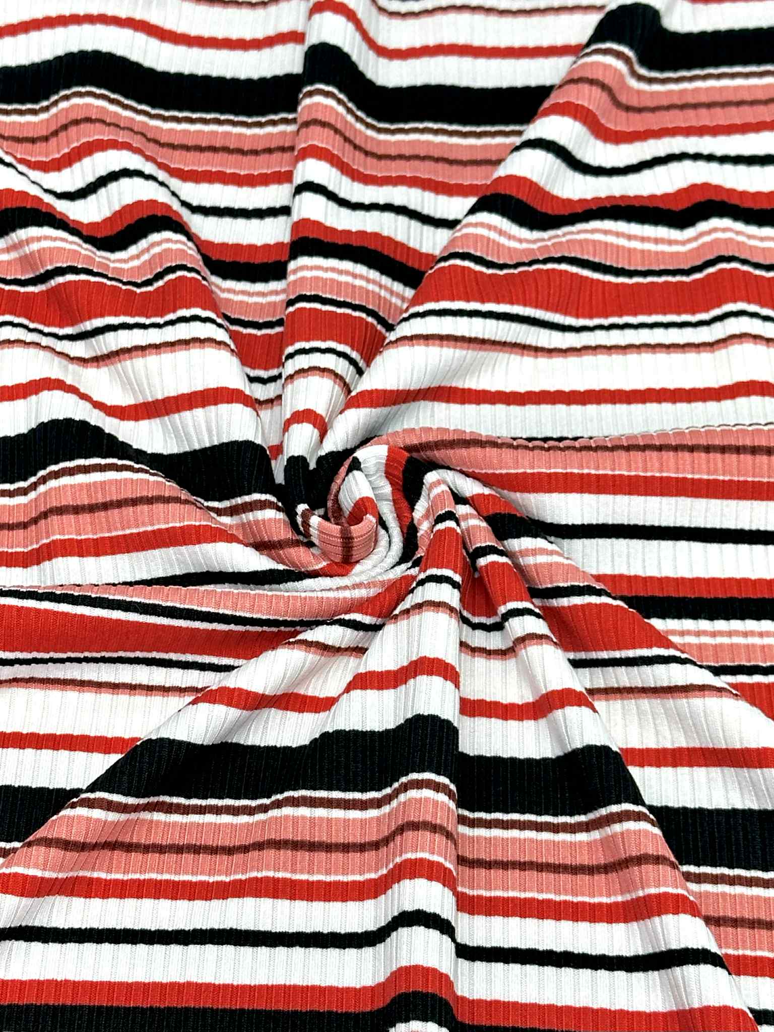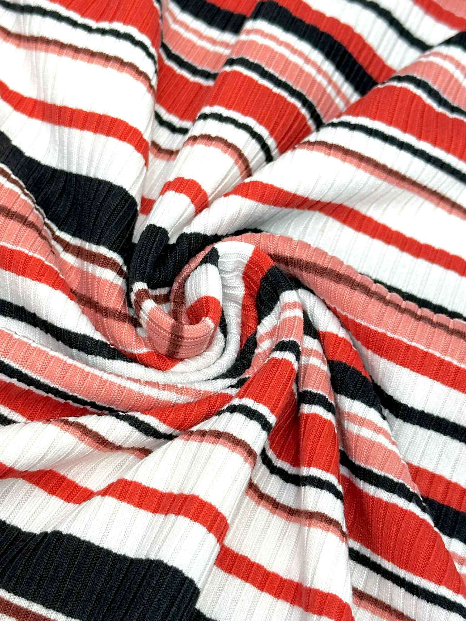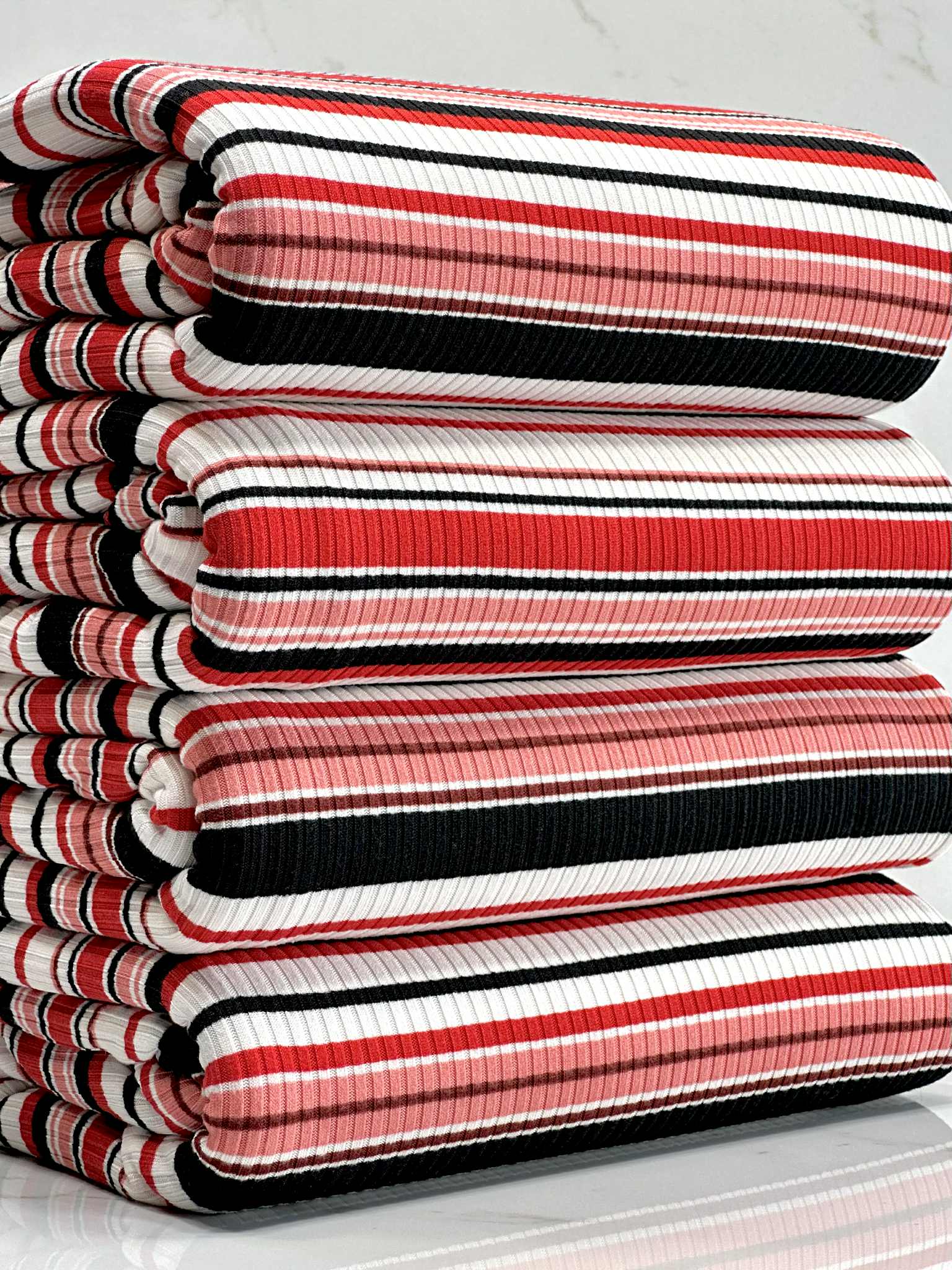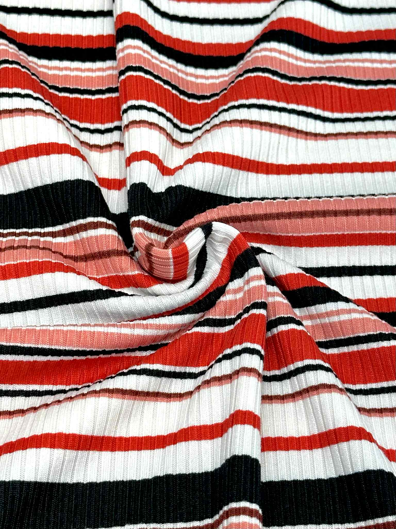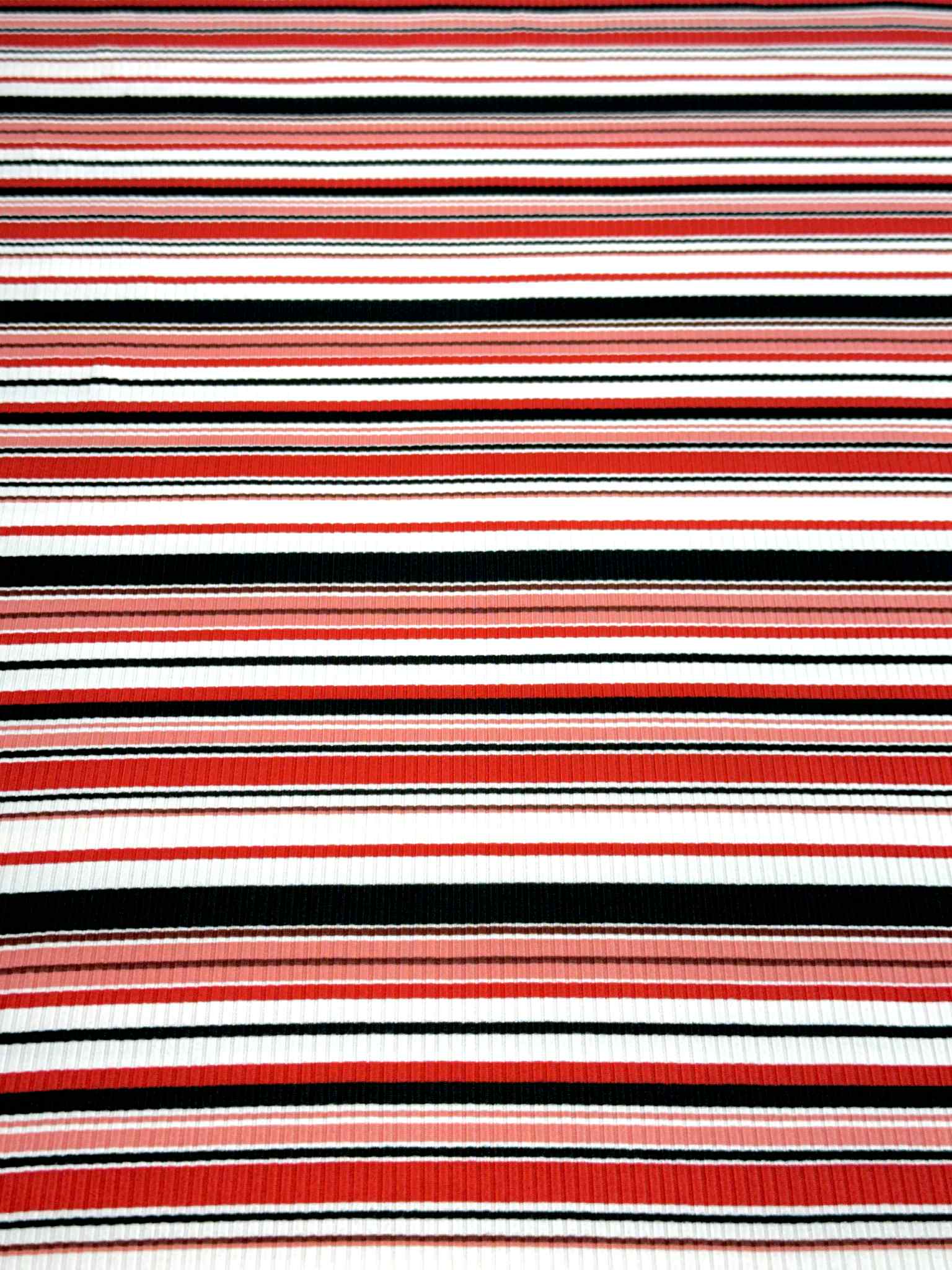 (RIB) RED, BLACK, AND CORAL STRIPES ON OFF WHITE