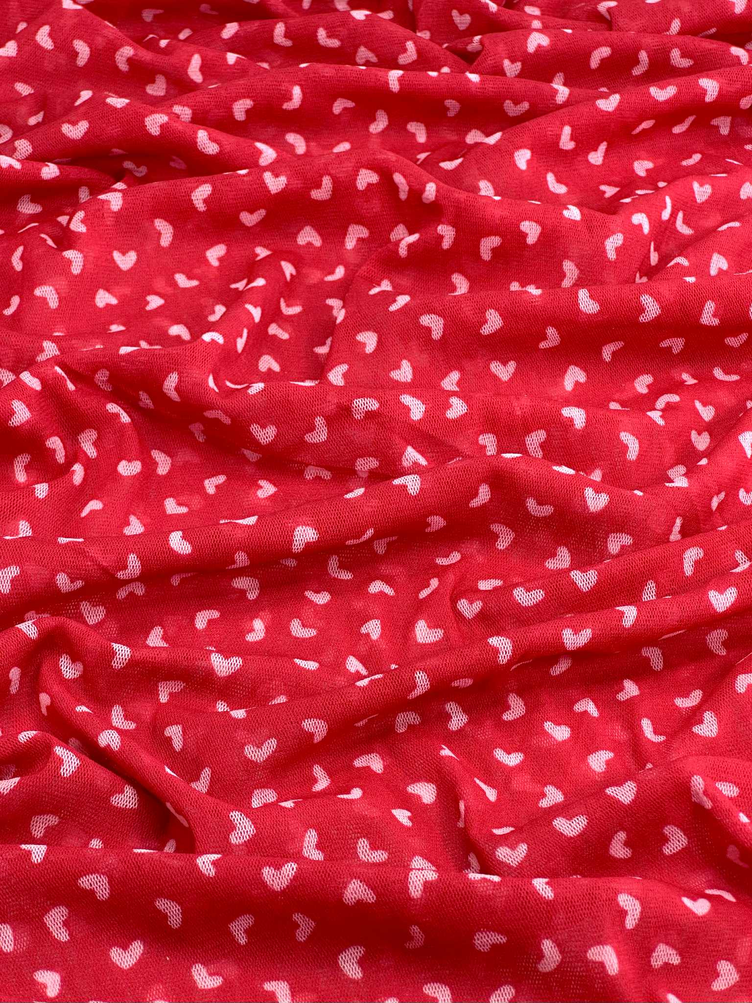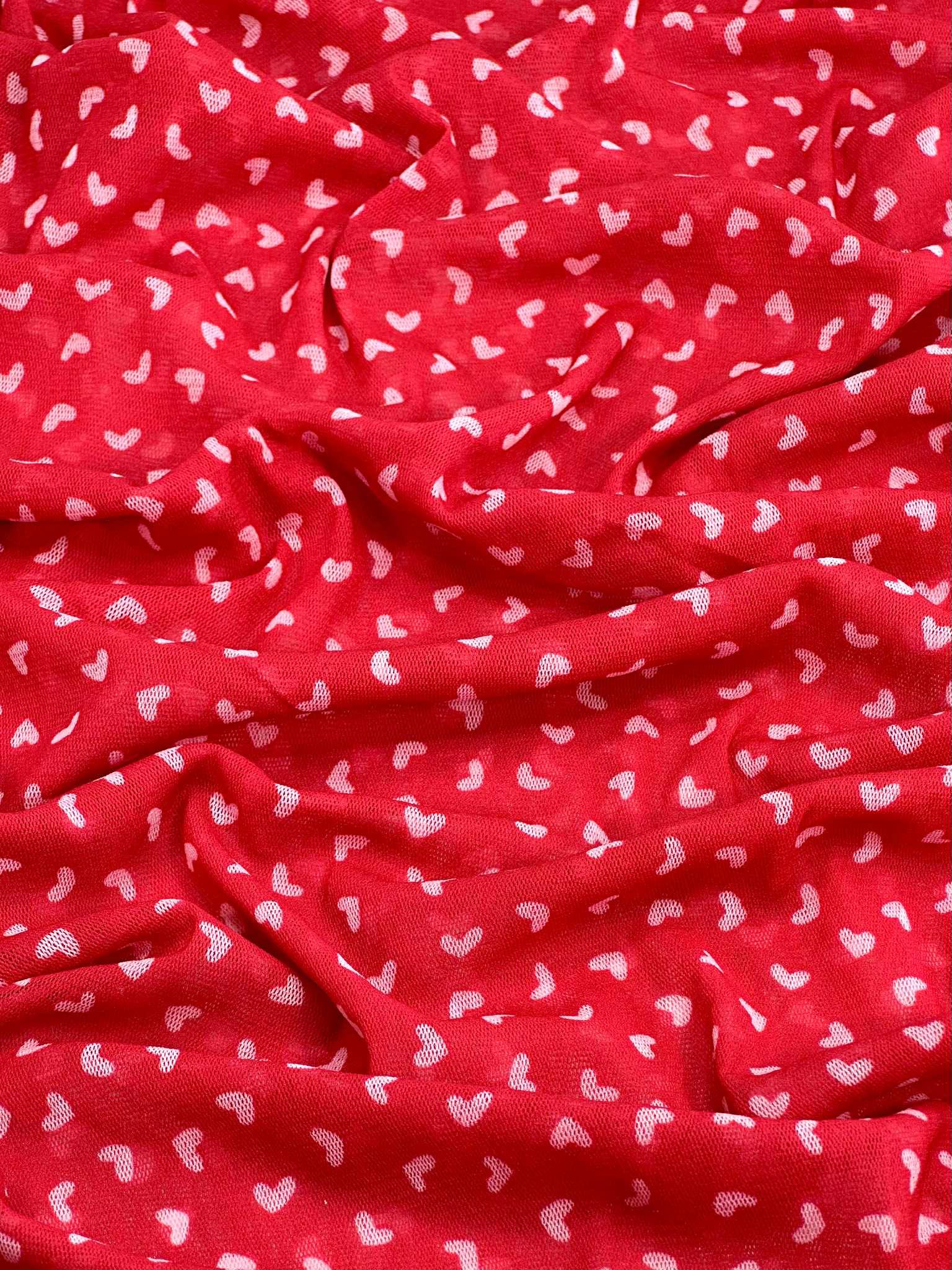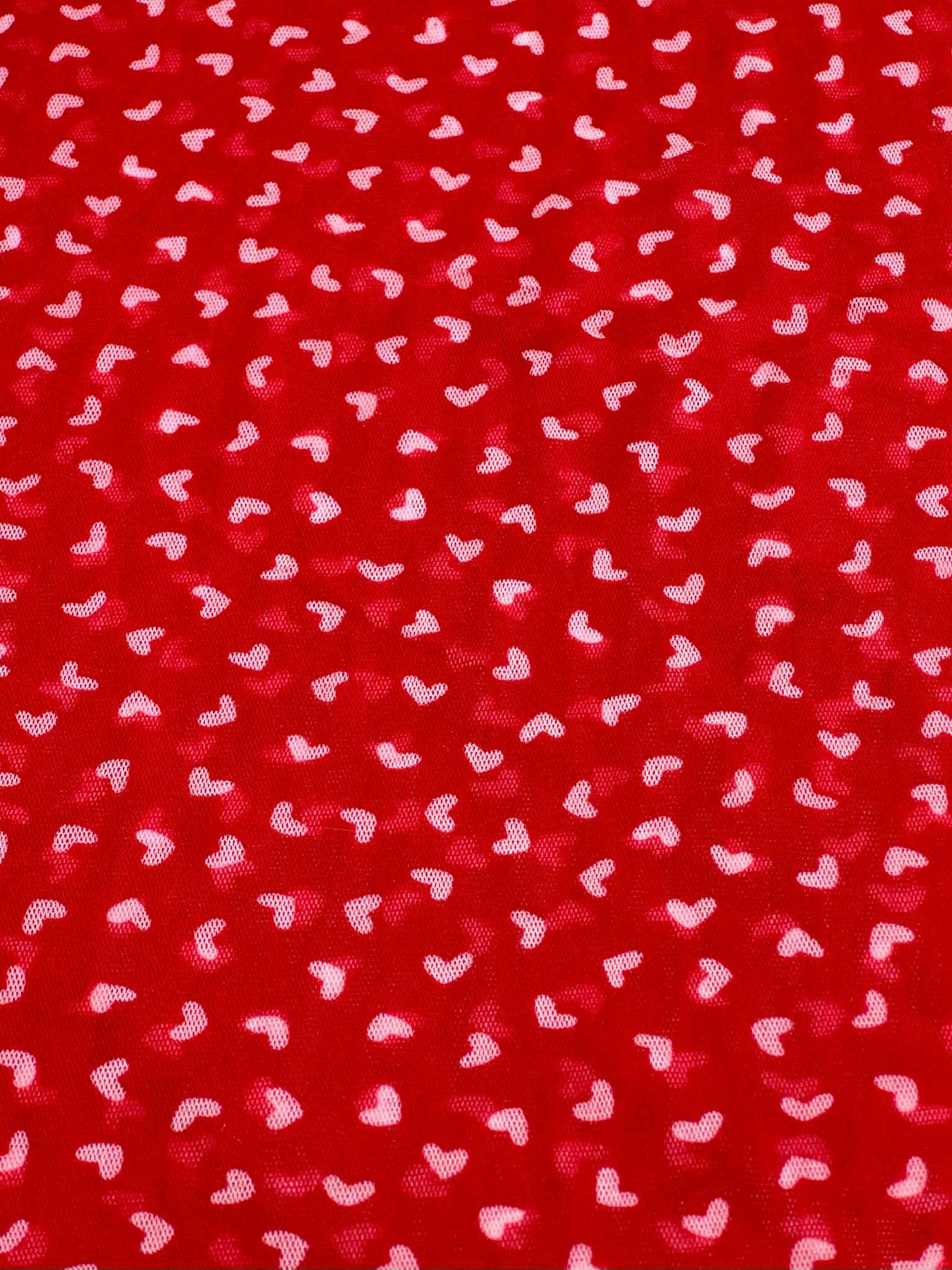 (MESH) TINY OFF WHITE HEARTS ON RED