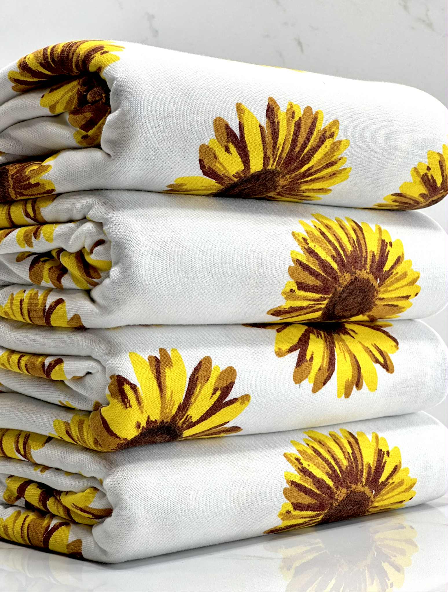 (FRENCH TERRY) BIG YELLOW FLOWERS ON OFF WHITE