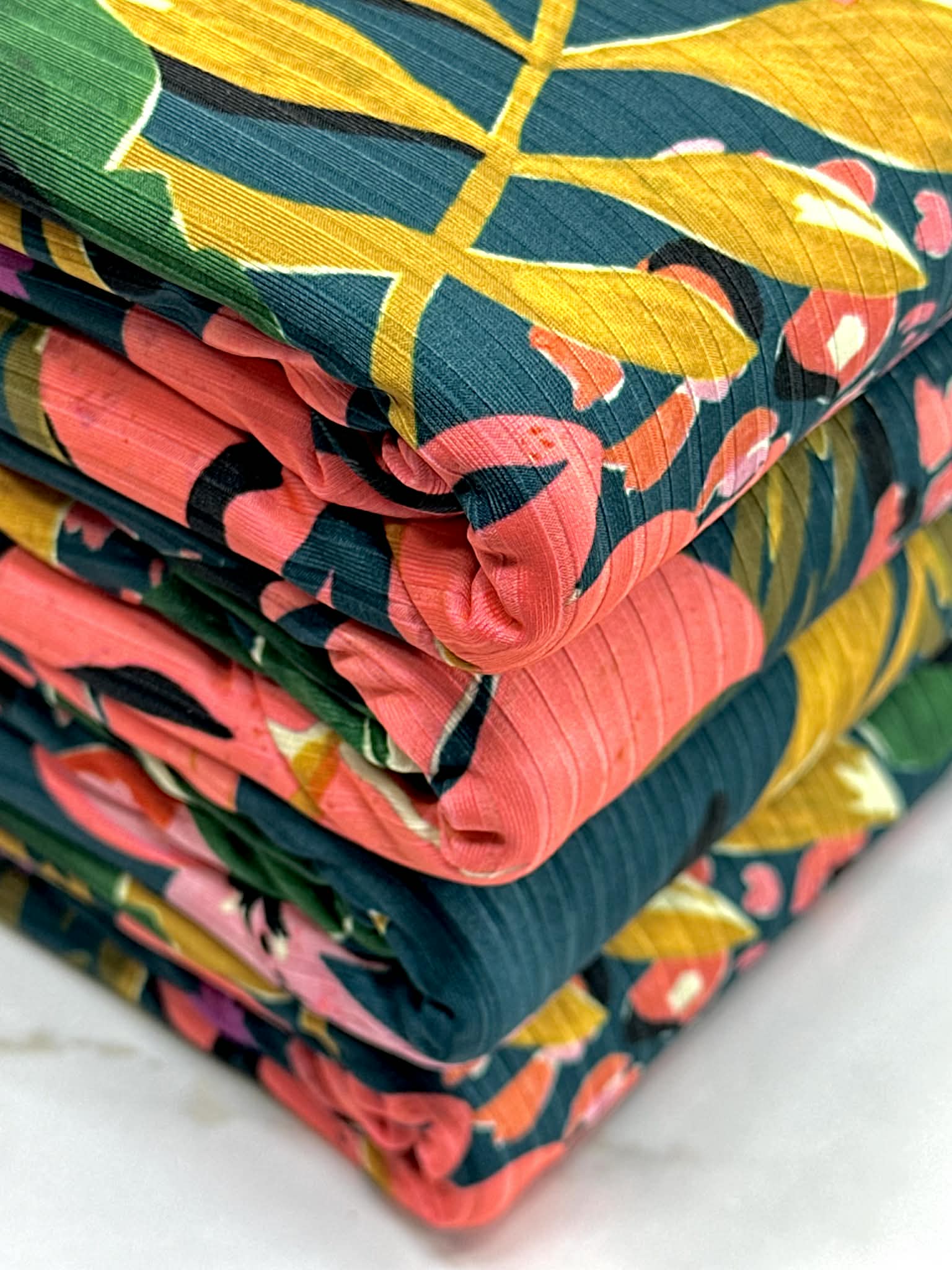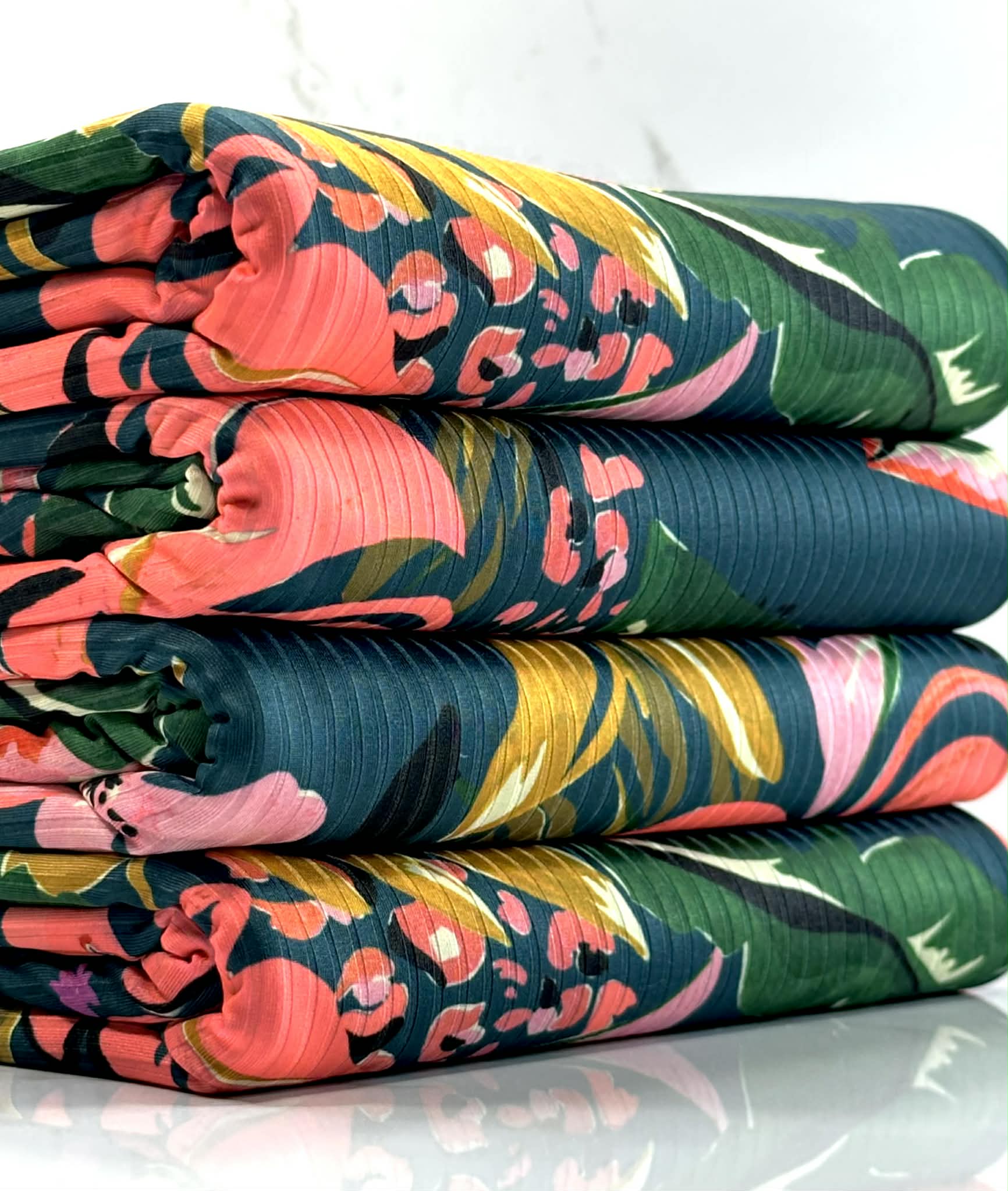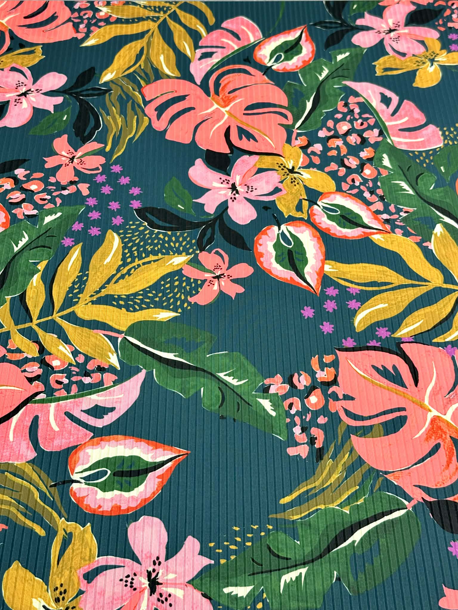 (NYLON RIB) FLORAL PATTERN ON DEEP TEAL
