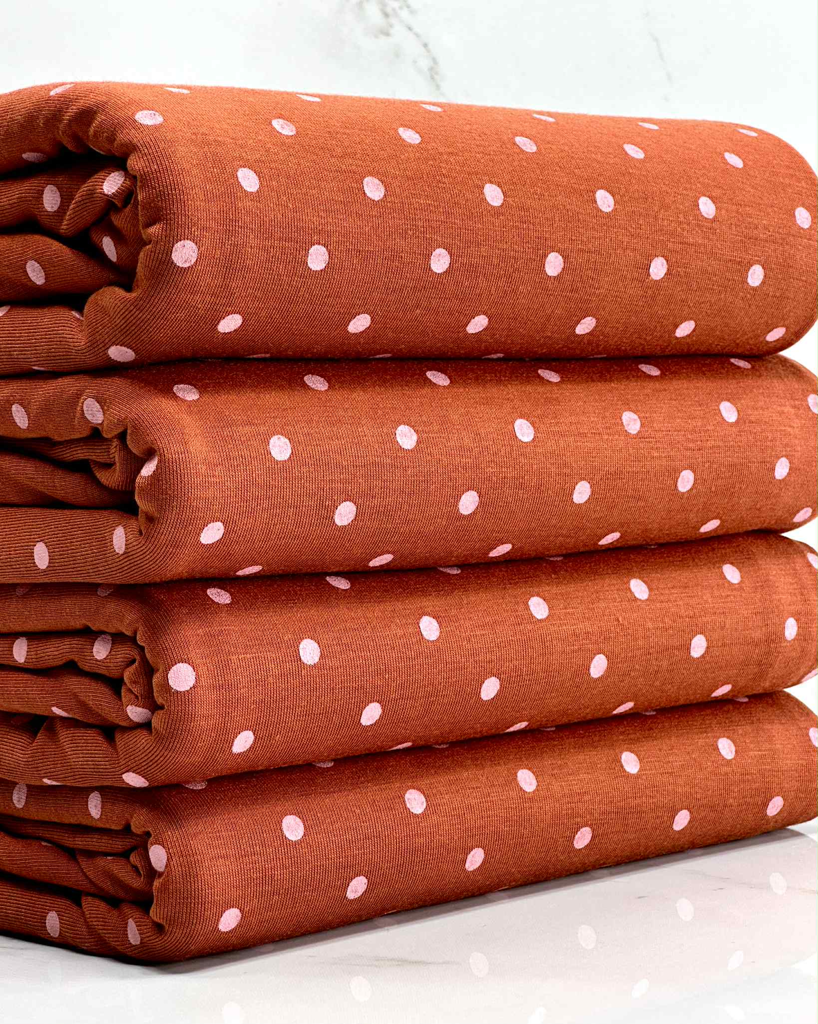 (RAYON MODAL) PINK TINY DOTS ON RUST