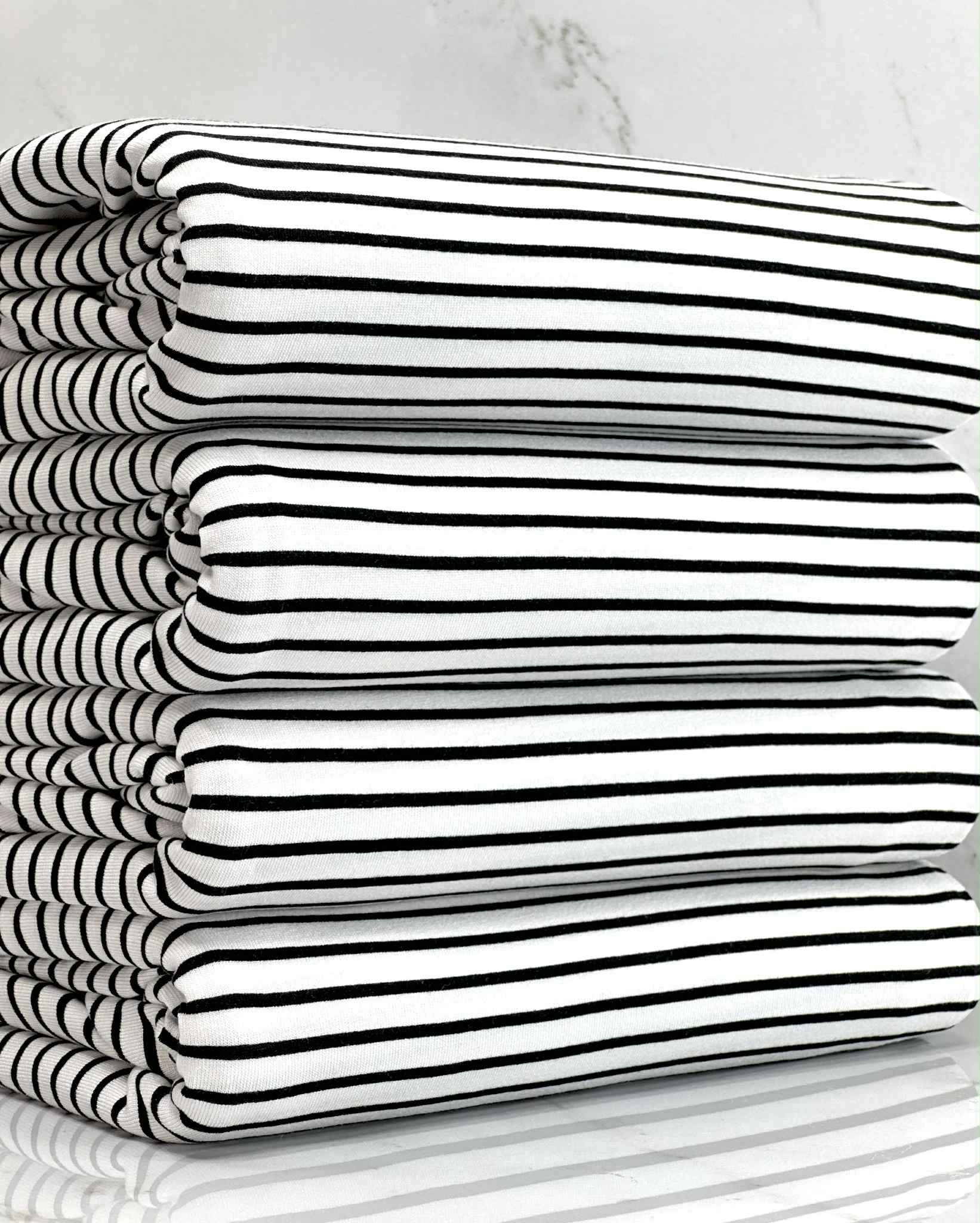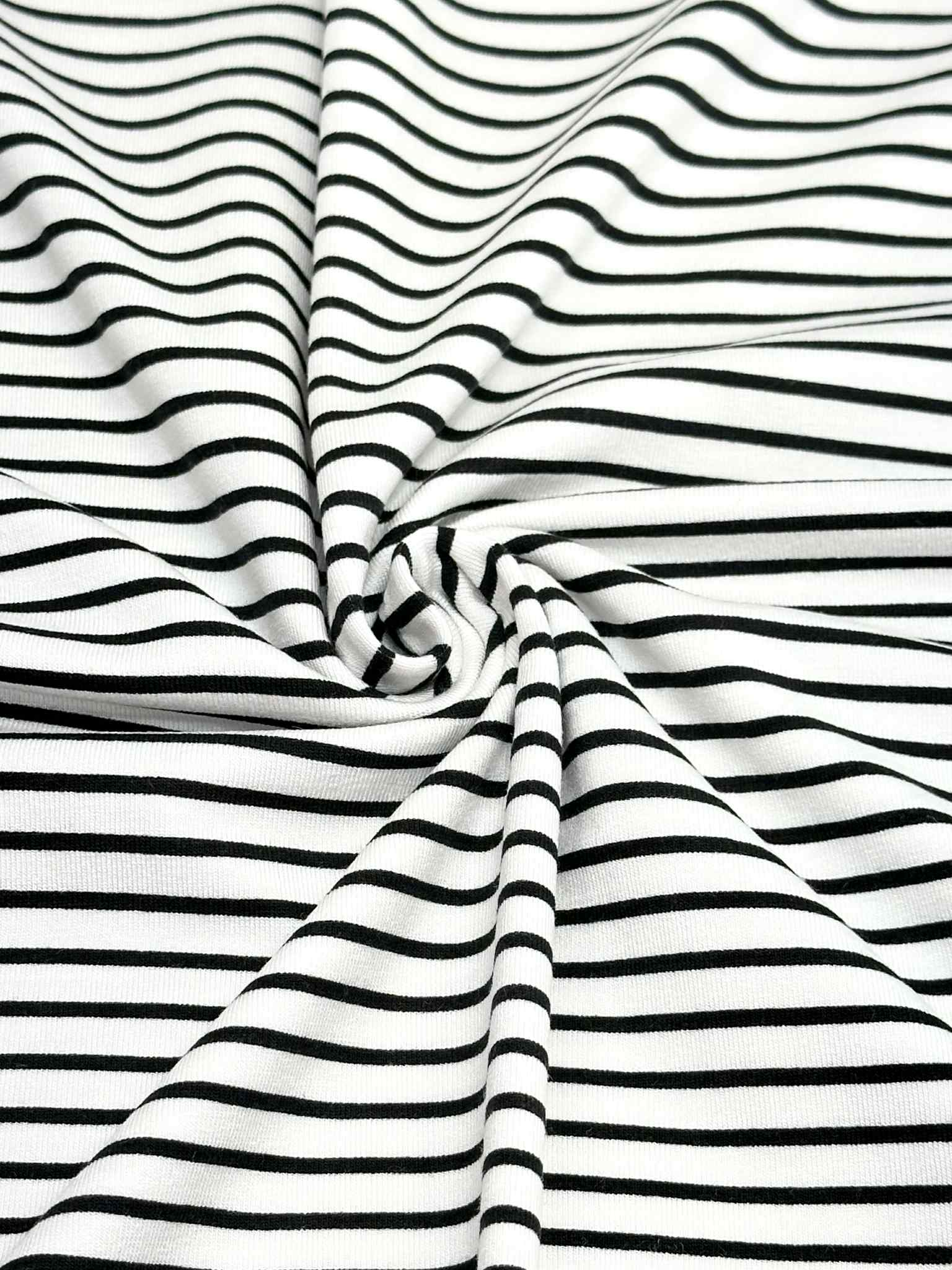 (RAYON MODAL) BLACK THIN STRIPES ON OFF WHITE
