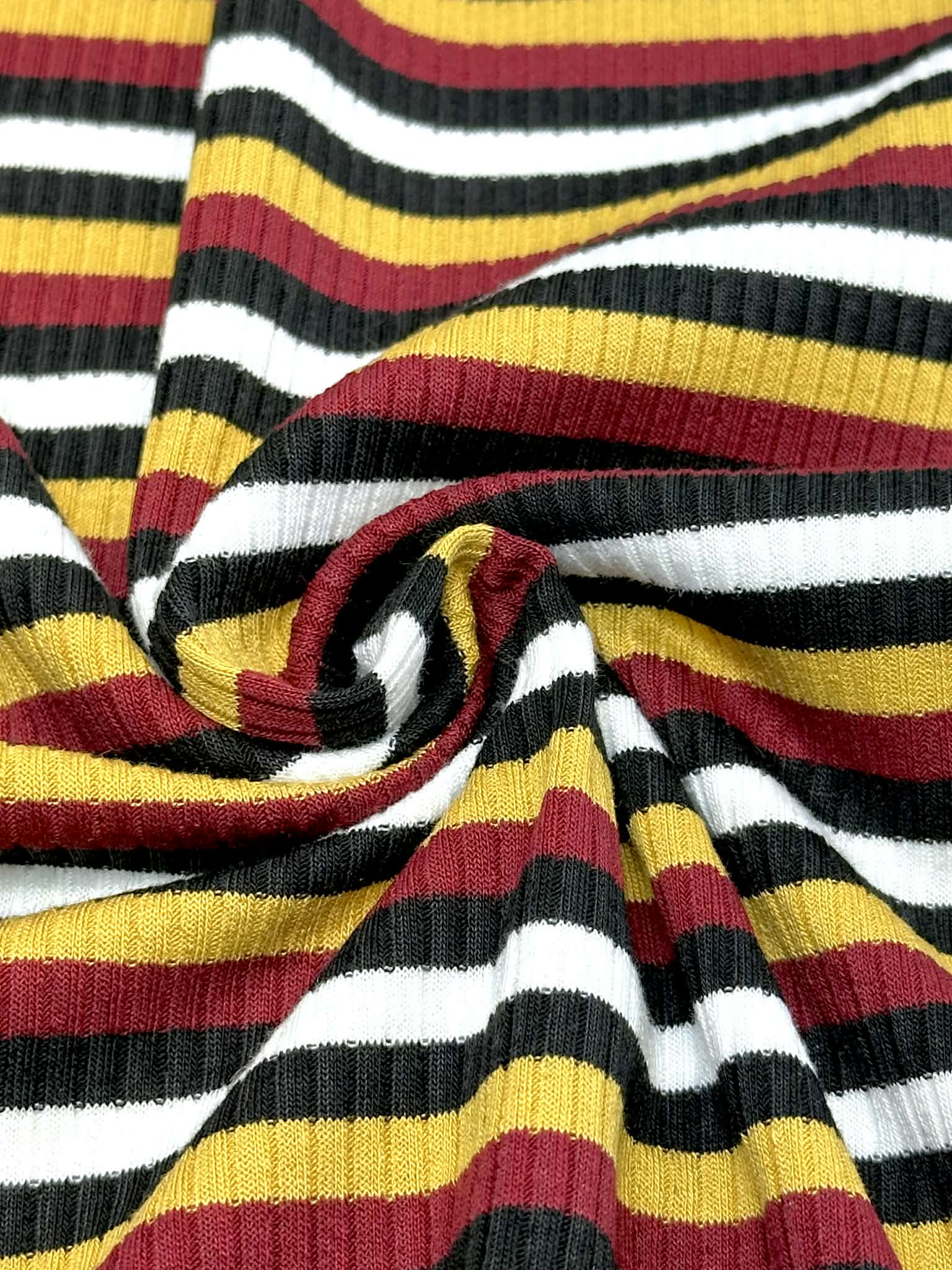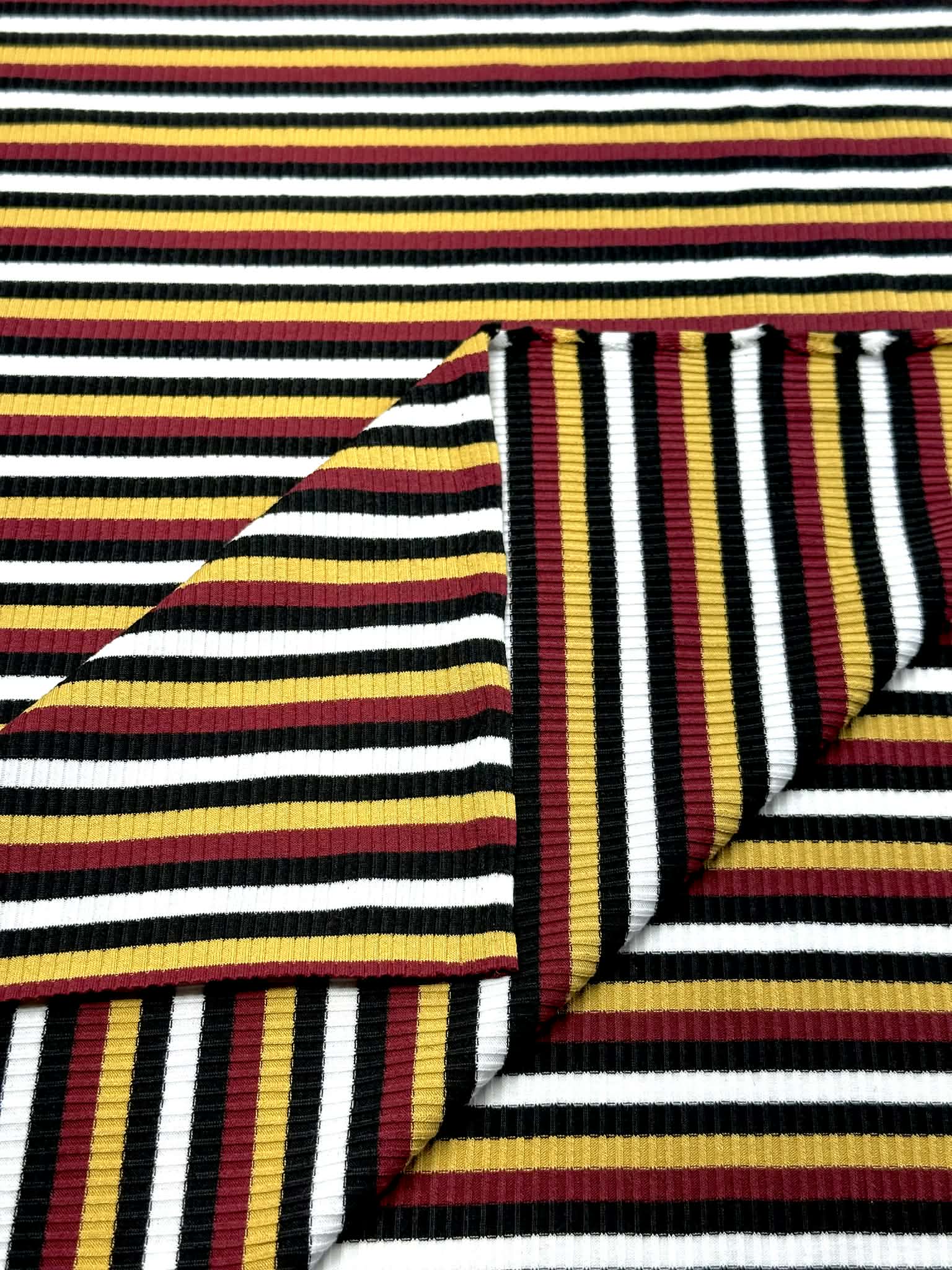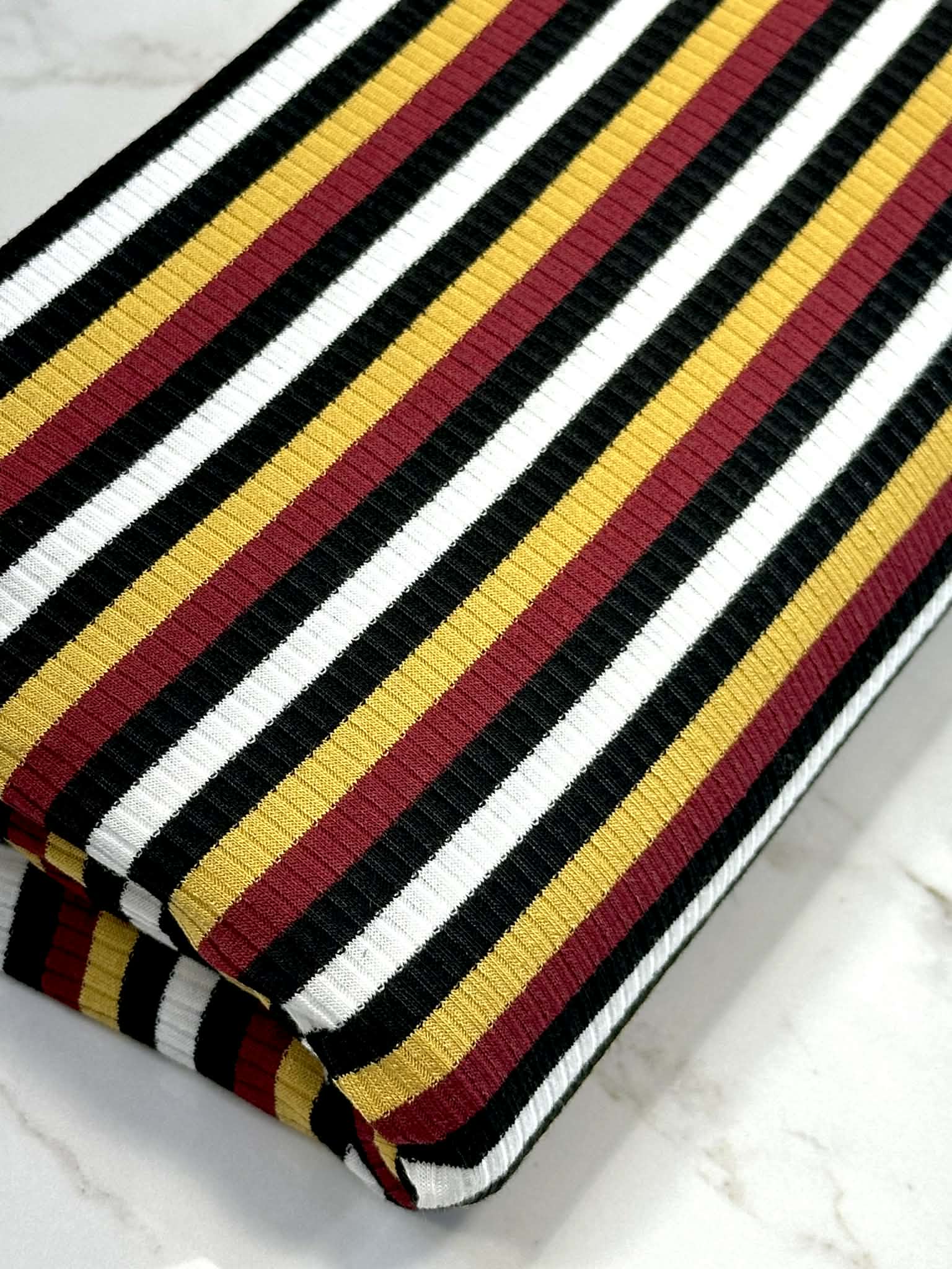 (RIB) BLACK, BURGUNDY, YELLOW, AND OFF WHITE STRIPES