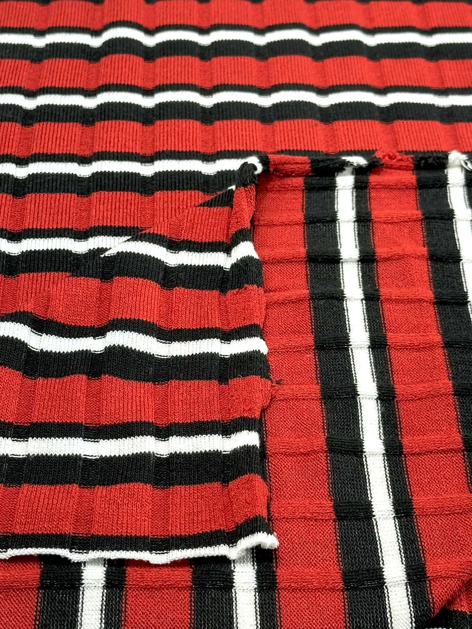 (SWEATER RIB) BLACK AND WHITE STRIPES ON RED