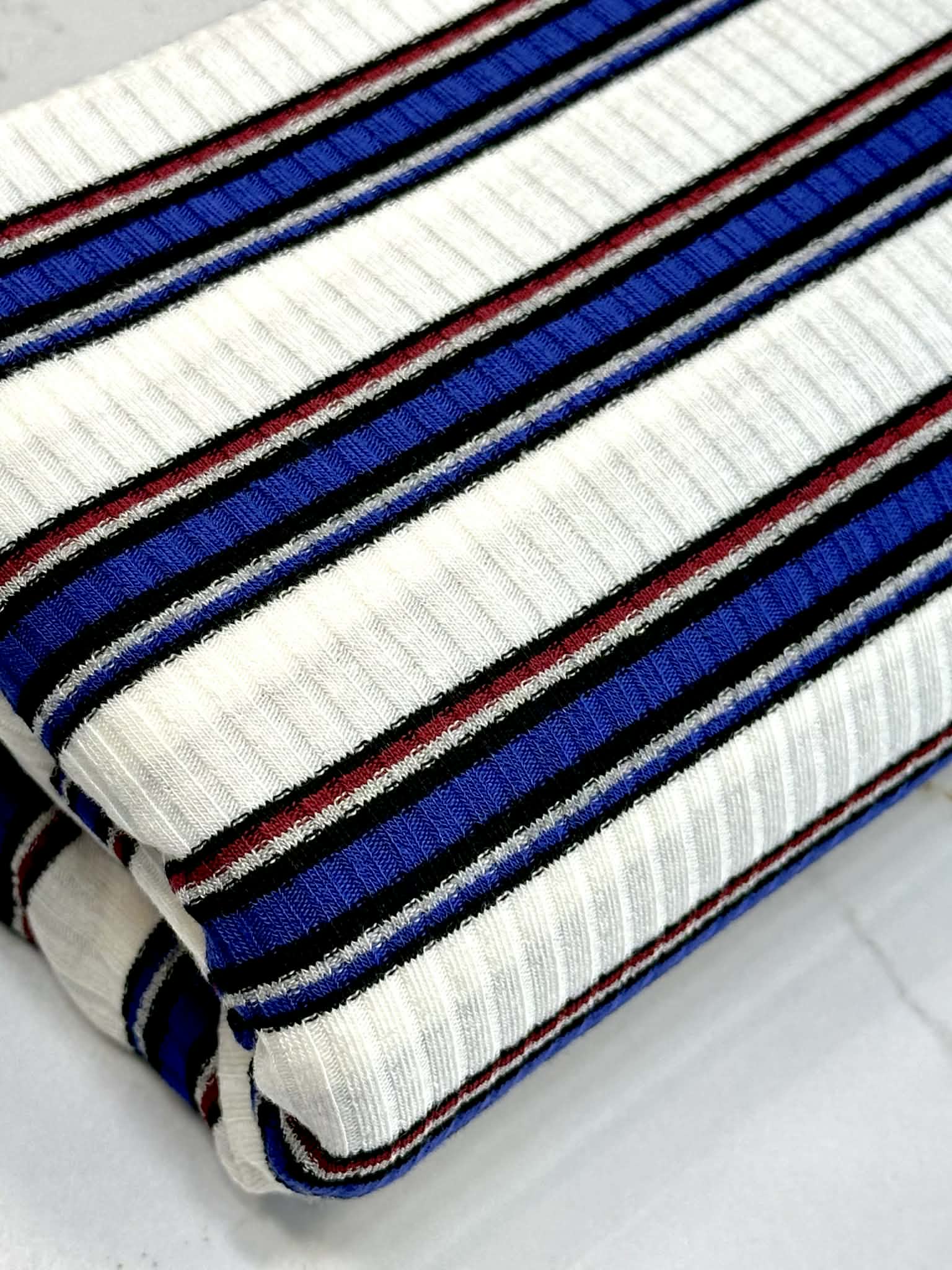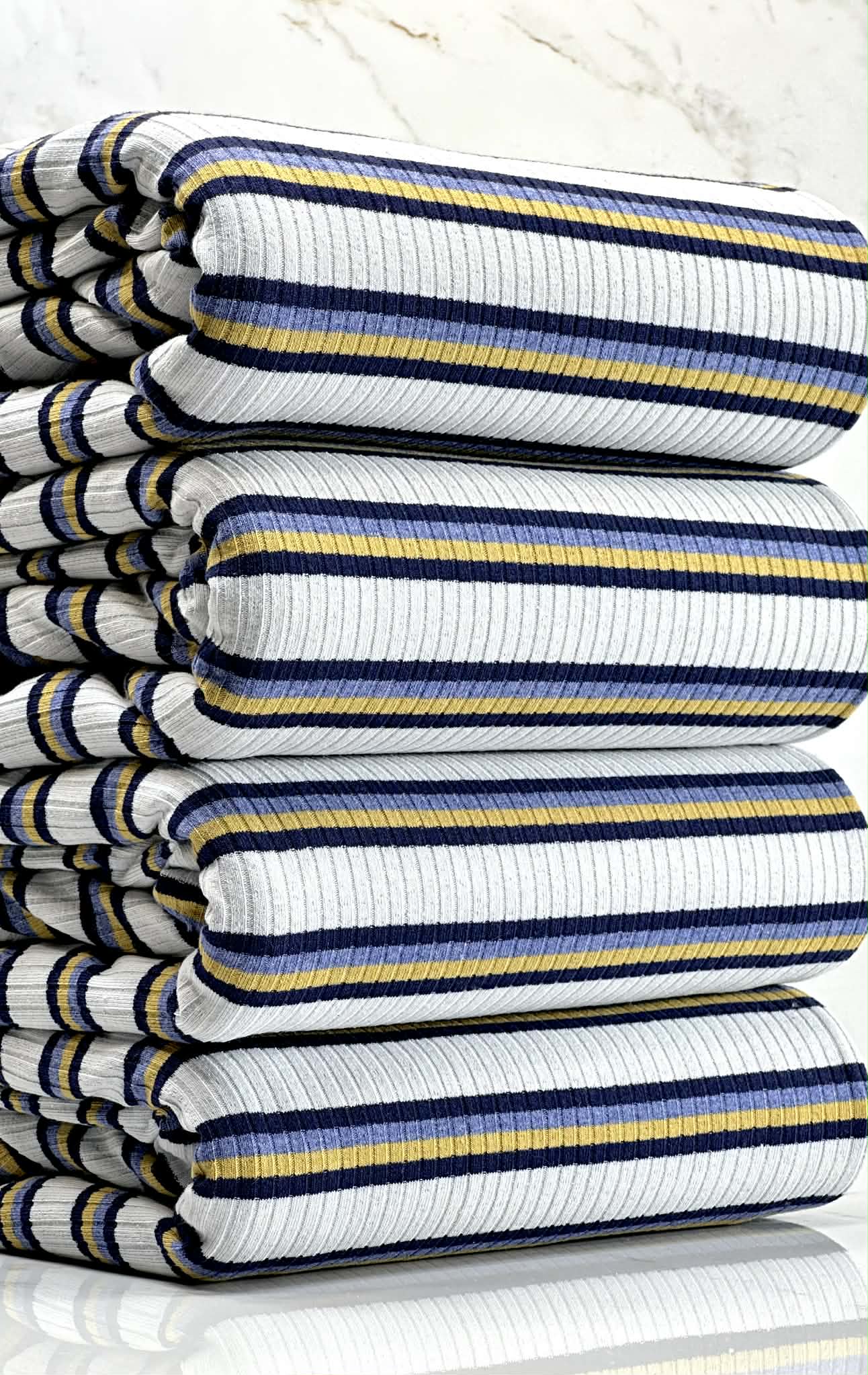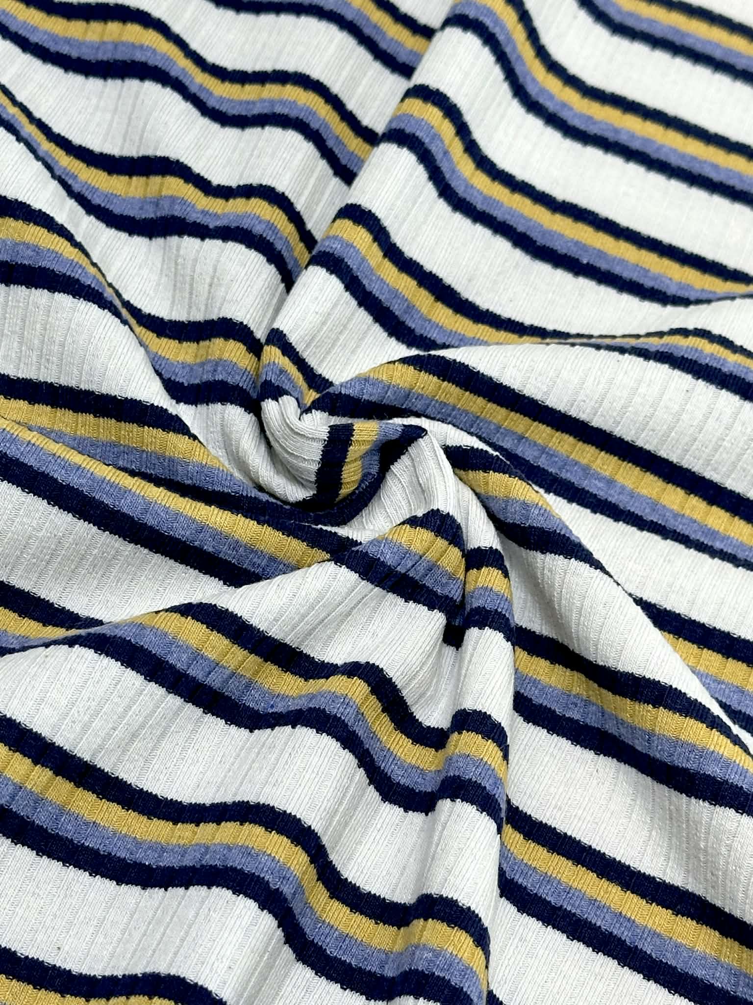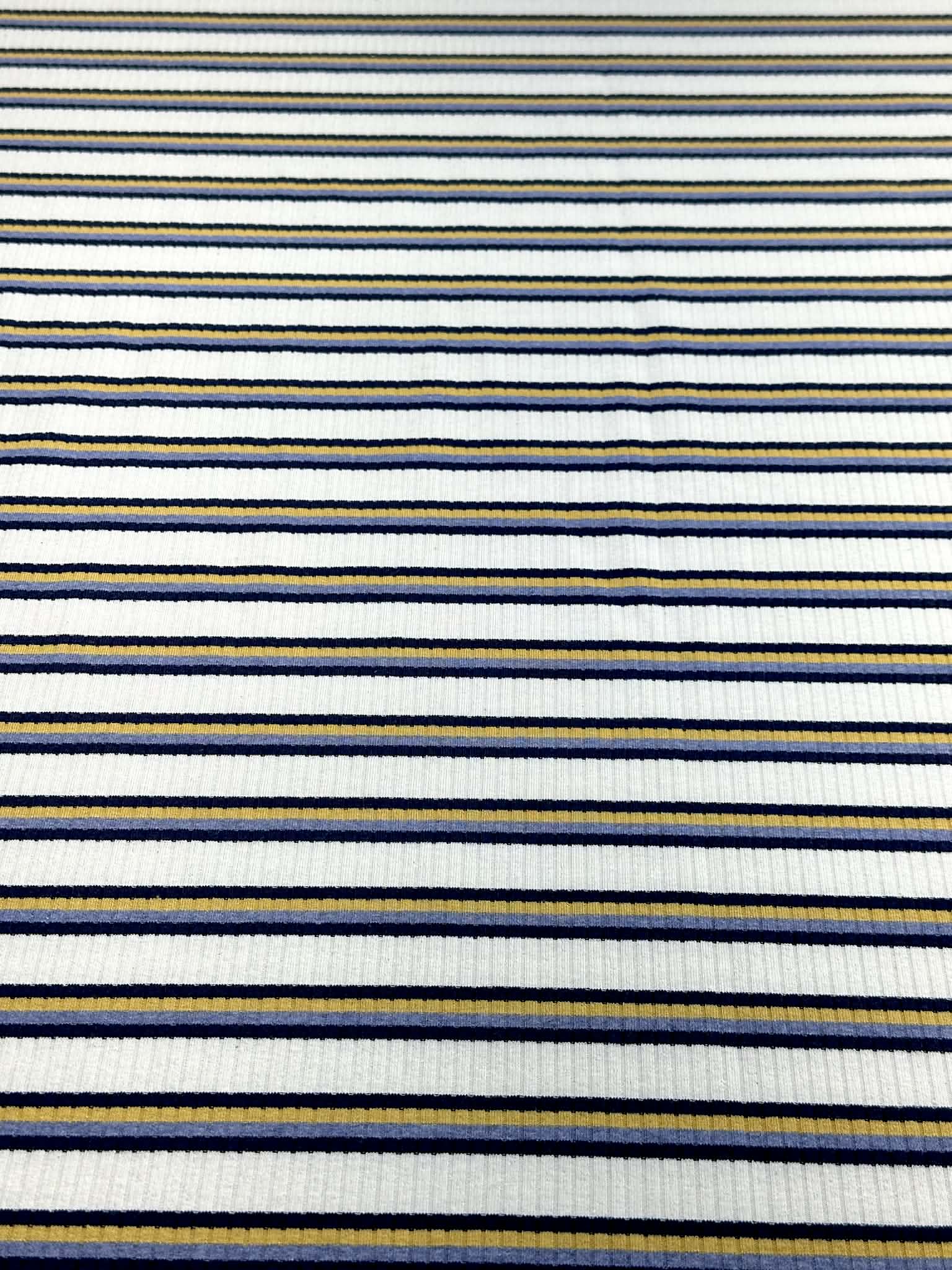 (COTTON RIB) NAVY, YELLOW, AND BLUE STRIPES ON OFF WHITE