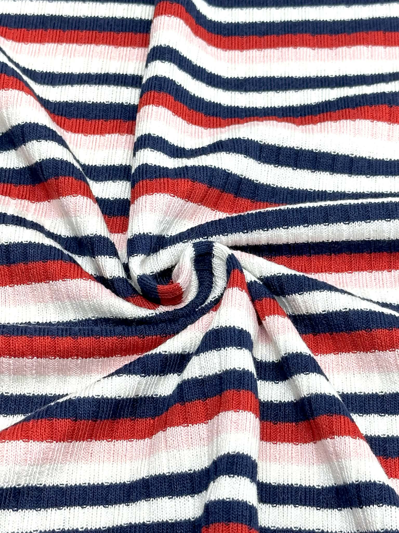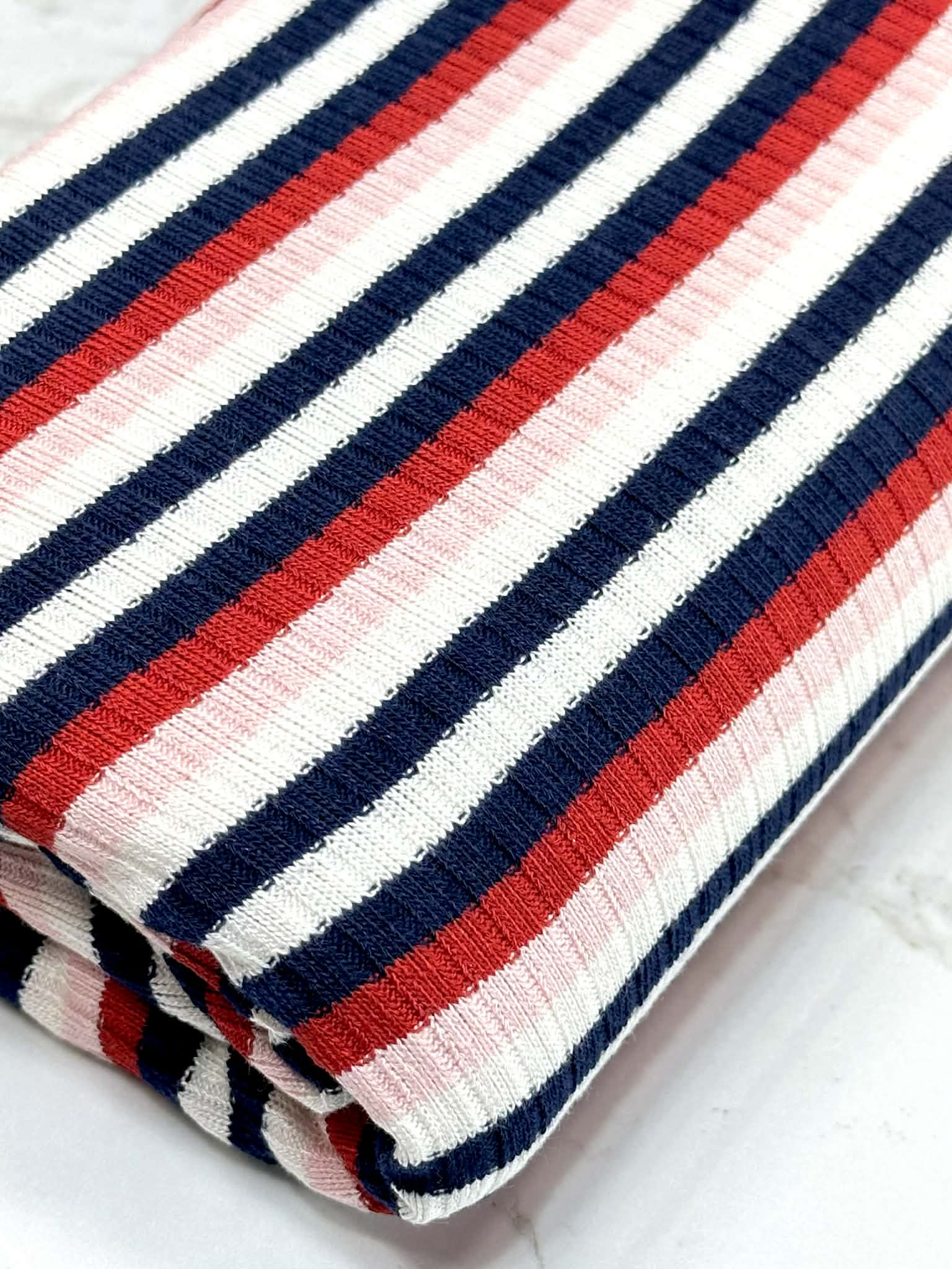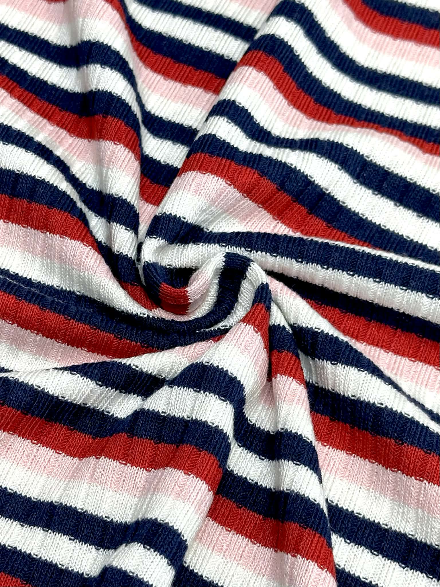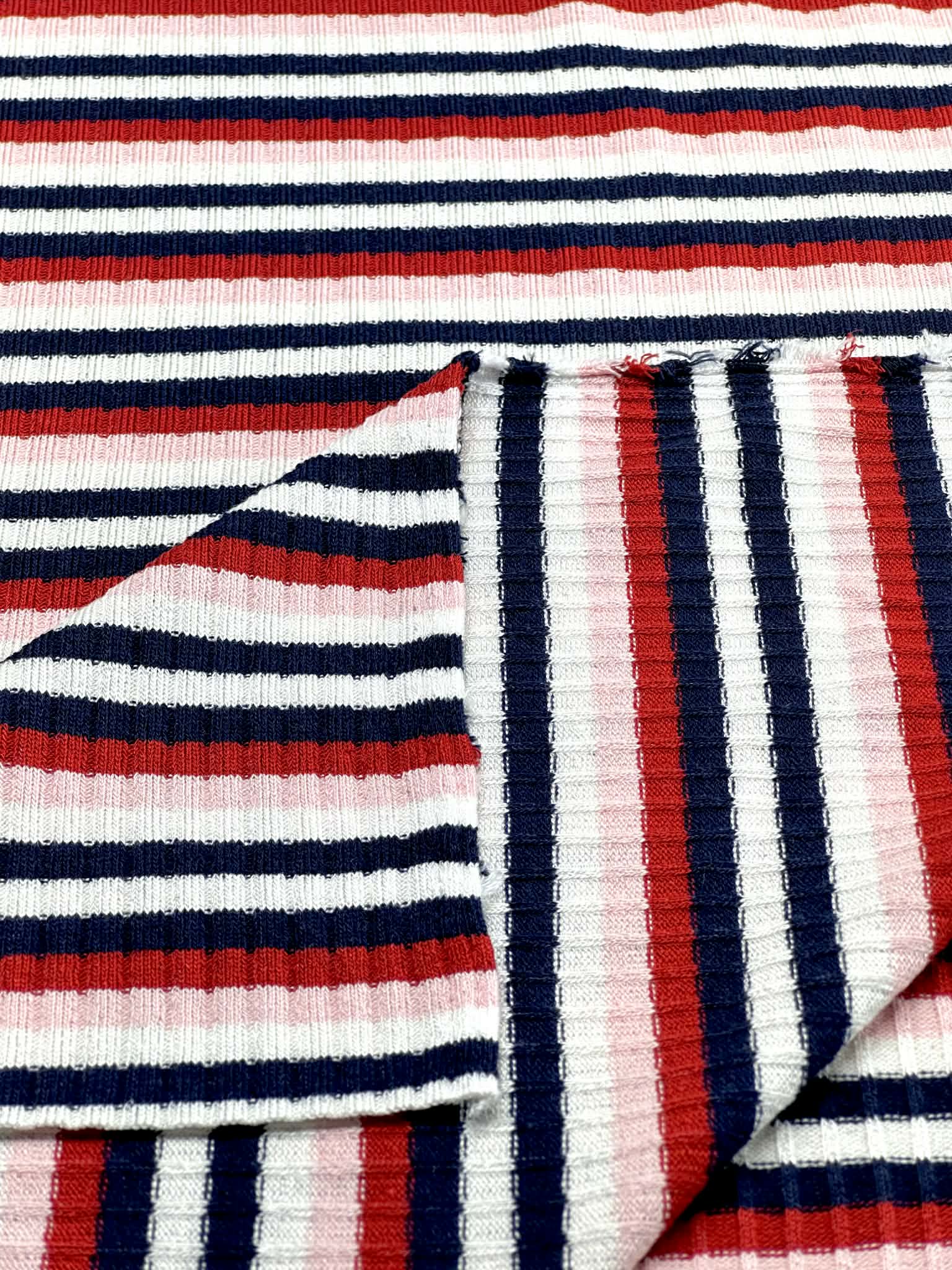 (SWEATER RIB) NAVY, RED, PINK, AND OFF WHITE STRIPES