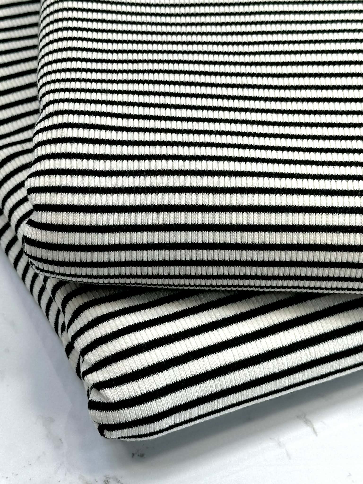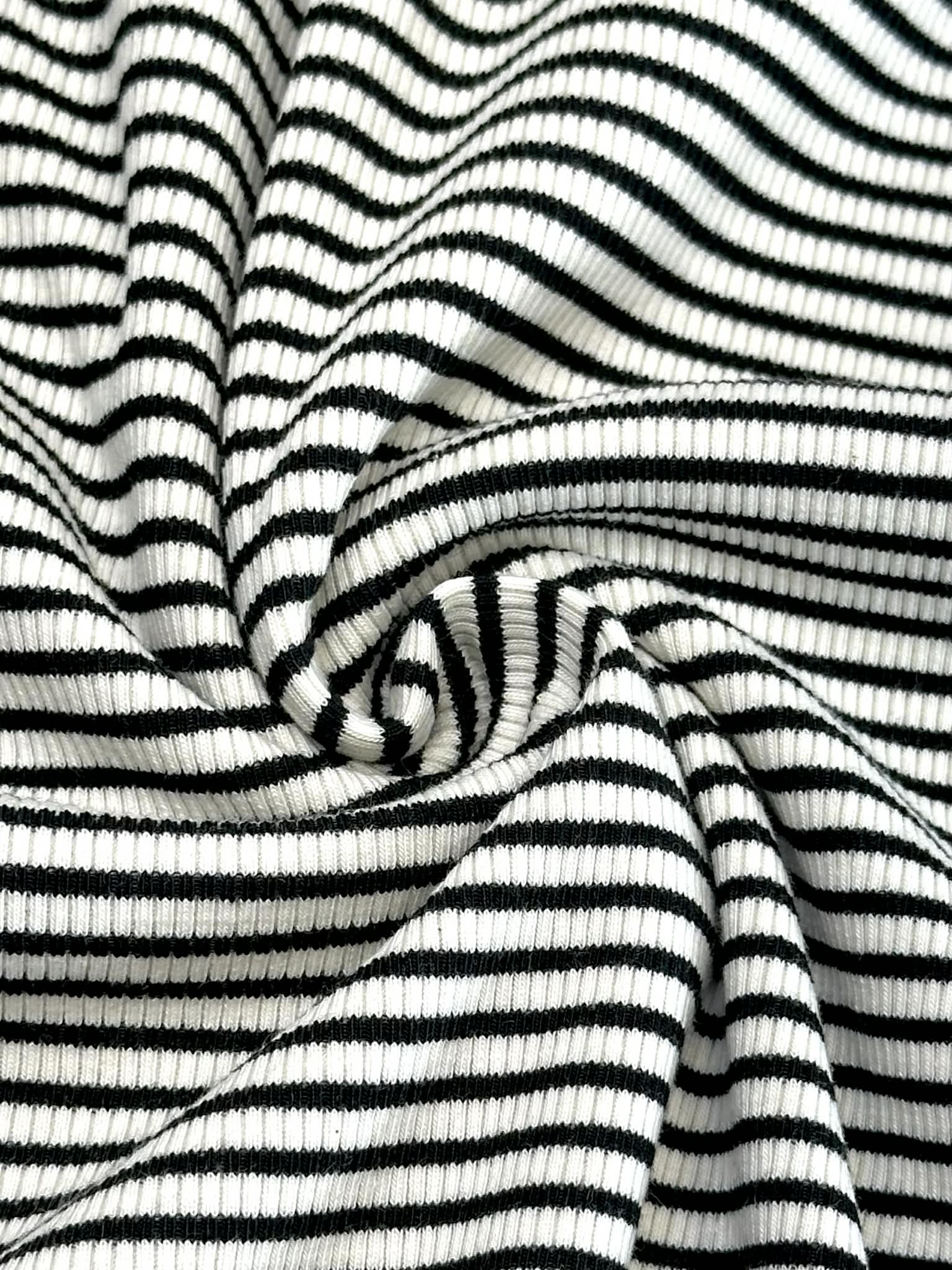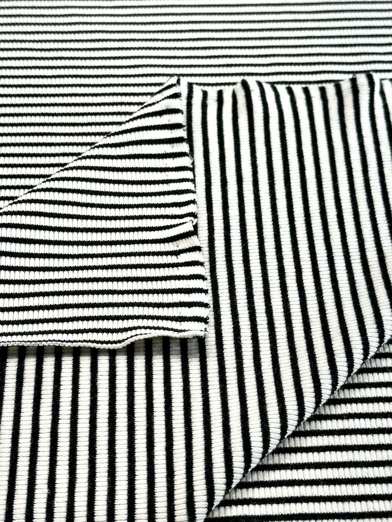 (RIB) BLACK AND OFF WHITE THINNER STRIPES