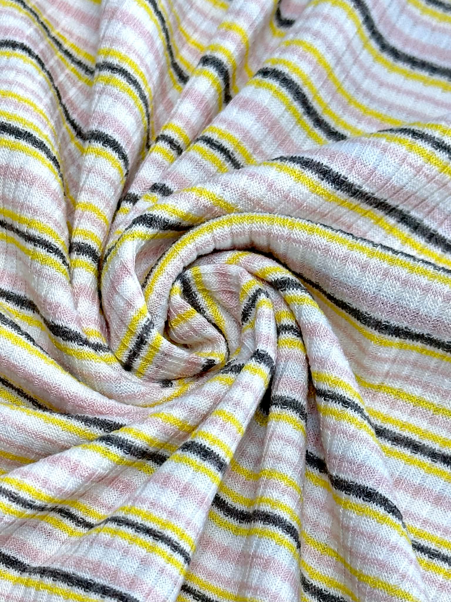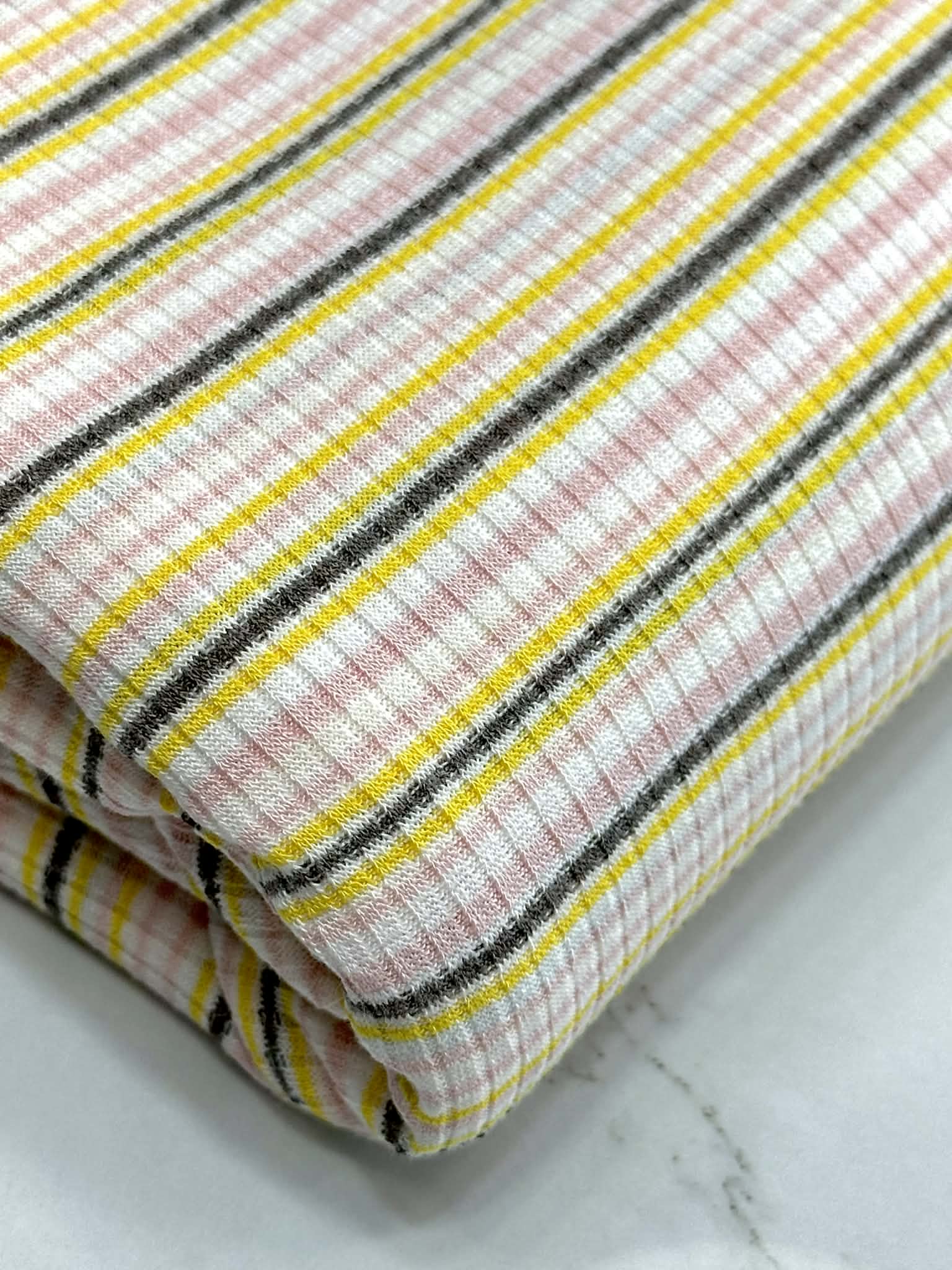 (RIB) YELLOW, PINK, AND GRAY STRIPES ON OFF WHITE
