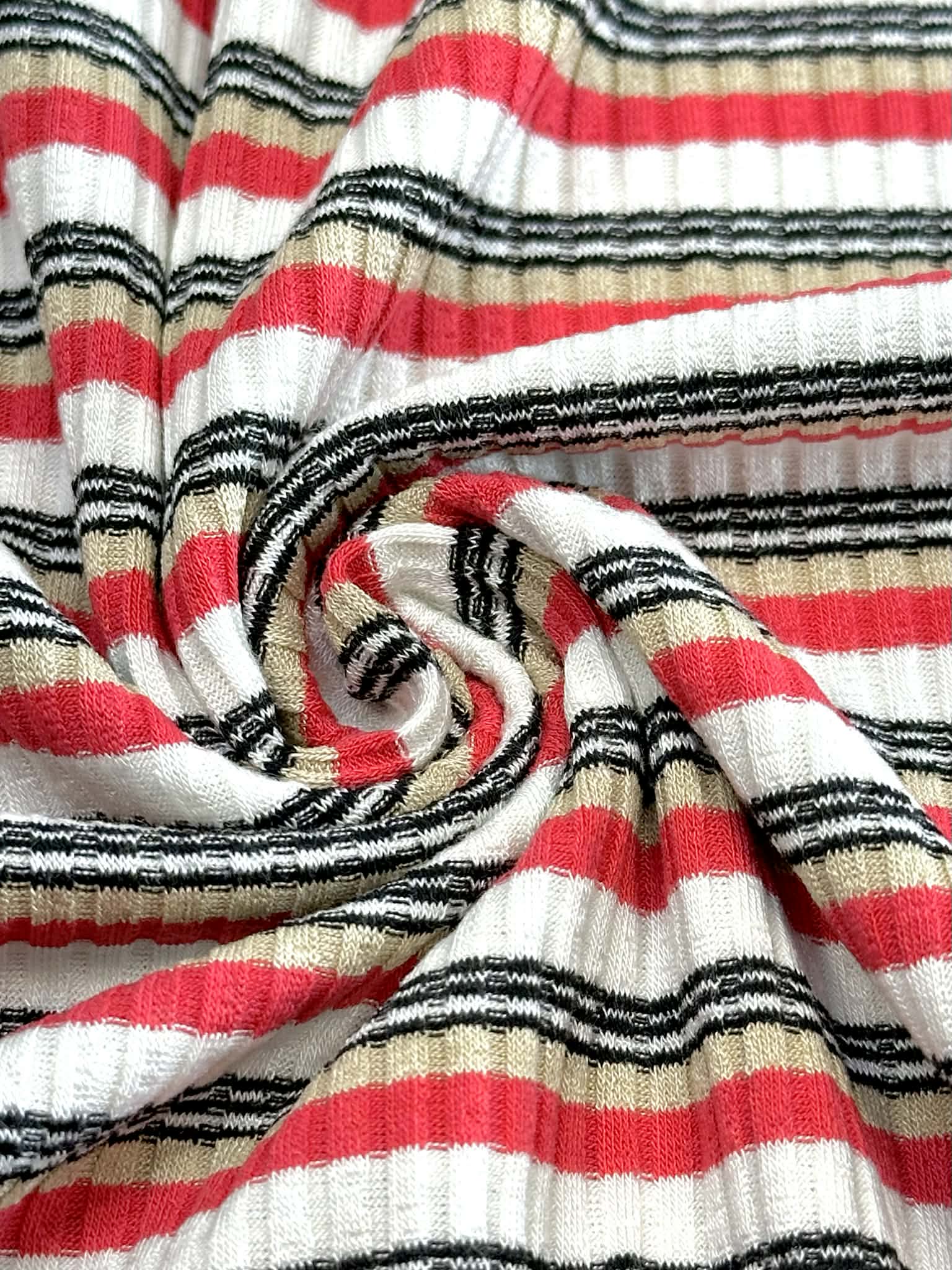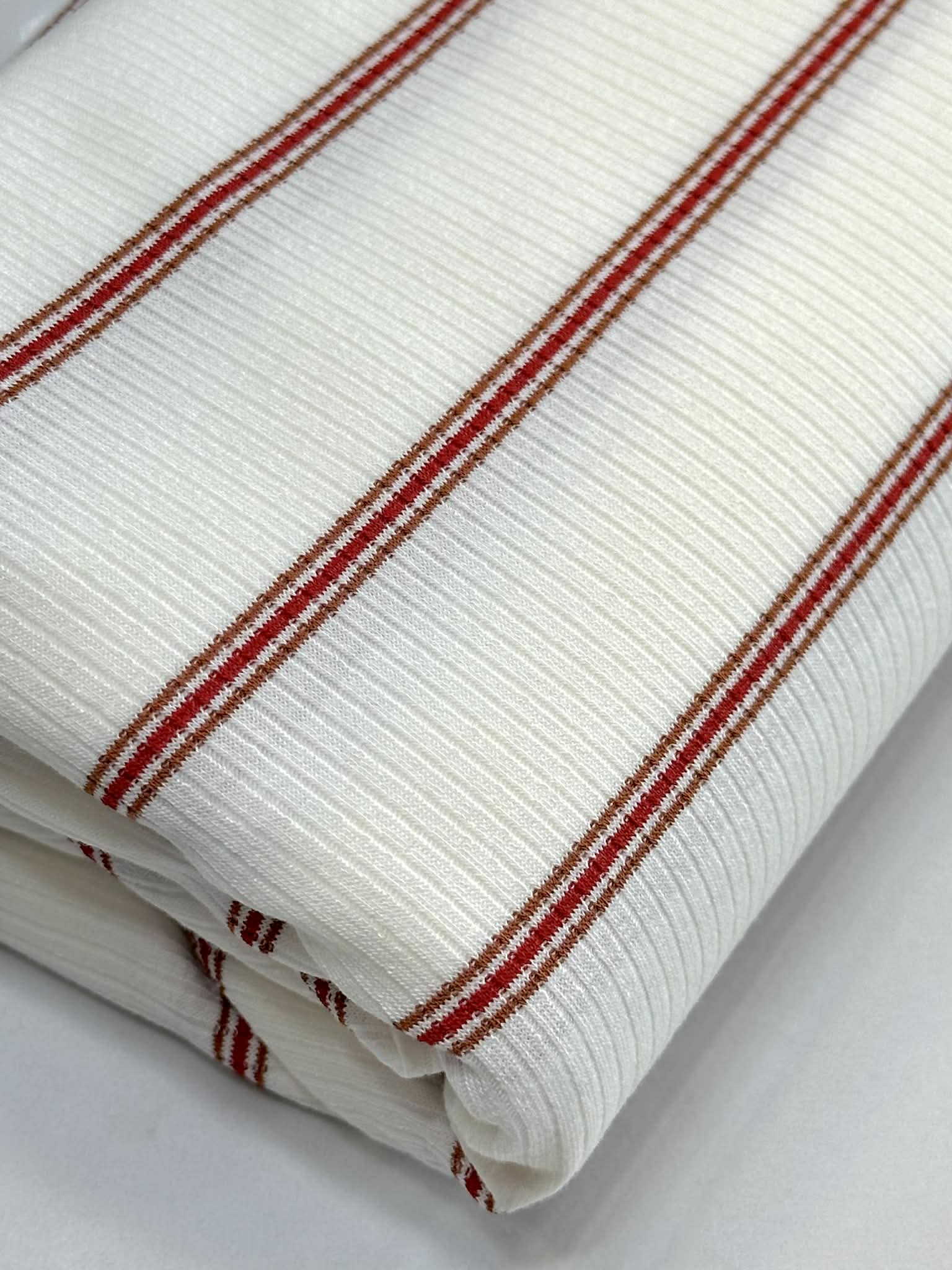 (RIB) TAN, RED, AND BLACK STRIPES ON OFF WHITE