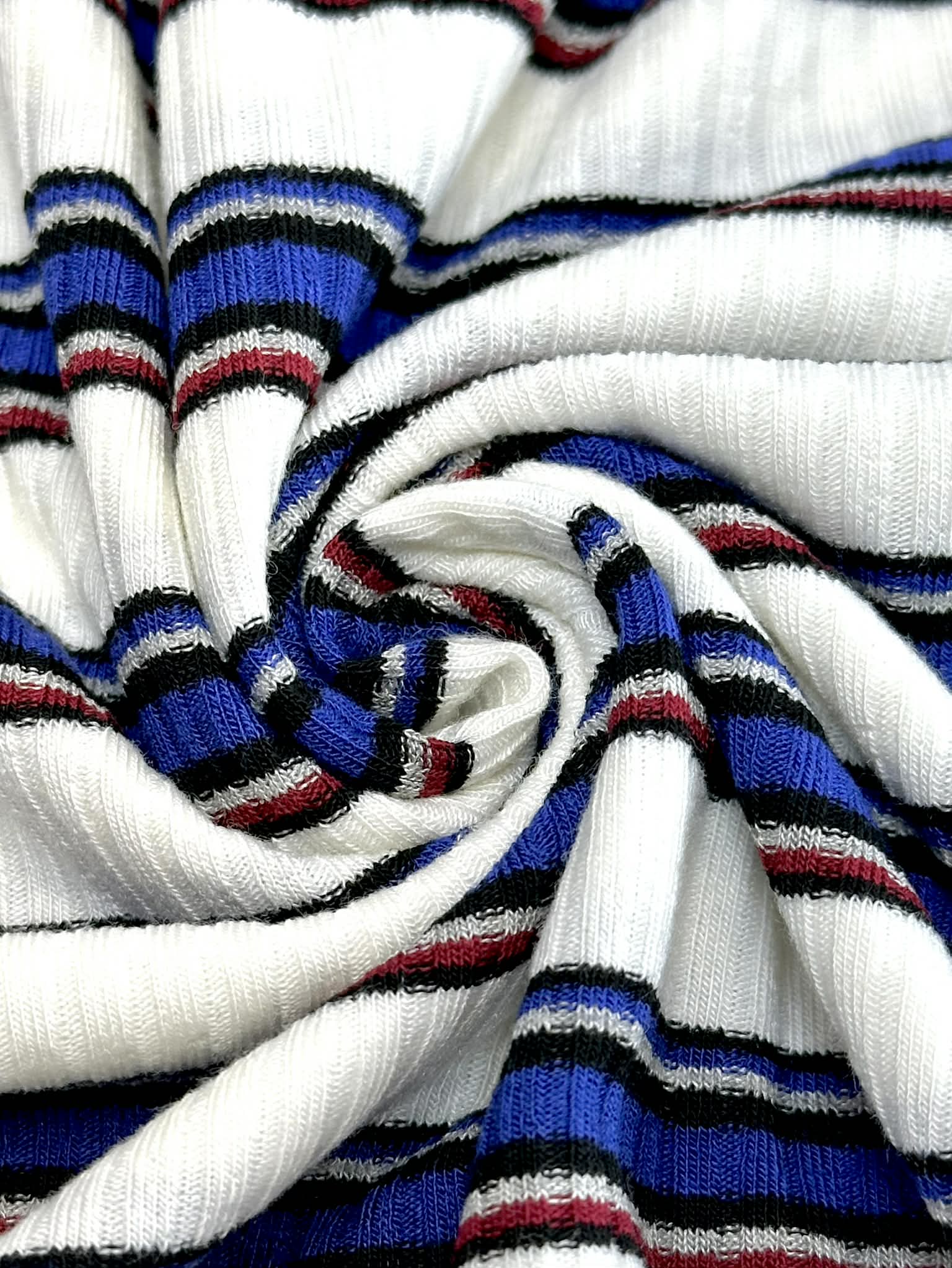 (RIB) ROYAL, RED AND GRAY STRIPES ON OFF WHITE