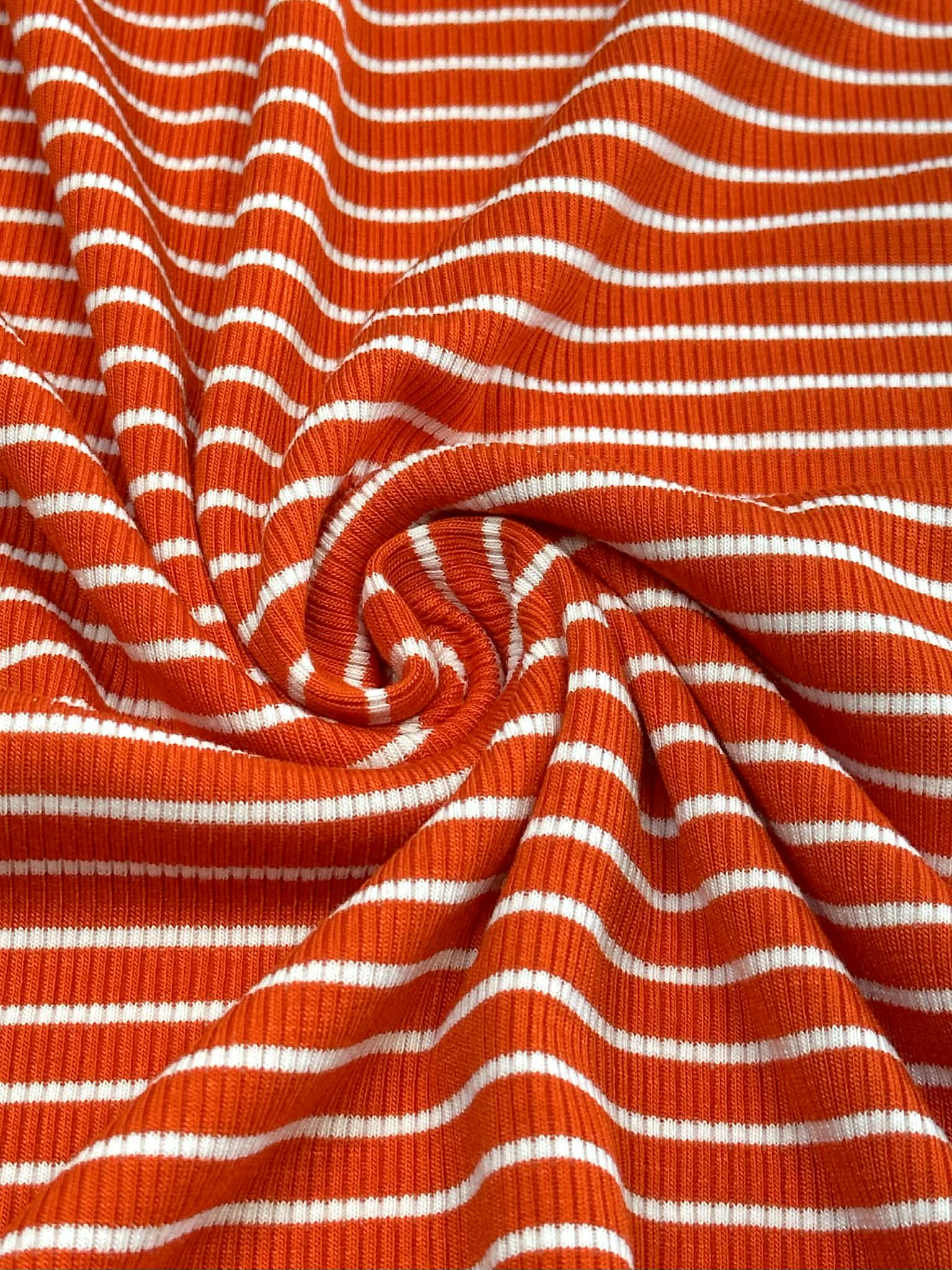 (RIB) RED AND ORANGE THIN STRIPES ON IVORY