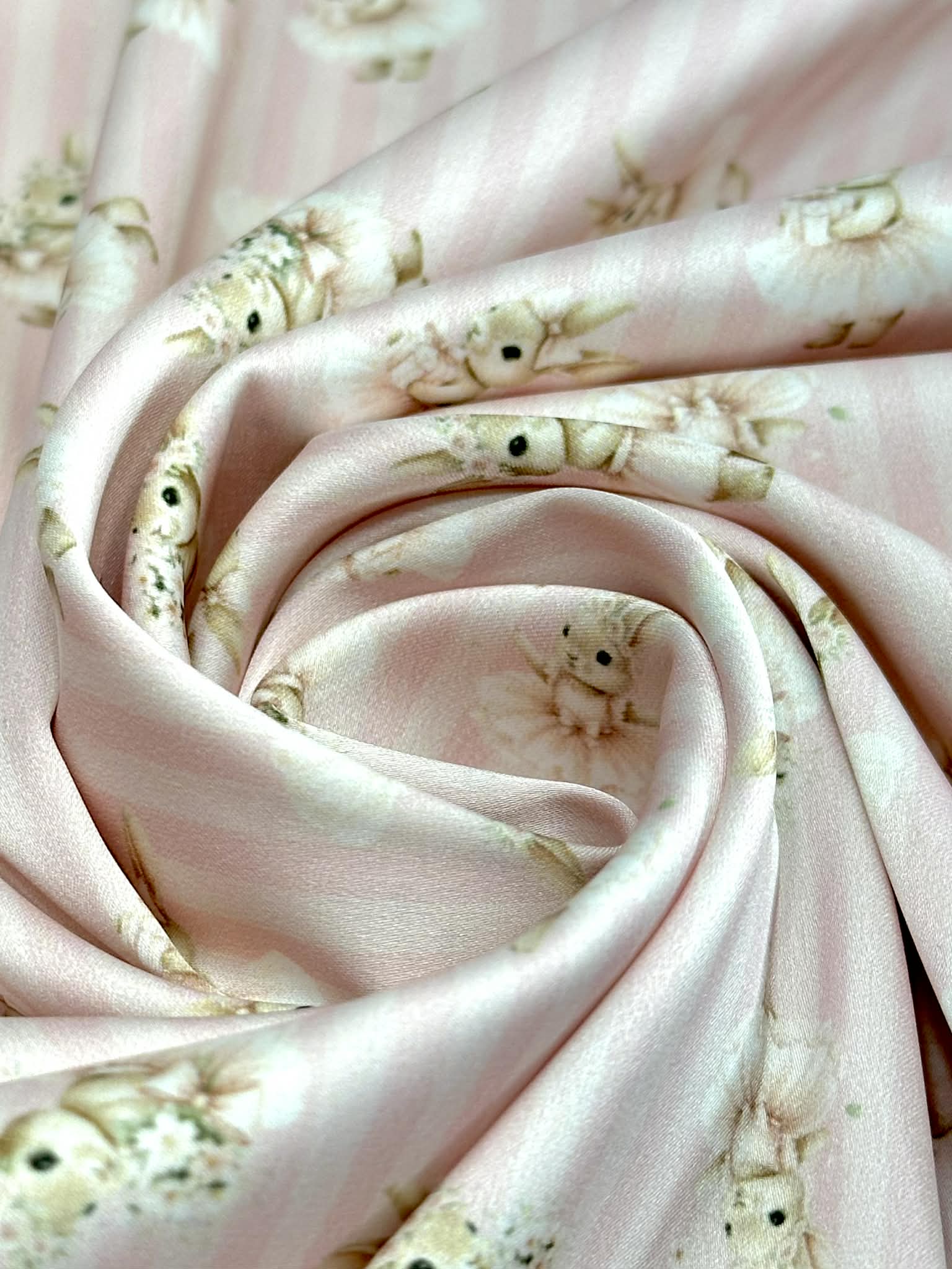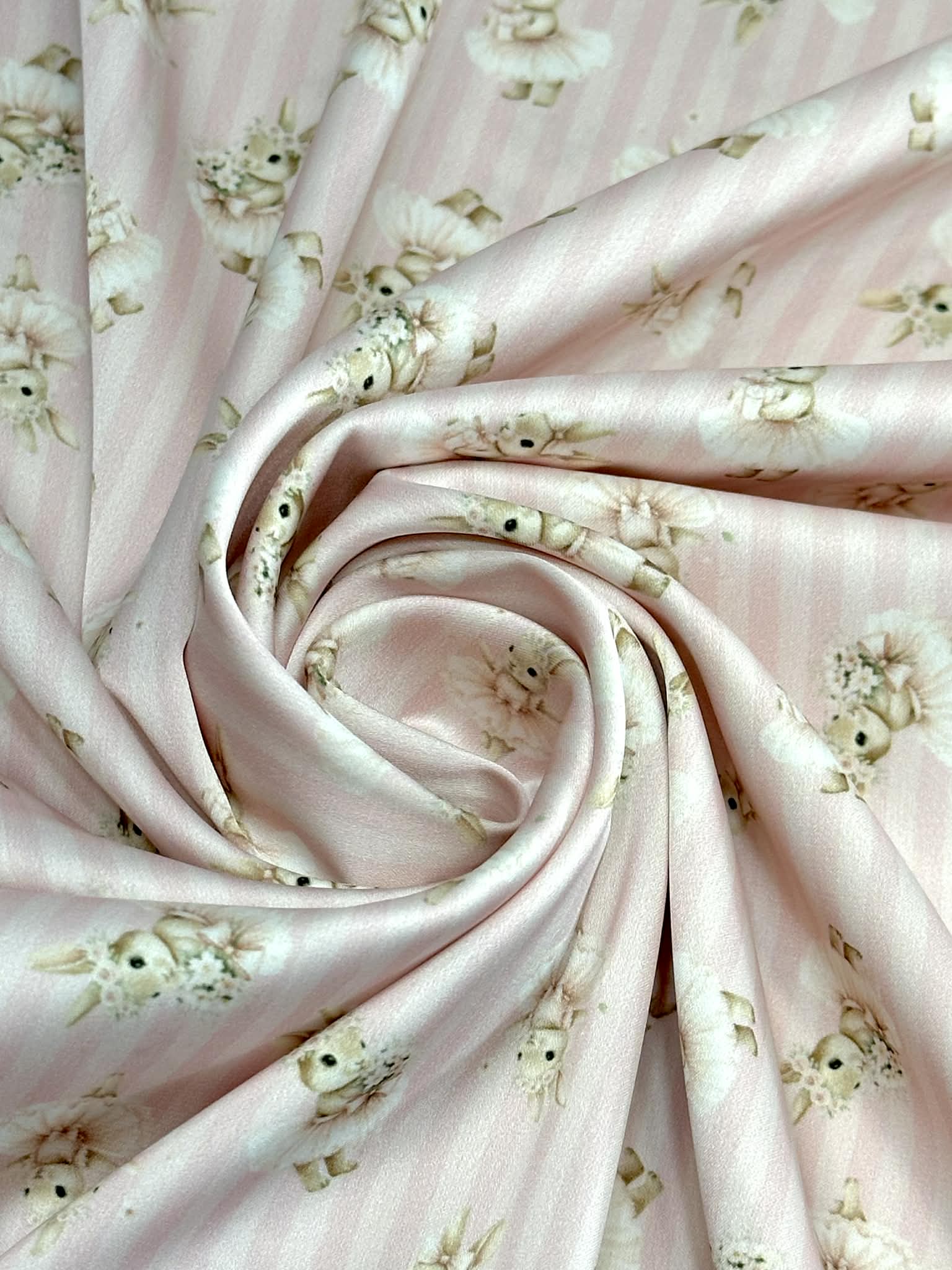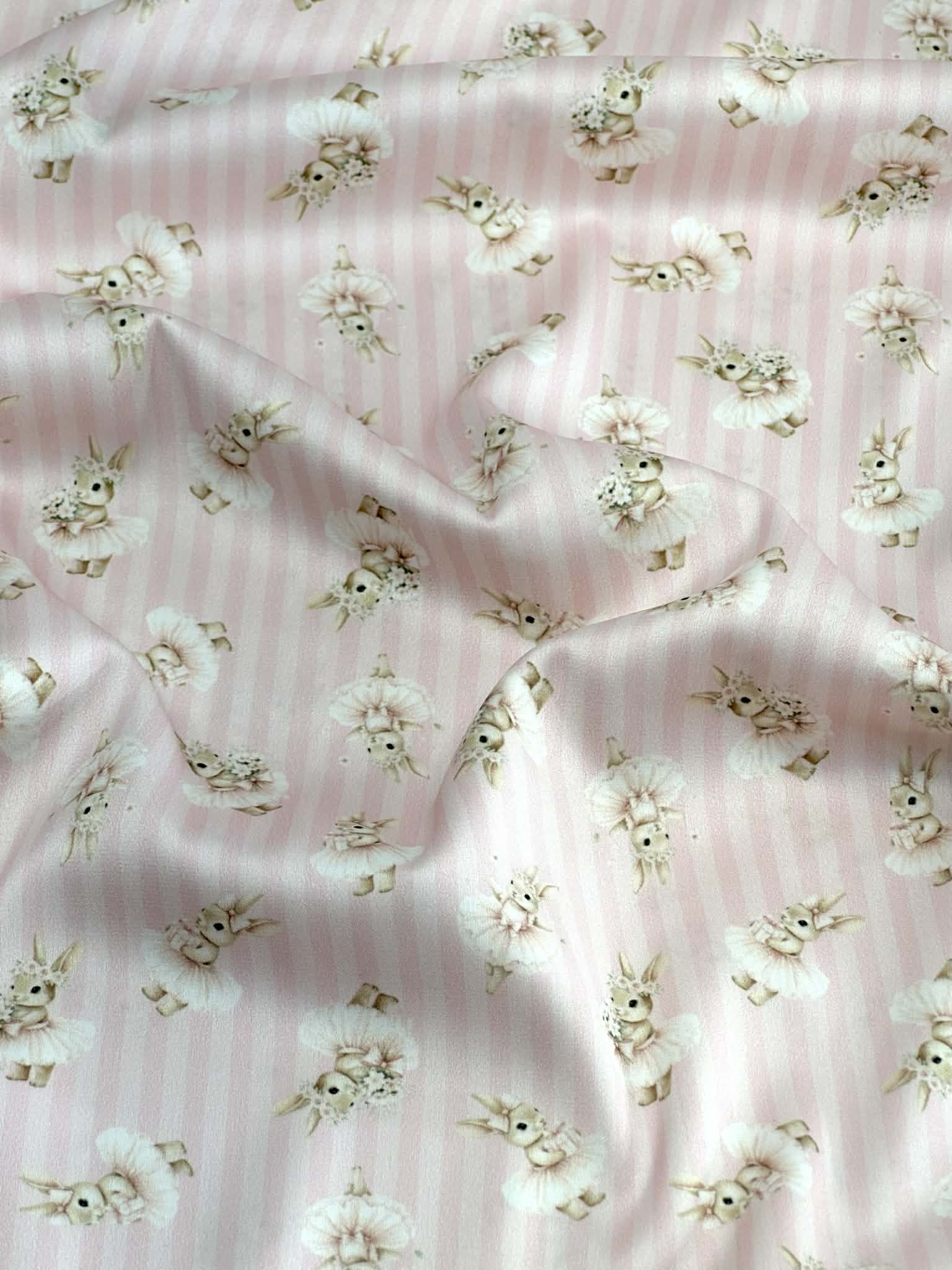 (SATIN) BALLERINA BUNNIES ON PINK STRIPES
