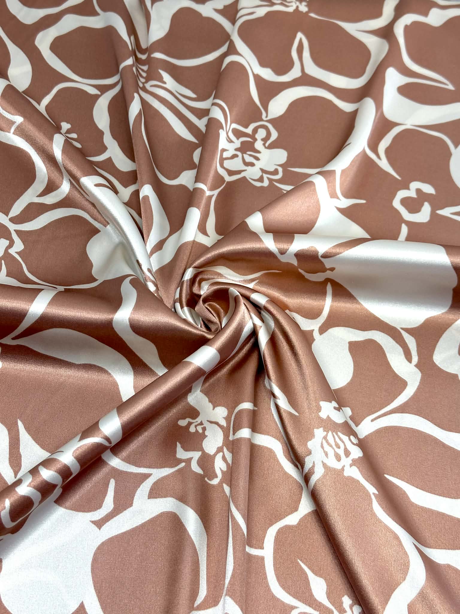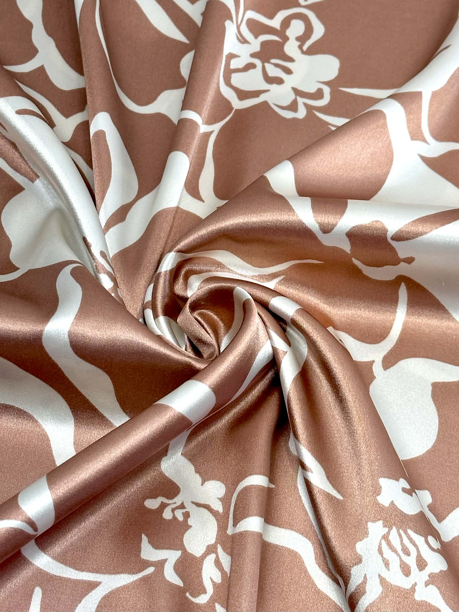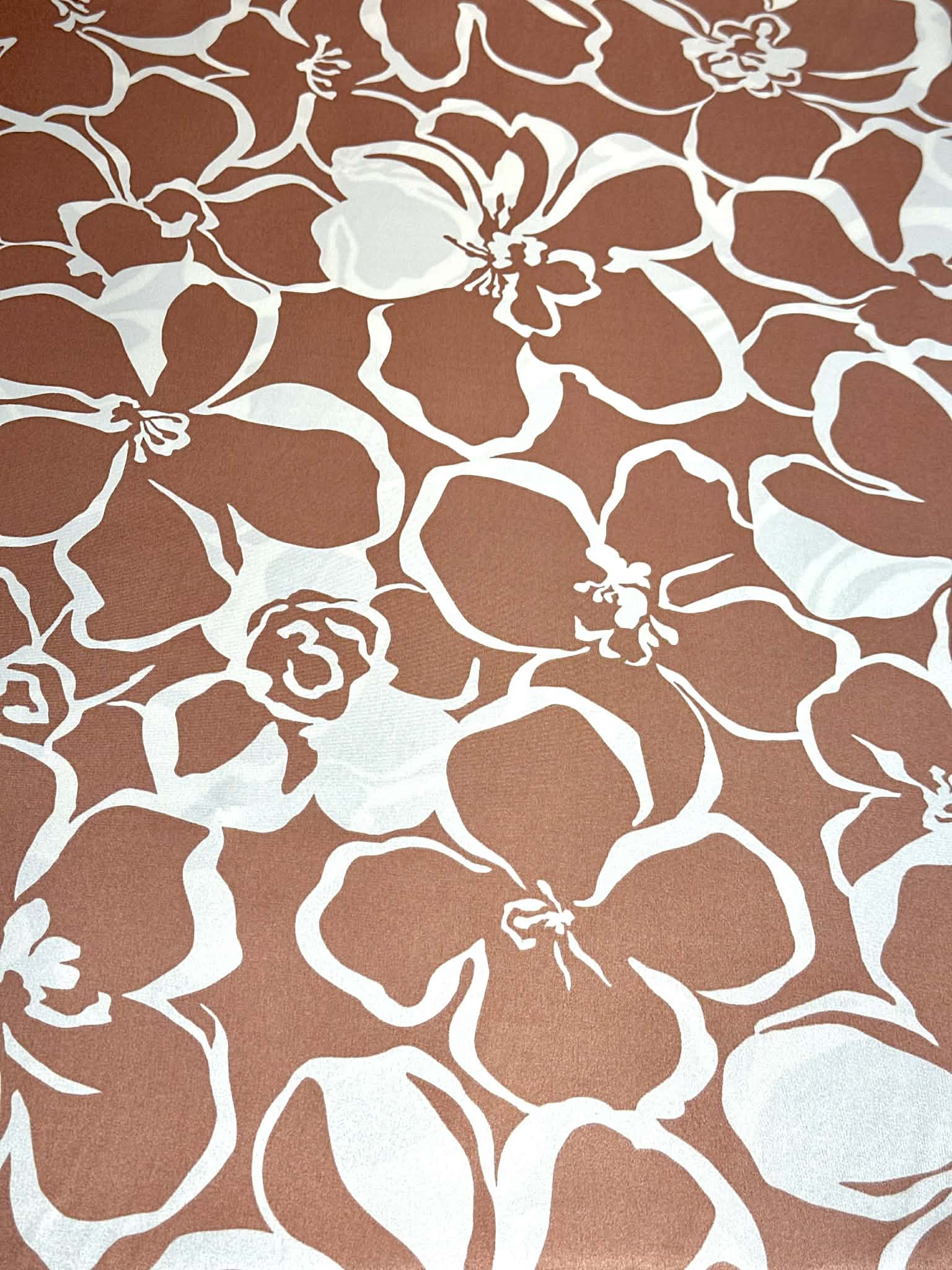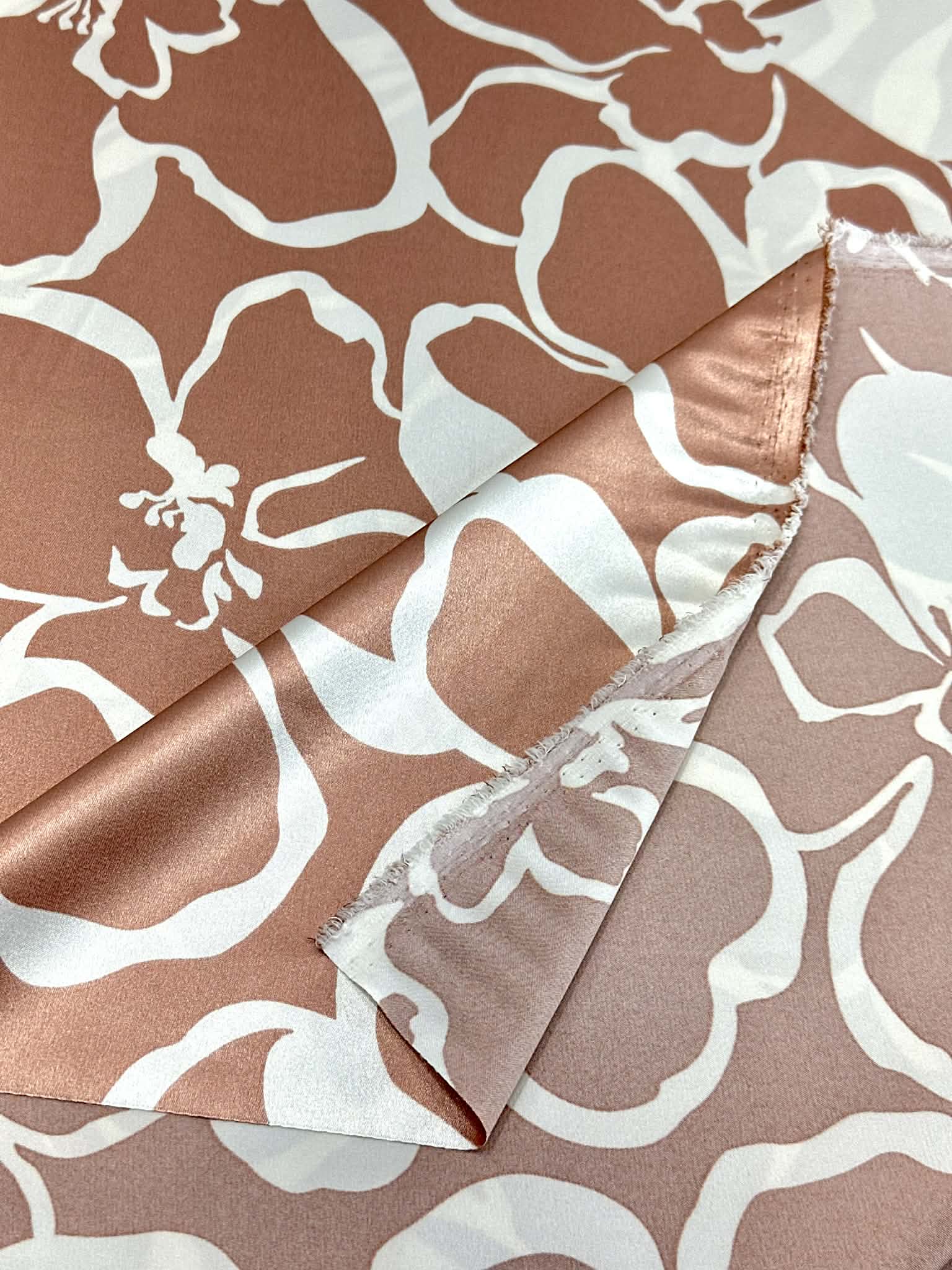 (SATIN) WHITE FLORAL ON MAUVE