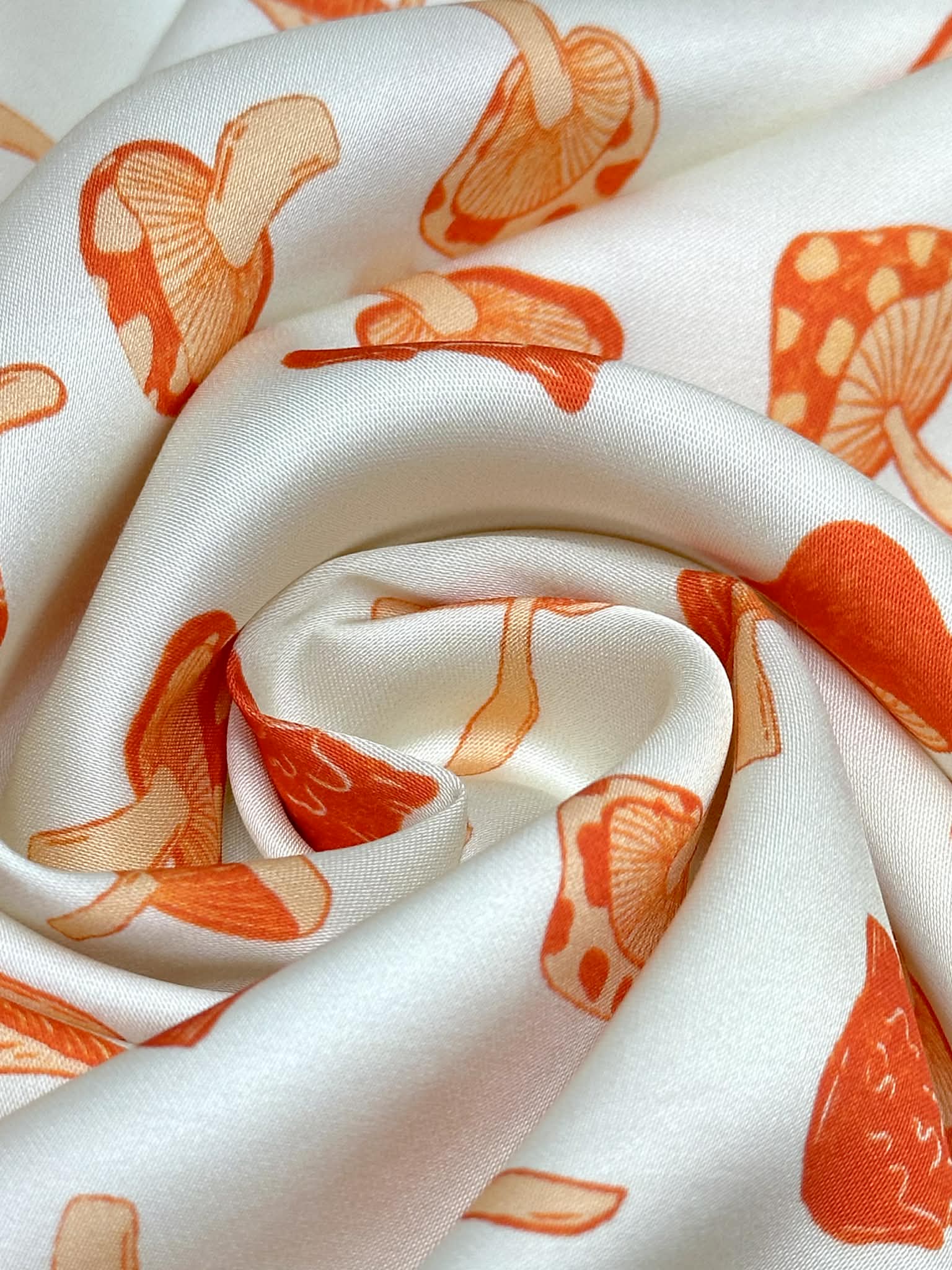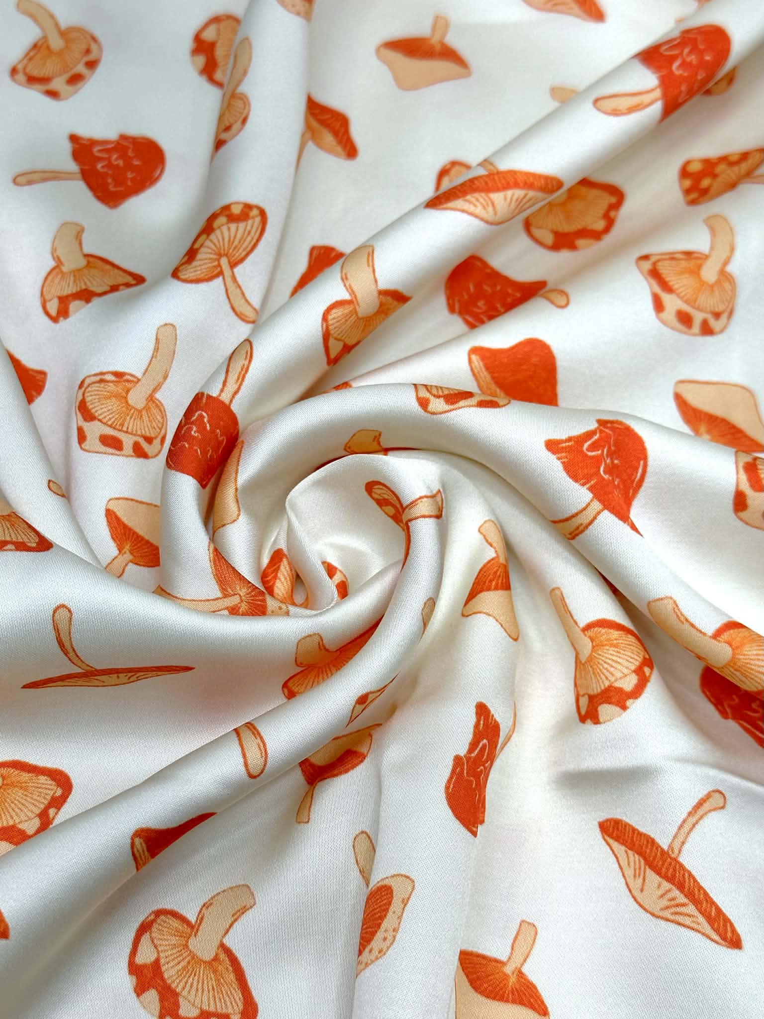 (SATIN) ORANGE MUSHROOMS ON CREAM
