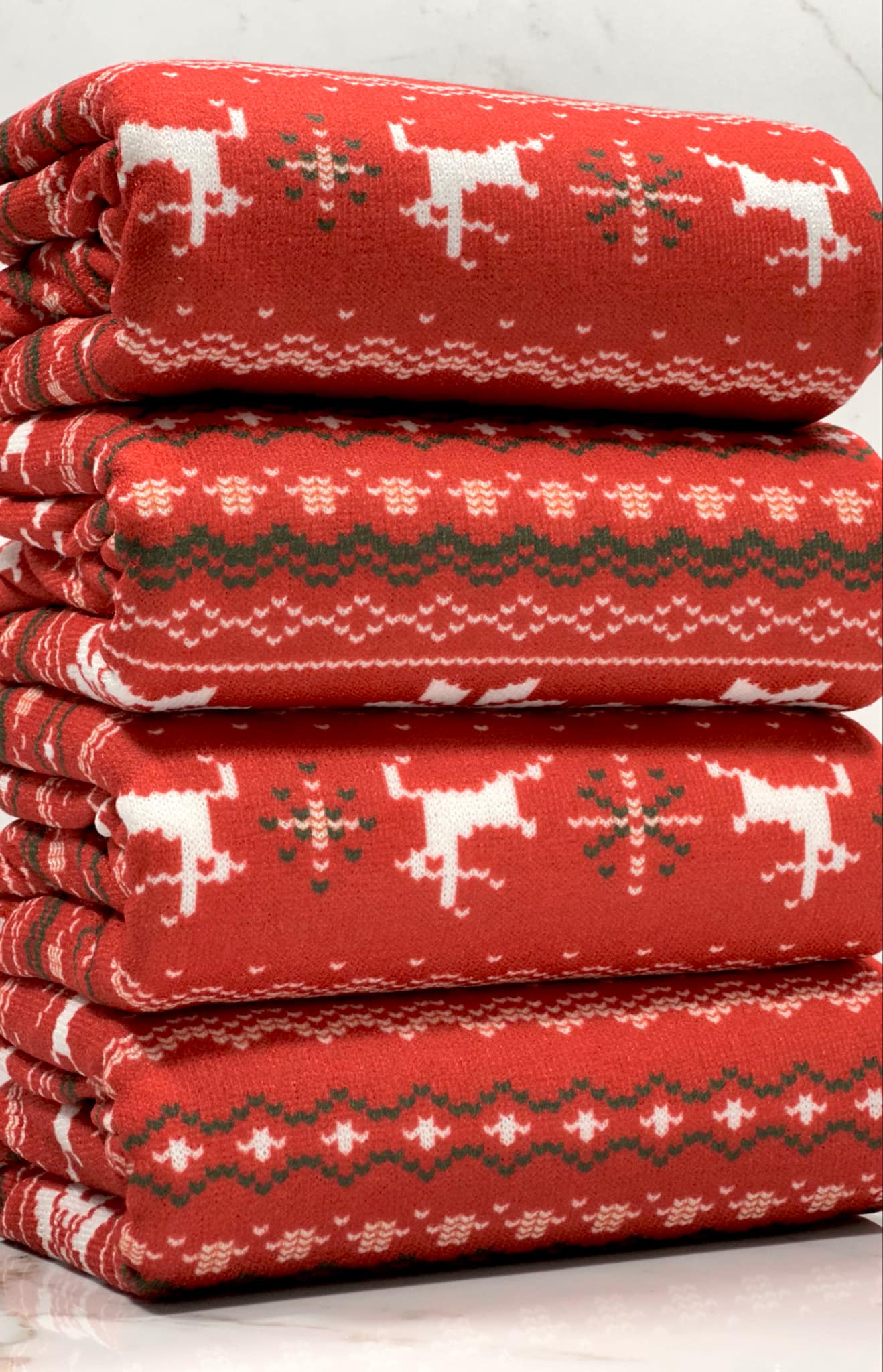 (BRUSHED SWEATER KNIT) BLACK REINDEERS ON RED